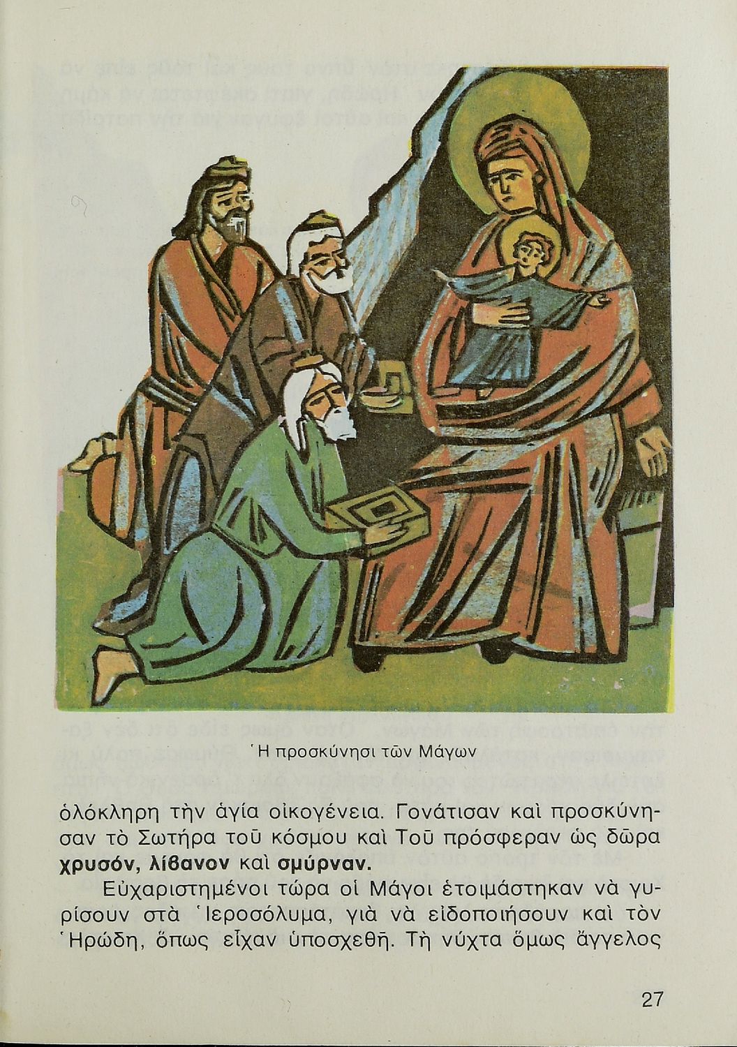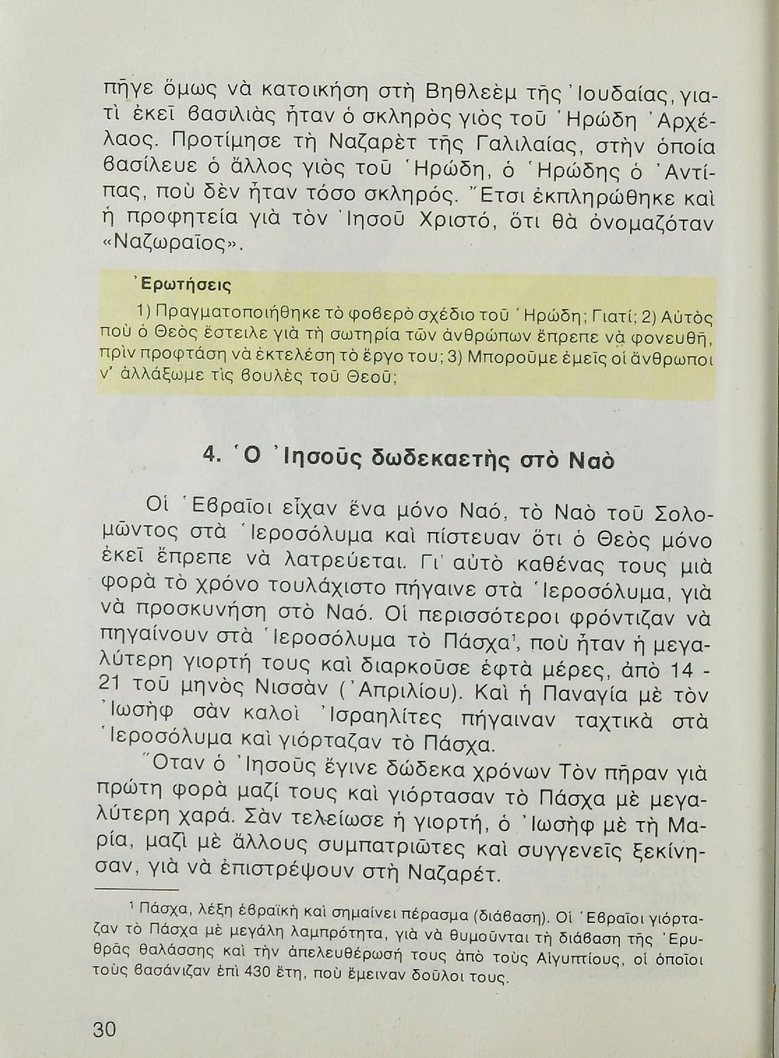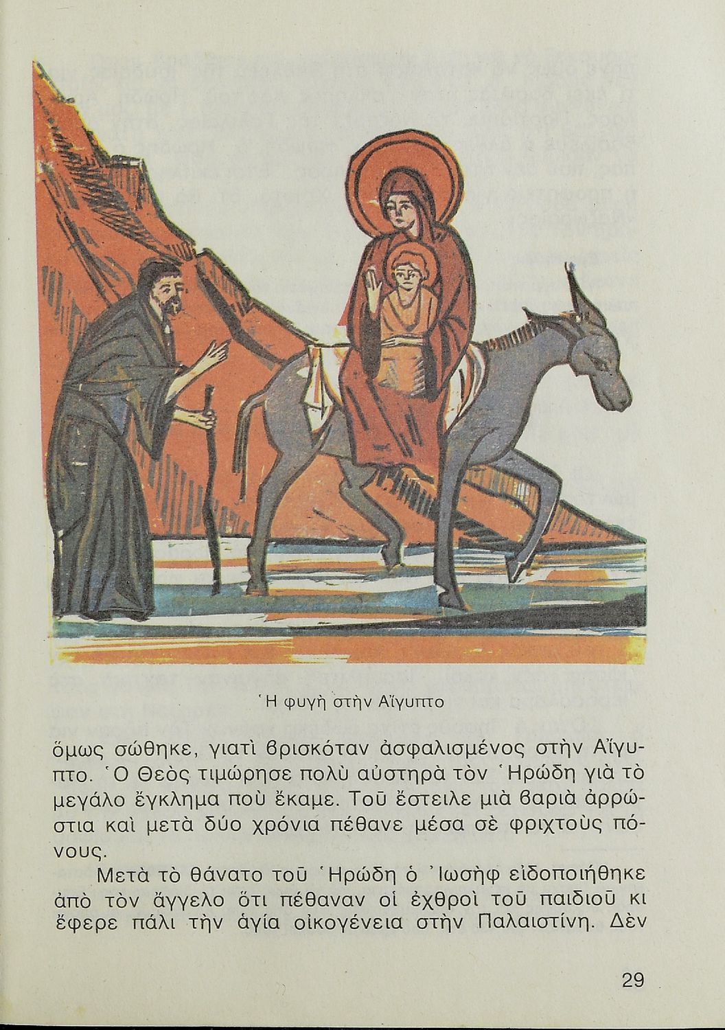 Σχολικό εγχειρίδιο Θρησκευτικών Δ΄ Δημοτικού που αποτελεί μια εξιστόρηση της Καινής Διαθήκης από τη γέννηση της Θεοτόκου μέχρι την ανάληψη του Χριστού. Περιέχει προσευχές και στοιχεία γεωγραφίας της Παλαιστίνης.