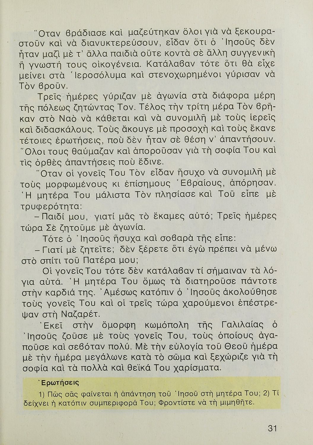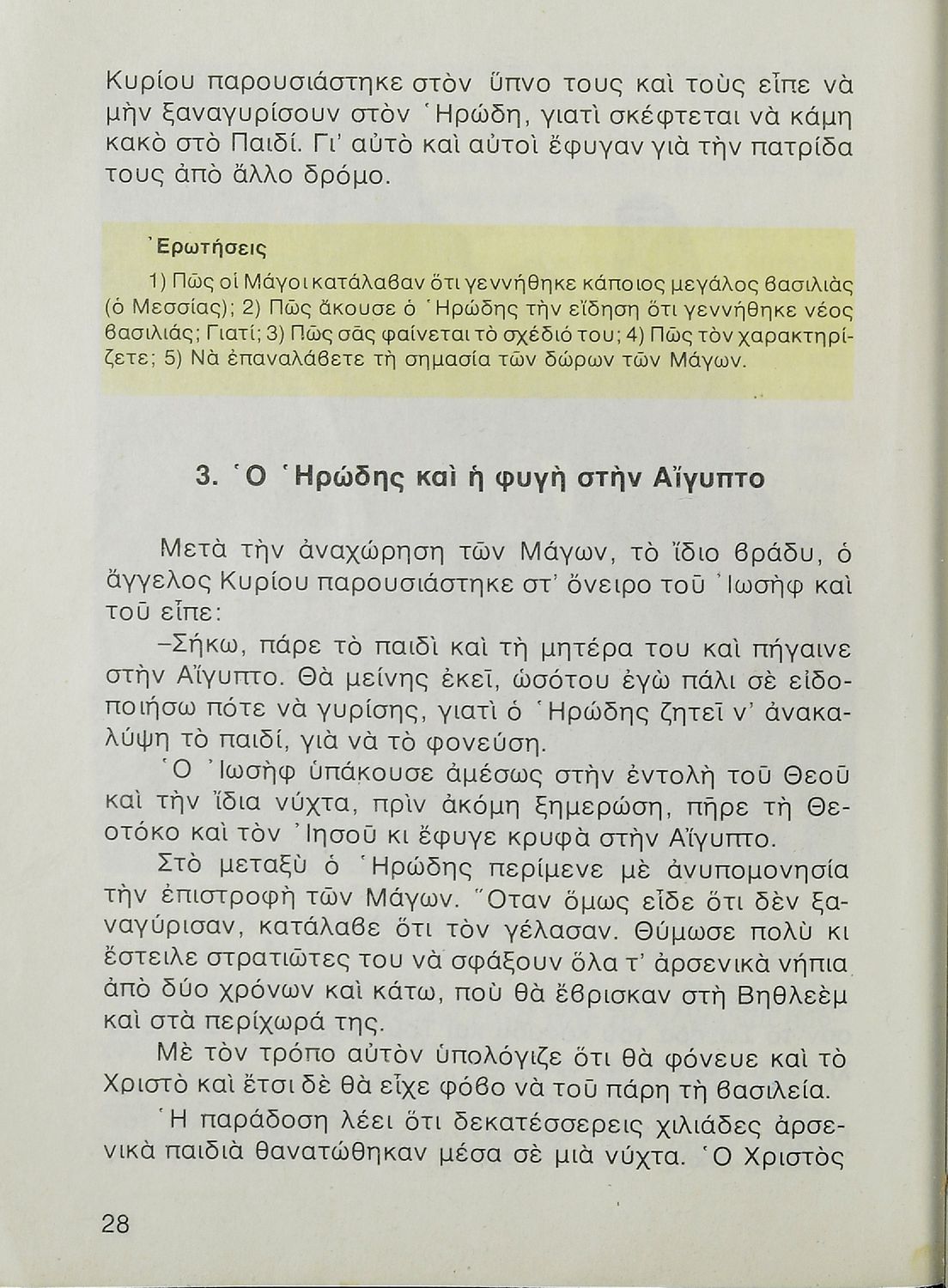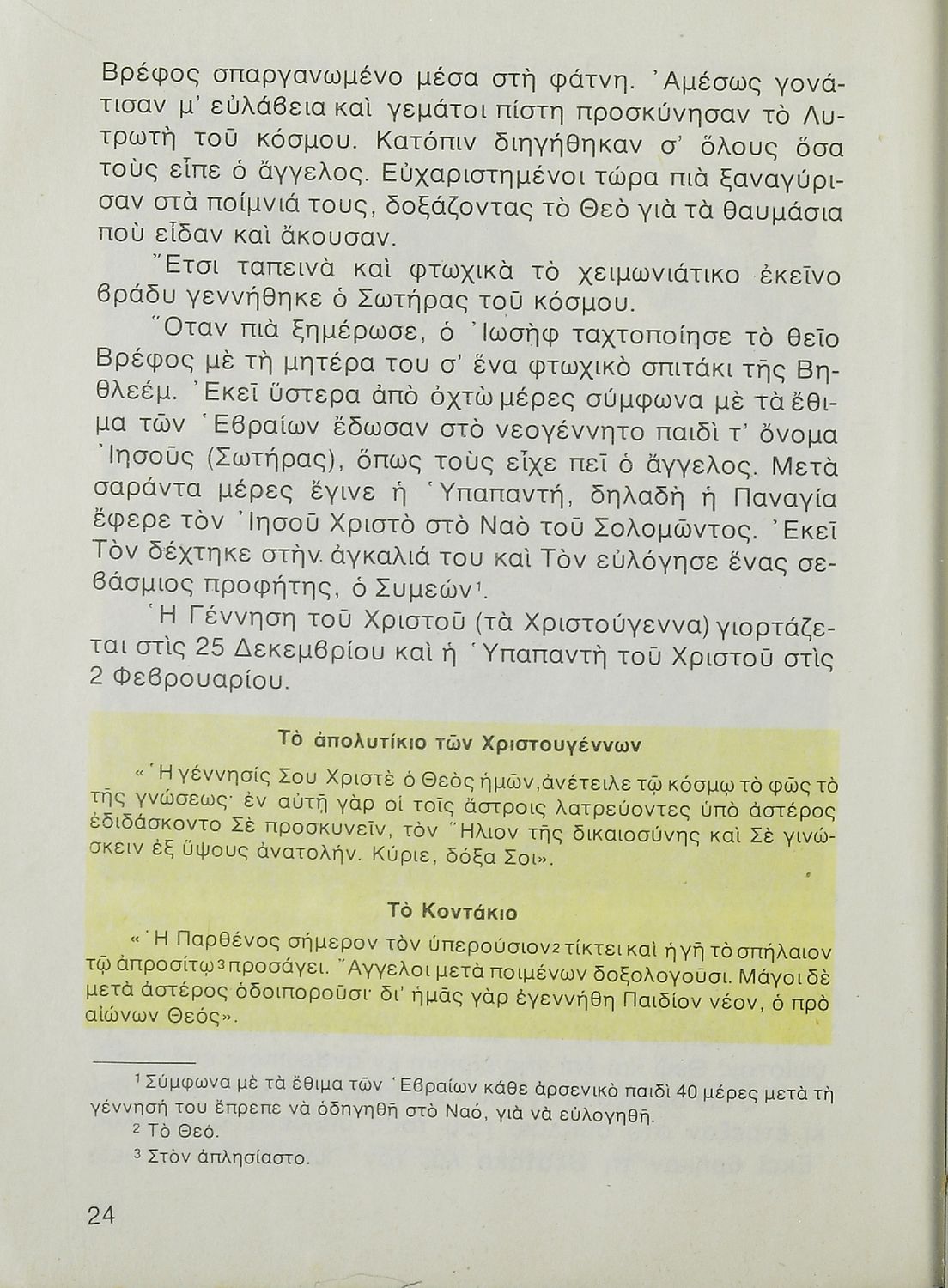 Σχολικό εγχειρίδιο Θρησκευτικών Δ΄ Δημοτικού που αποτελεί μια εξιστόρηση της Καινής Διαθήκης από τη γέννηση της Θεοτόκου μέχρι την ανάληψη του Χριστού. Περιέχει προσευχές και στοιχεία γεωγραφίας της Παλαιστίνης.