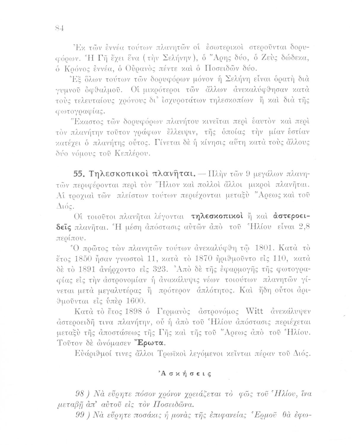 Σχολικό εγχειρίδιο Κοσμογραφίας που εστιάζει στην κίνηση των πλανητών και στον τρόπο υπολογισμού της τροχιάς τους.