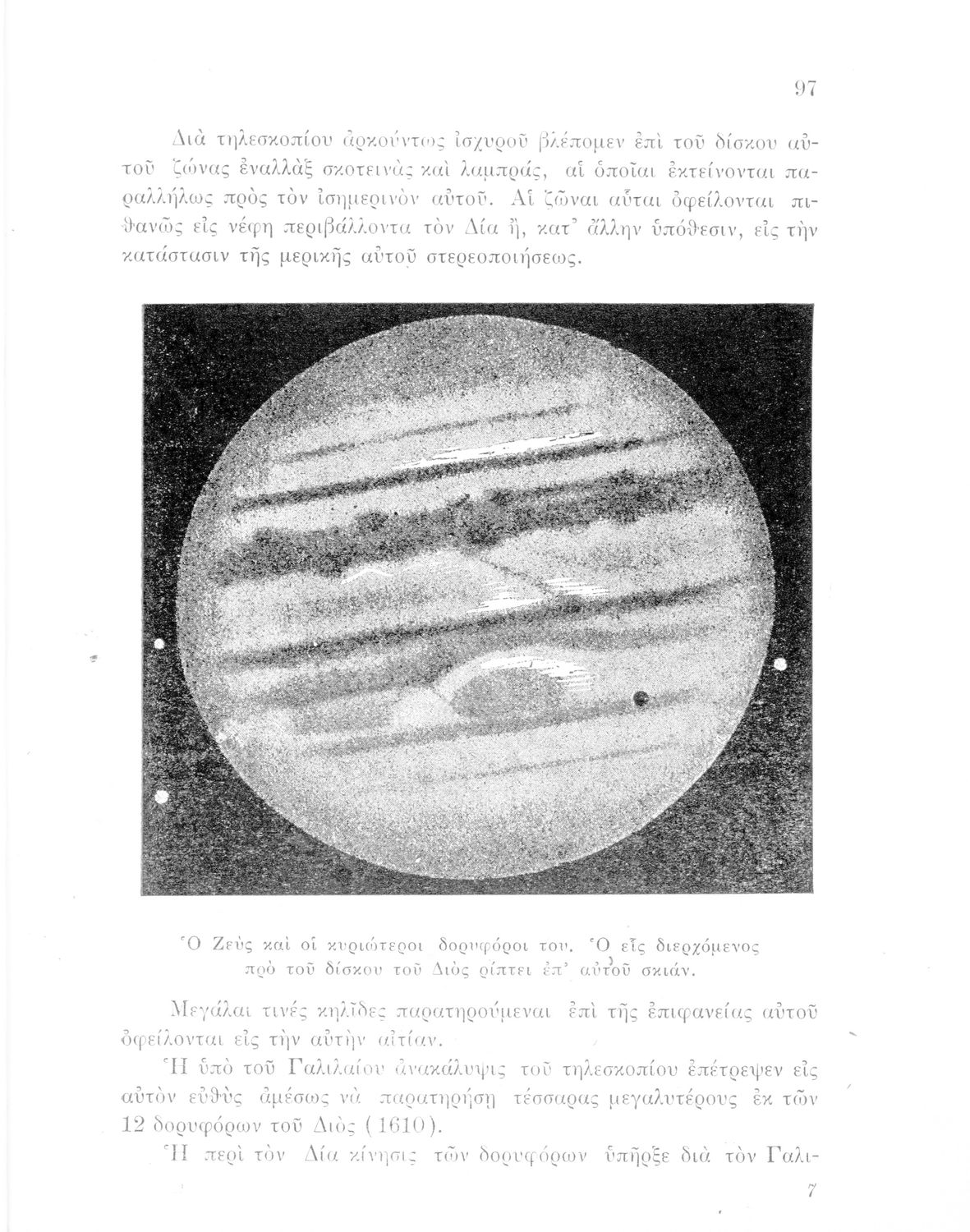 Σχολικό εγχειρίδιο Κοσμογραφίας που εστιάζει στην κίνηση των πλανητών και στον τρόπο υπολογισμού της τροχιάς τους. Φέρει το σύμβολο της δικτατορίας.