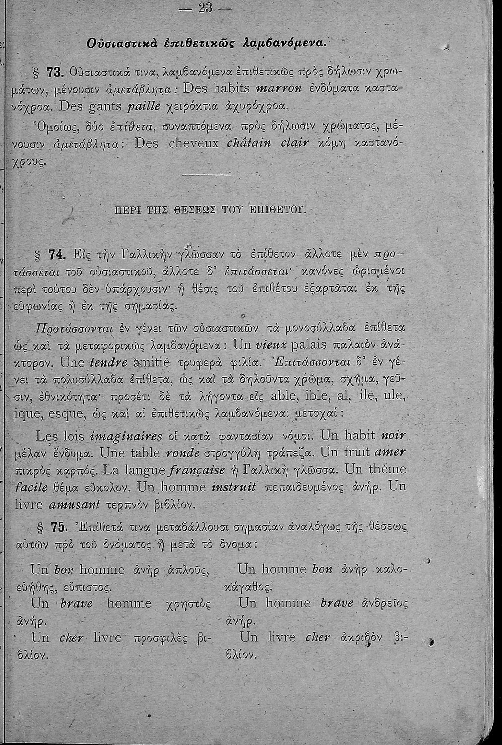 Γραμματική της γαλλικής γλώσσης δια τας τέσσαρας τάξεις των Τετραταξίων Γυμνασίων, τας αντιστοίχους τάξεις των λοιπών σχολείων της μ. εκπαιδεύσεως, την Γ΄ τάξιν των Αστικών Σχολείων των θηλέων και δια τα διδασκαλεία της δημοτικής εκπαιδεύσεως