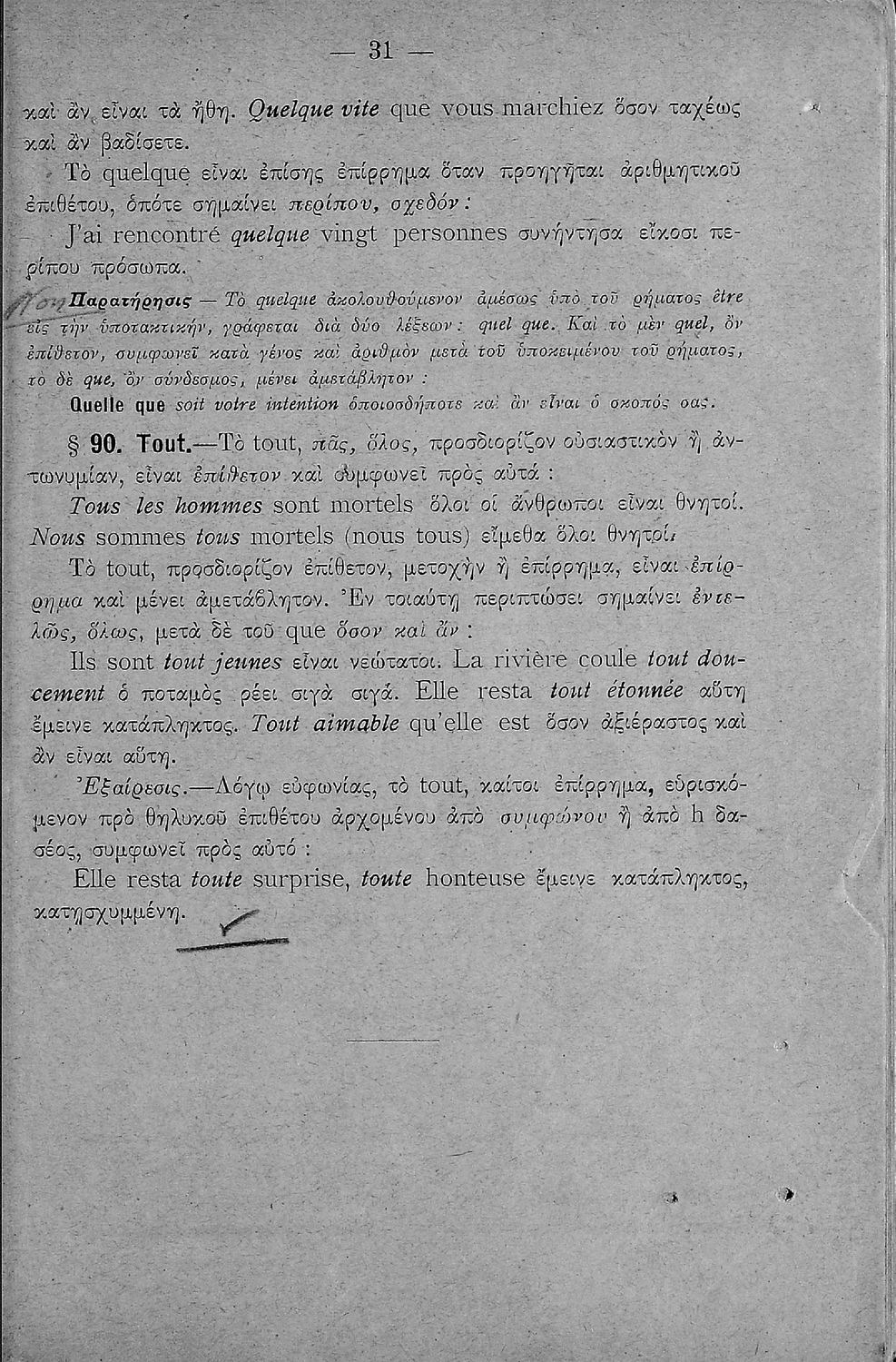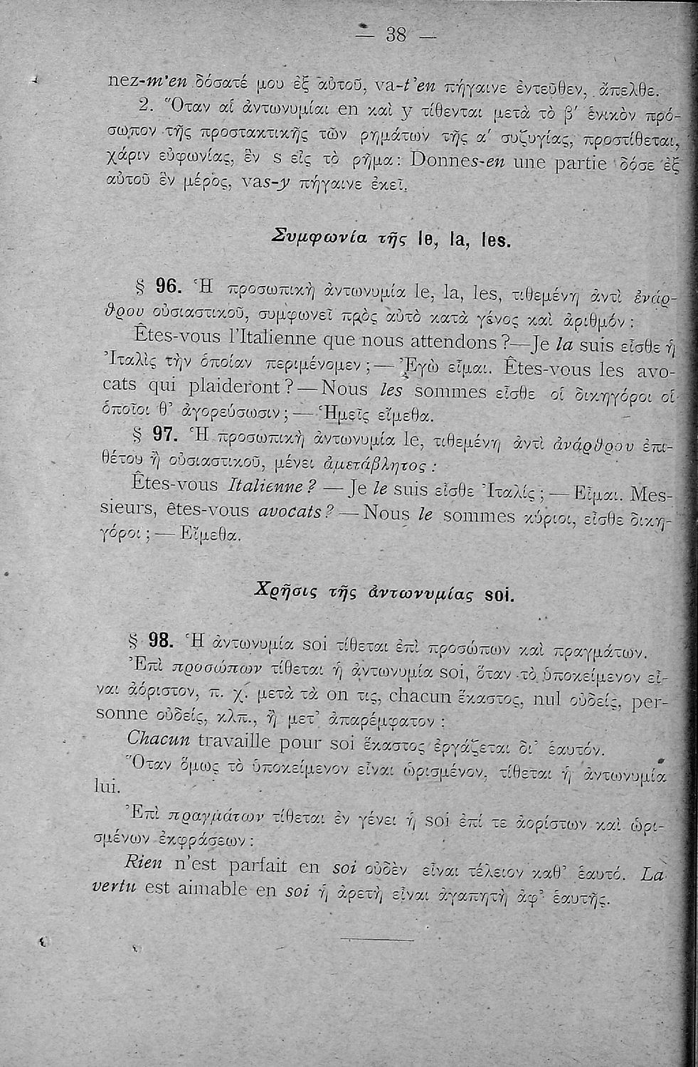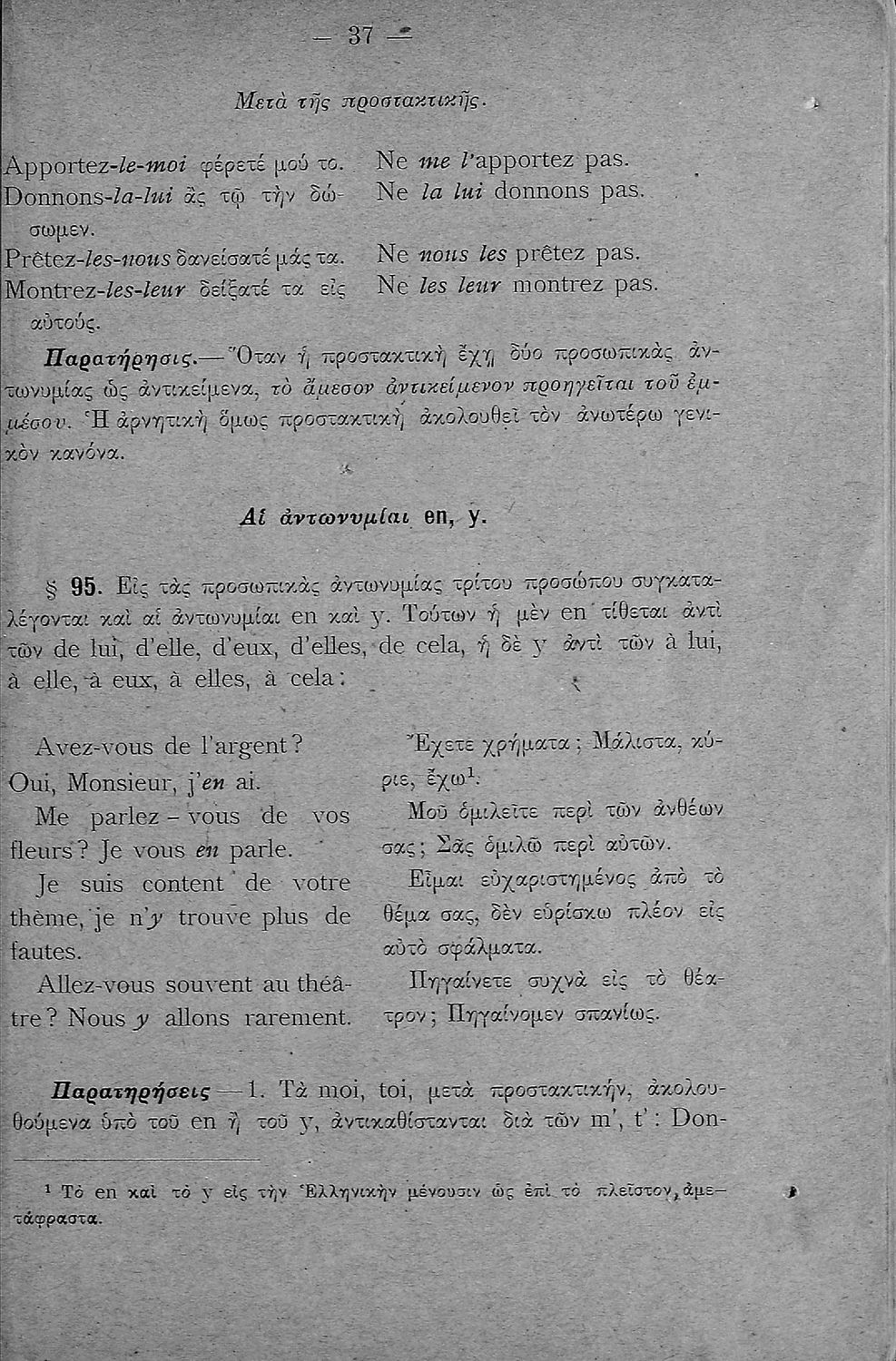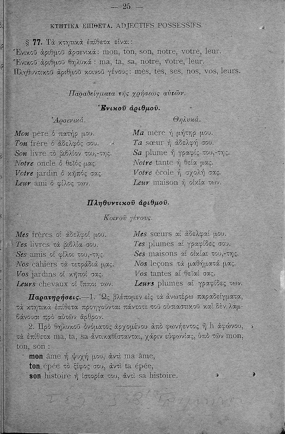 Γραμματική της Γαλλικής γλώσσας για τα Τετρατάξια Γυμνάσια, τη Γ΄ τάξη των Αστικών Σχολείων των Θηλέων και τα Διδασκαλεία της Δημοτικής Εκπαίδευσης που περιλαμβάνει θεωρία, ασκήσεις και λεξιλόγιο.