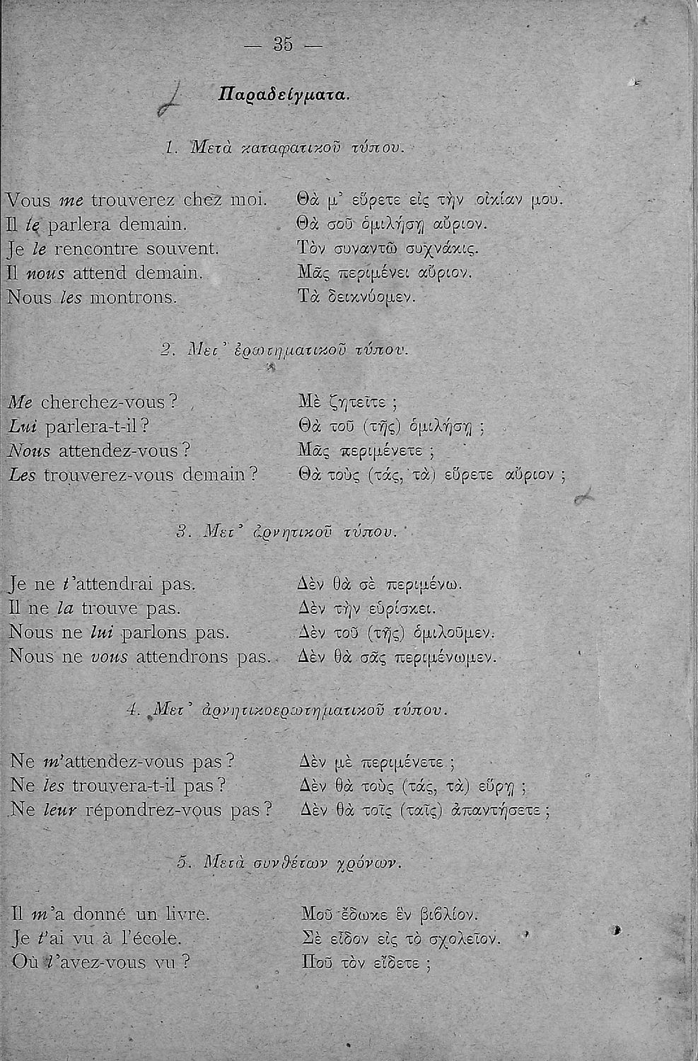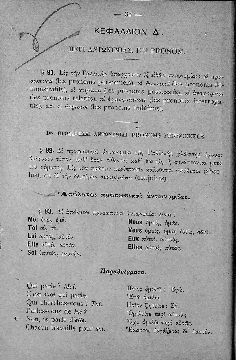 Τίτλος: Γραμματική της γαλλικής γλώσσης δια τας τέσσαρας τάξεις των Τετραταξίων Γυμνασίων, τας αντιστοίχους τάξεις των λοιπών σχολείων της μ. εκπαιδεύσεως, την Γ΄ τάξιν των Αστικών Σχολείων των θηλέων και δια τα διδασκαλεία της δημοτικής εκπαιδεύσεως