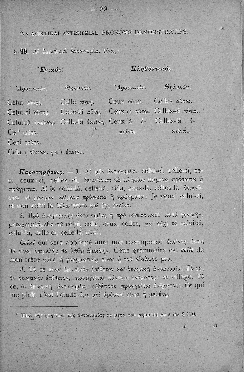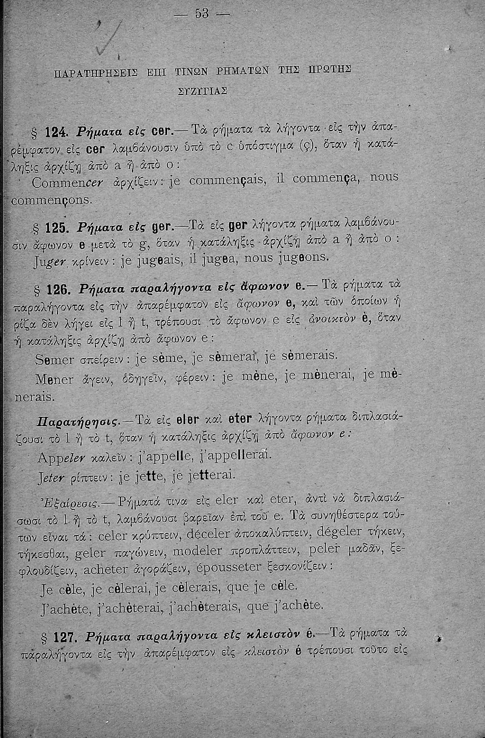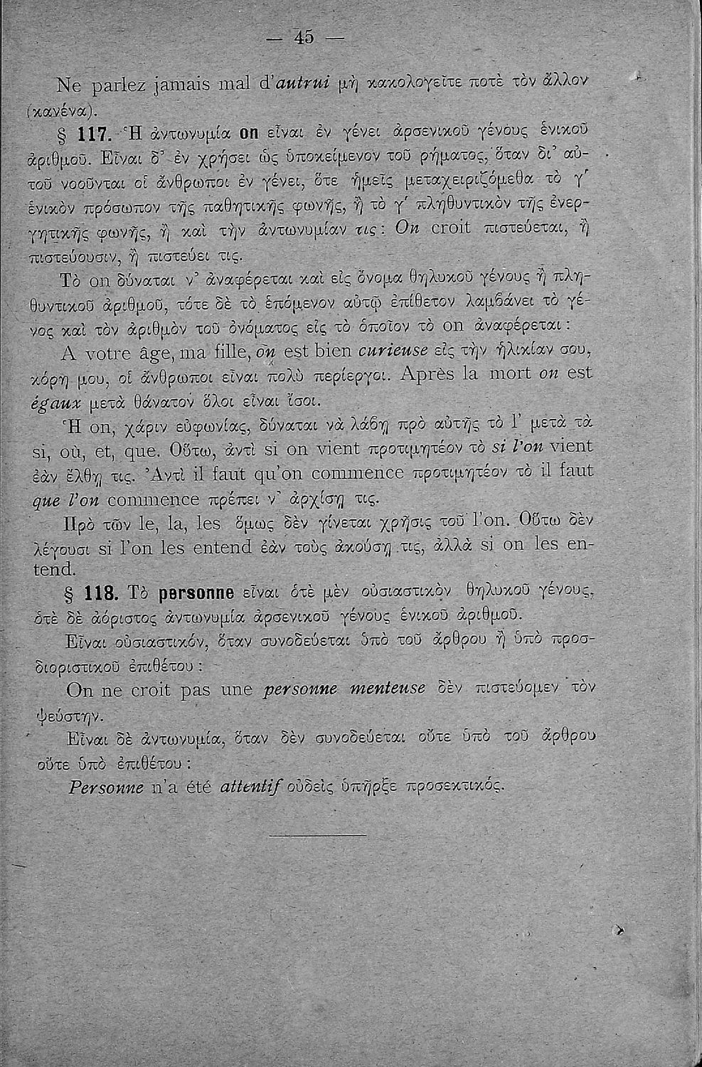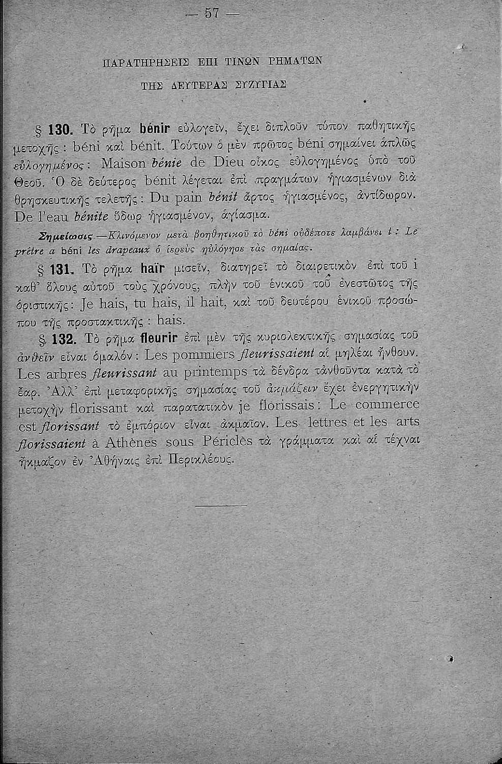 Γραμματική της Γαλλικής γλώσσας για τα Τετρατάξια Γυμνάσια, τη Γ΄ τάξη των Αστικών Σχολείων των Θηλέων και τα Διδασκαλεία της Δημοτικής Εκπαίδευσης που περιλαμβάνει θεωρία, ασκήσεις και λεξιλόγιο.