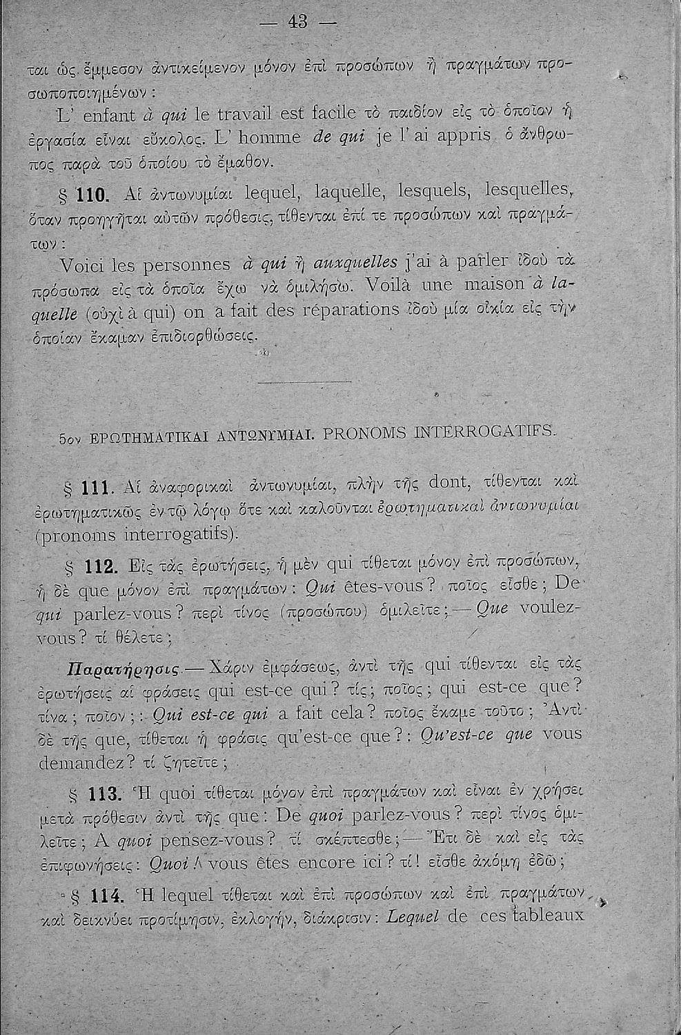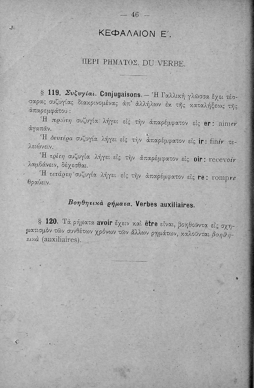 Τίτλος: Γραμματική της γαλλικής γλώσσης δια τας τέσσαρας τάξεις των Τετραταξίων Γυμνασίων, τας αντιστοίχους τάξεις των λοιπών σχολείων της μ. εκπαιδεύσεως, την Γ΄ τάξιν των Αστικών Σχολείων των θηλέων και δια τα διδασκαλεία της δημοτικής εκπαιδεύσεως