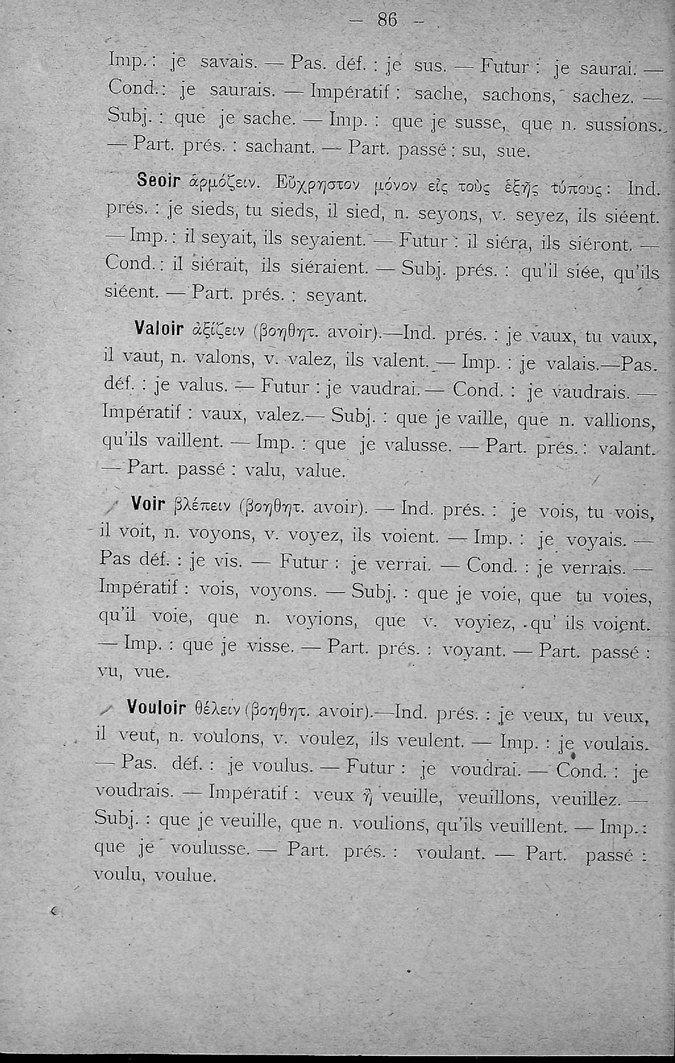 Σχολικό εγχειρίδιο Γαλλικών για τα Γυμνάσια, Αστικά Σχολεία και Διδασκαλεία που περιλαμβάνει τη γραμματική και το συντακτικό της γαλλικής γλώσσας, παραδείγματα και ασκήσεις.