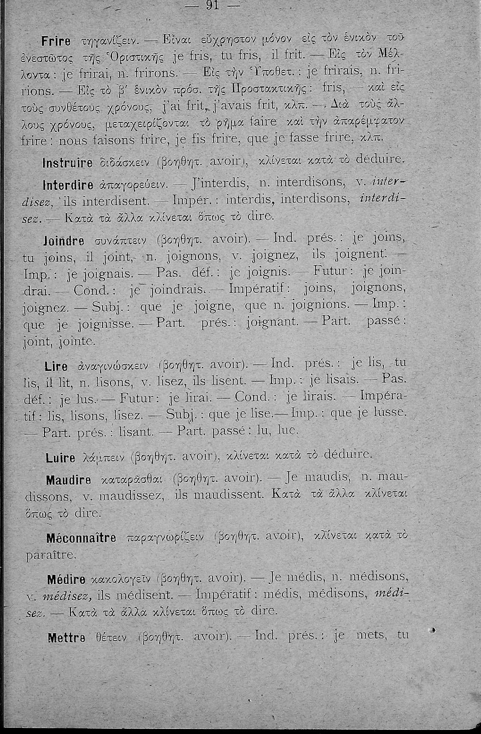 Γραμματική της Γαλλικής γλώσσας για τα Τετρατάξια Γυμνάσια, τη Γ΄ τάξη των Αστικών Σχολείων των Θηλέων και τα Διδασκαλεία της Δημοτικής Εκπαίδευσης που περιλαμβάνει θεωρία, ασκήσεις και λεξιλόγιο.
