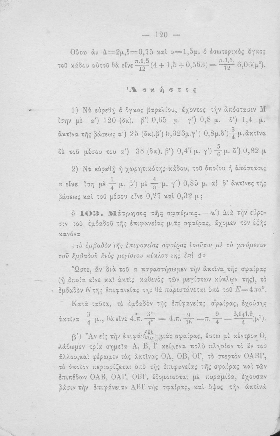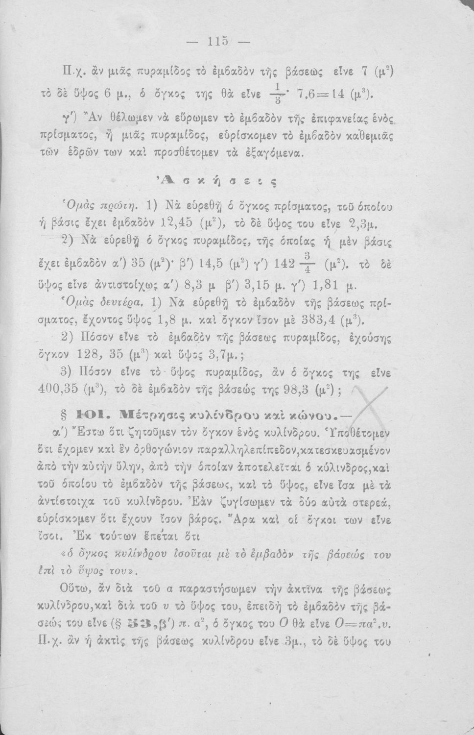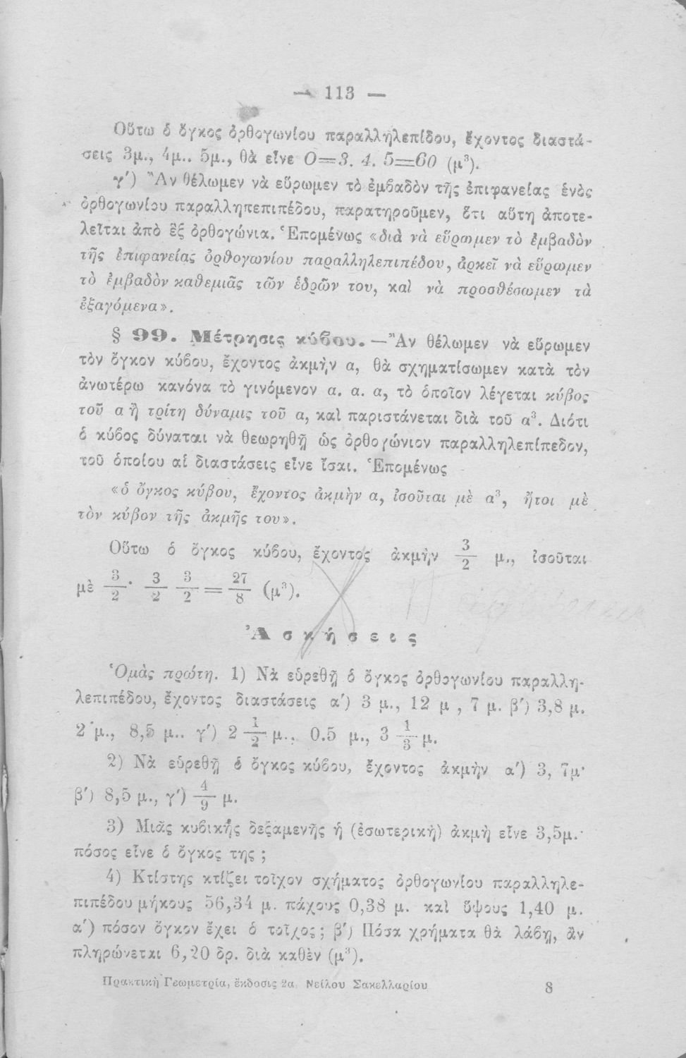 Σχολικό εγχειρίδιο Γεωμετρίας για τα Ελληνικά και Αστικά Σχολεία που περιέχει θεωρία και ασκήσεις και είναι χωρισμένο σε Επιπεδομετρία και Στερεομετρία.
