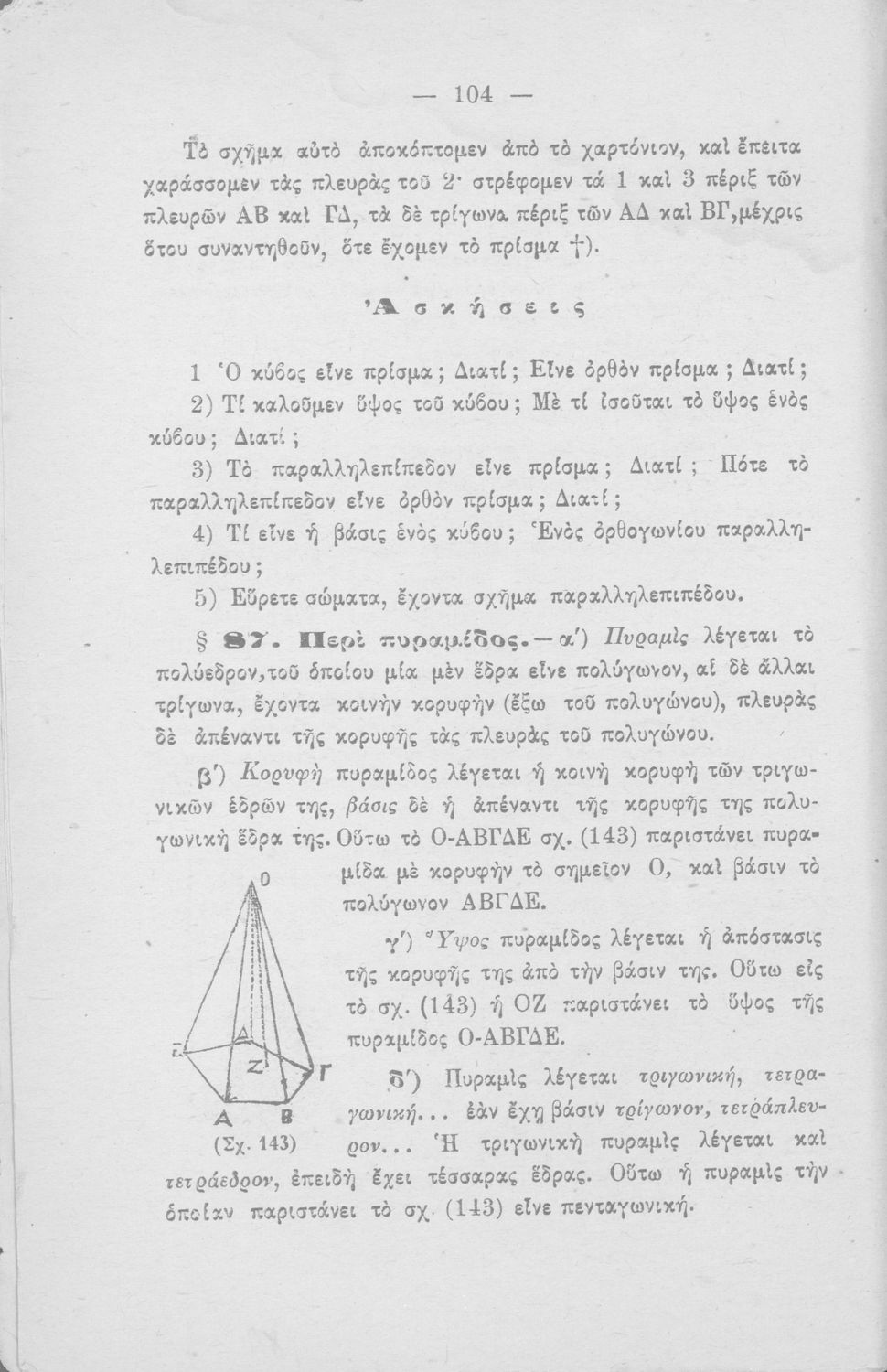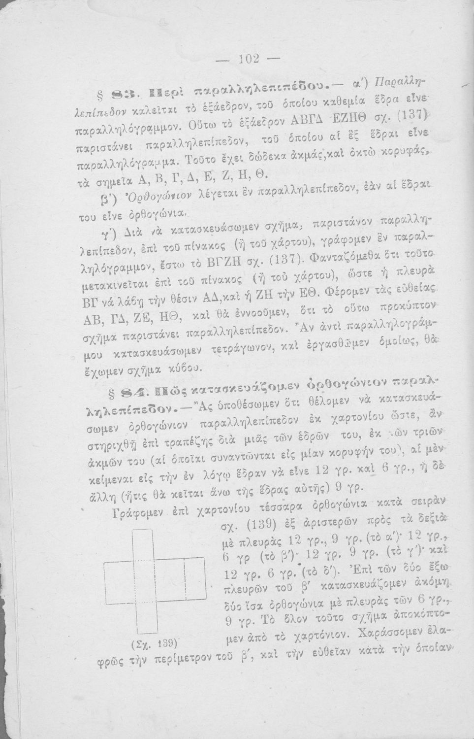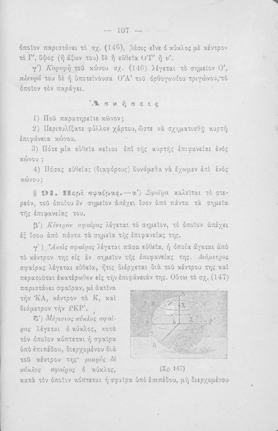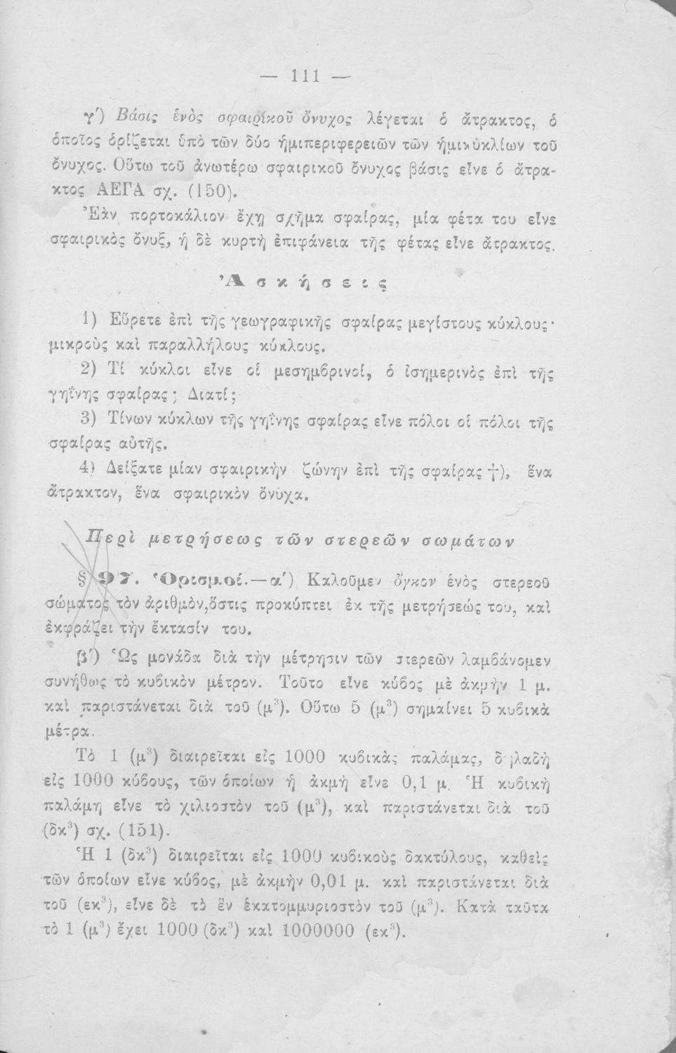 Σχολικό εγχειρίδιο Γεωμετρίας για τα Ελληνικά και Αστικά Σχολεία που περιέχει θεωρία και ασκήσεις και είναι χωρισμένο σε Επιπεδομετρία και Στερεομετρία.