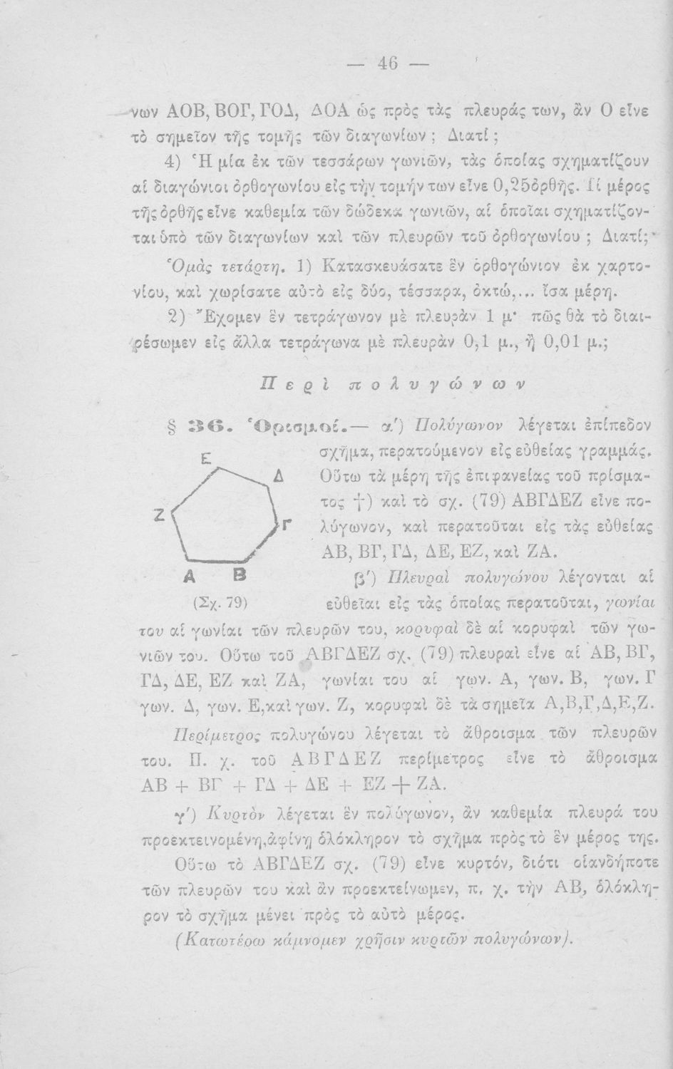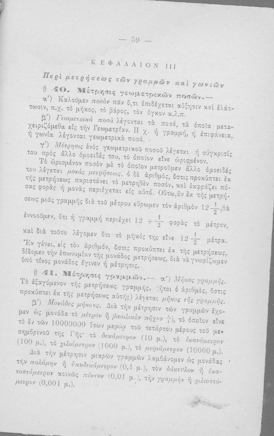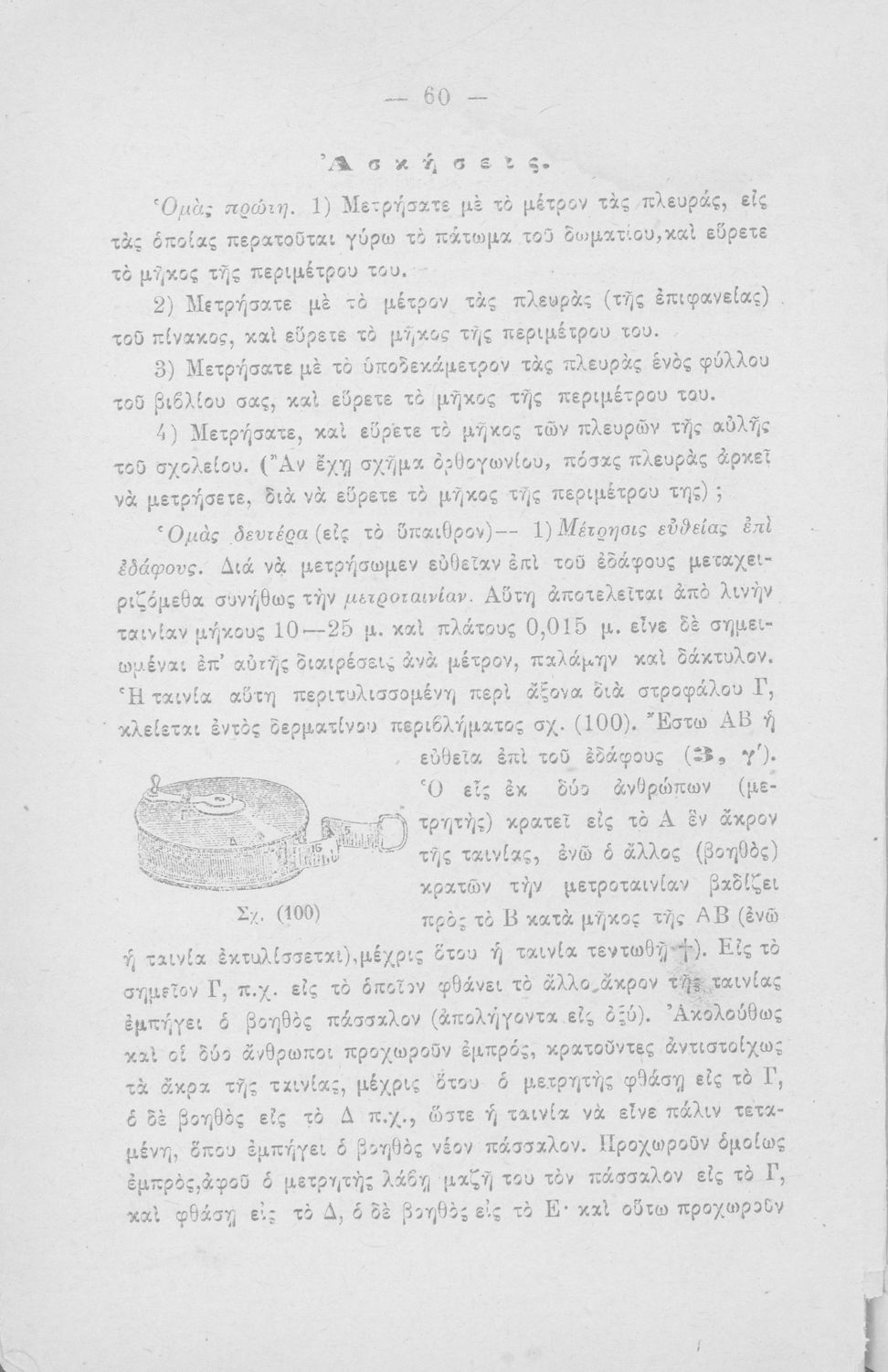 Σχολικό εγχειρίδιο Γεωμετρίας για τα Ελληνικά και Αστικά Σχολεία και τα Παρθεναγωγεία που εστιάζει στα γεωμετρικά σχήματα και σώματα και τη μέτρησή τους με τη χρήση γεωμετρικών οργάνων. Περιέχει πίνακα των ...