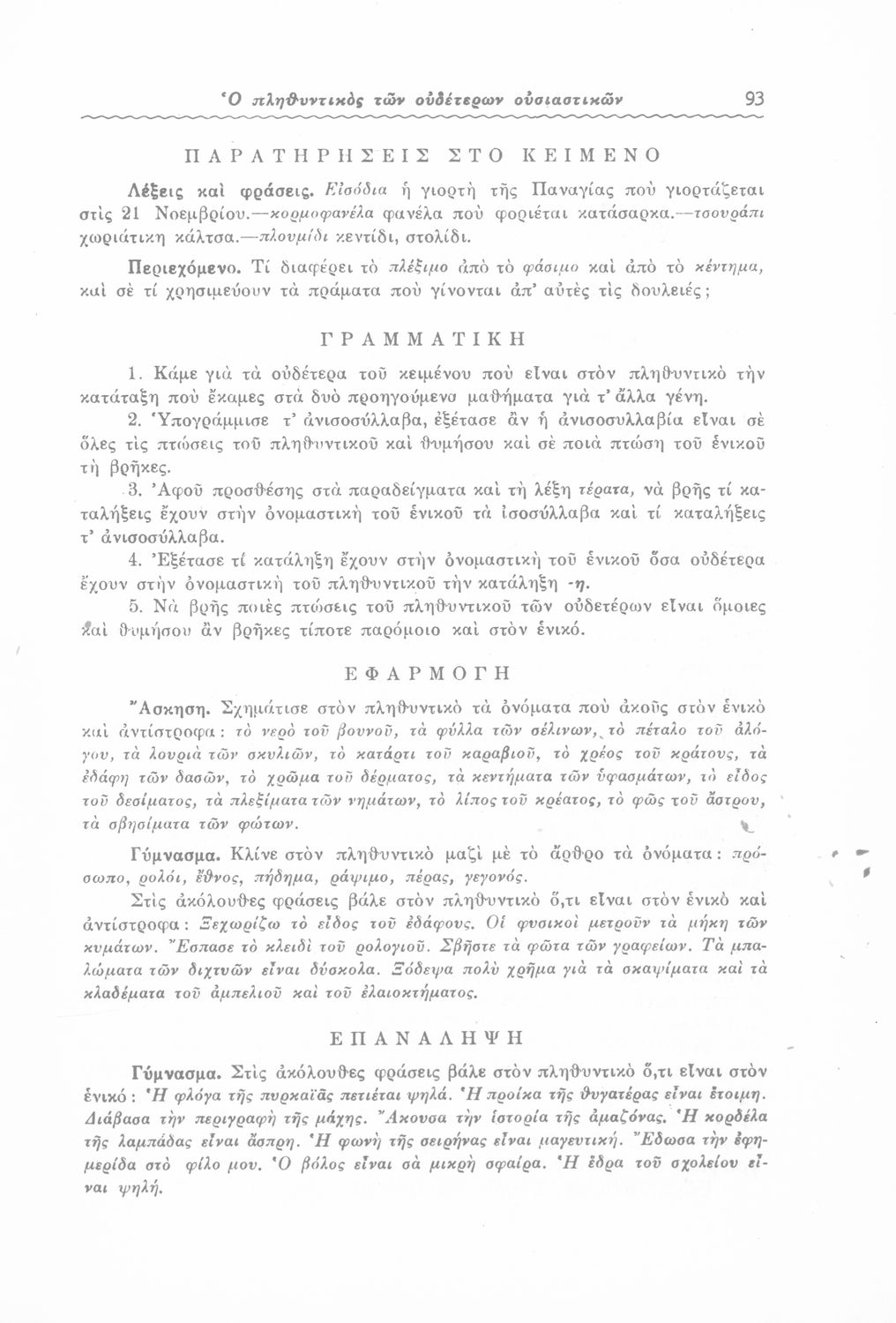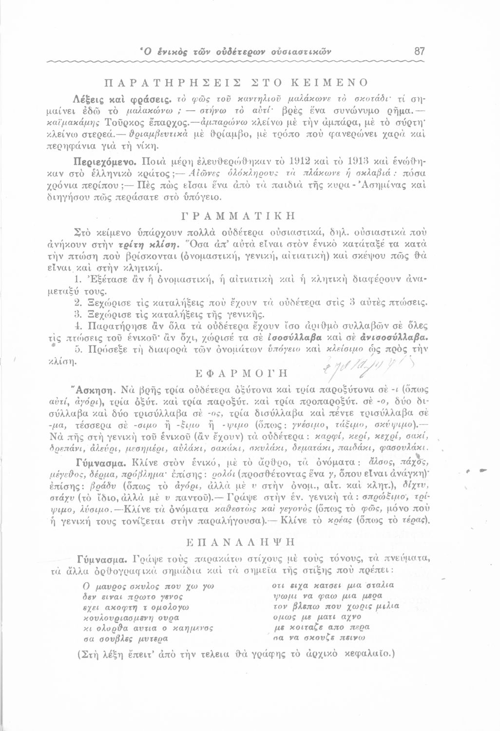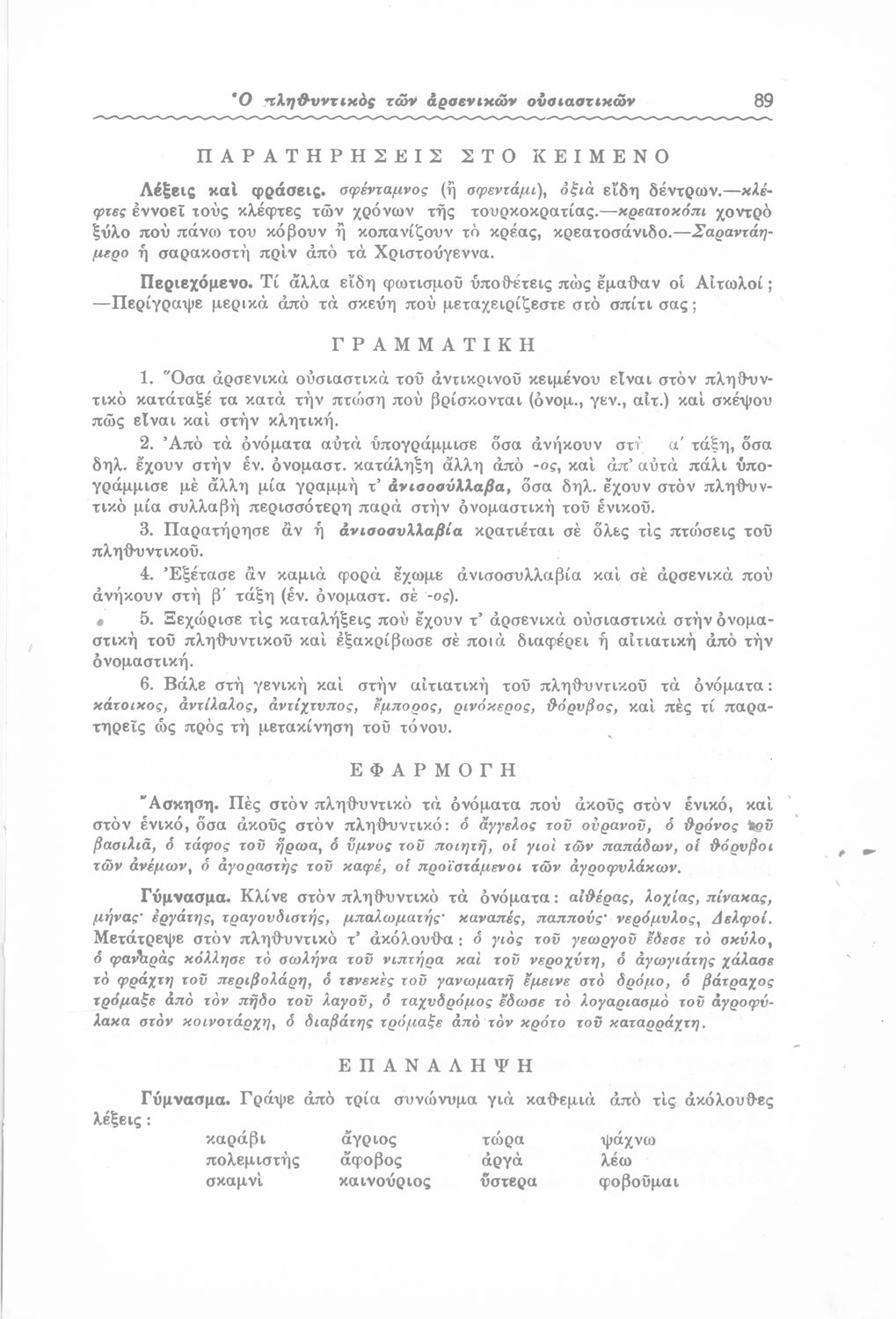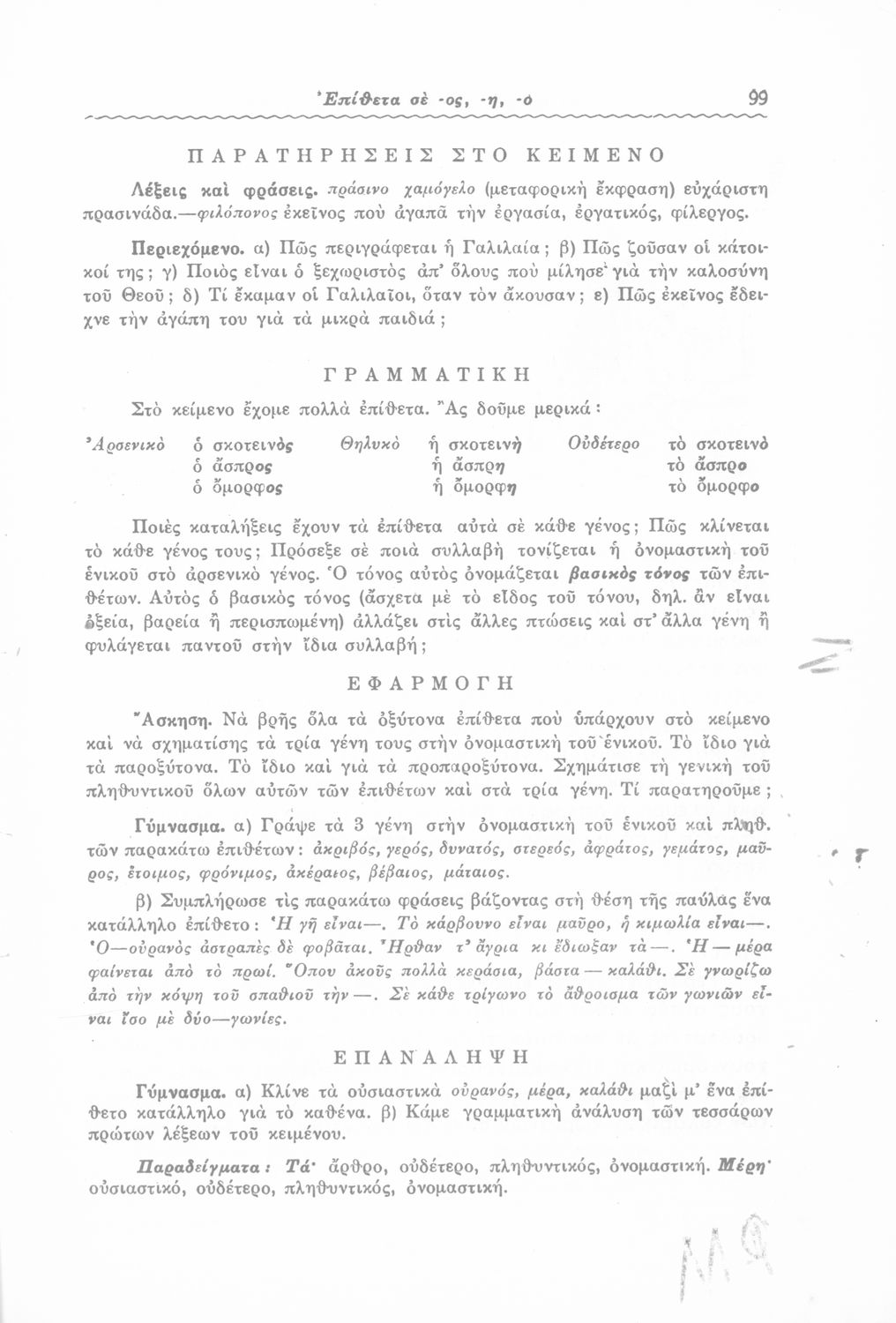 Μαθητικό βοήθημα Γλώσσας και Νέων Ελληνικών για μαθητές των Ε΄ και ΣΤ΄ Δημοτικού και Γυμνασίου που περιλαμβάνει πεζά και ποιήματα, προφορικές και γραπτές ασκήσεις, και βοηθητικούς γραμματικούς πίνακες για τη διδασκαλία των γραμματικών φαινομένων.
