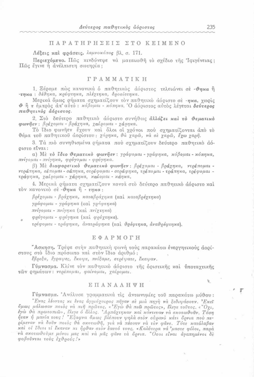 Μαθητικό βοήθημα Γλώσσας και Νέων Ελληνικών για μαθητές των Ε΄ και ΣΤ΄ Δημοτικού και Γυμνασίου που περιλαμβάνει πεζά και ποιήματα, προφορικές και γραπτές ασκήσεις, και βοηθητικούς γραμματικούς πίνακες για τη διδασκαλία των γραμματικών φαινομένων.
