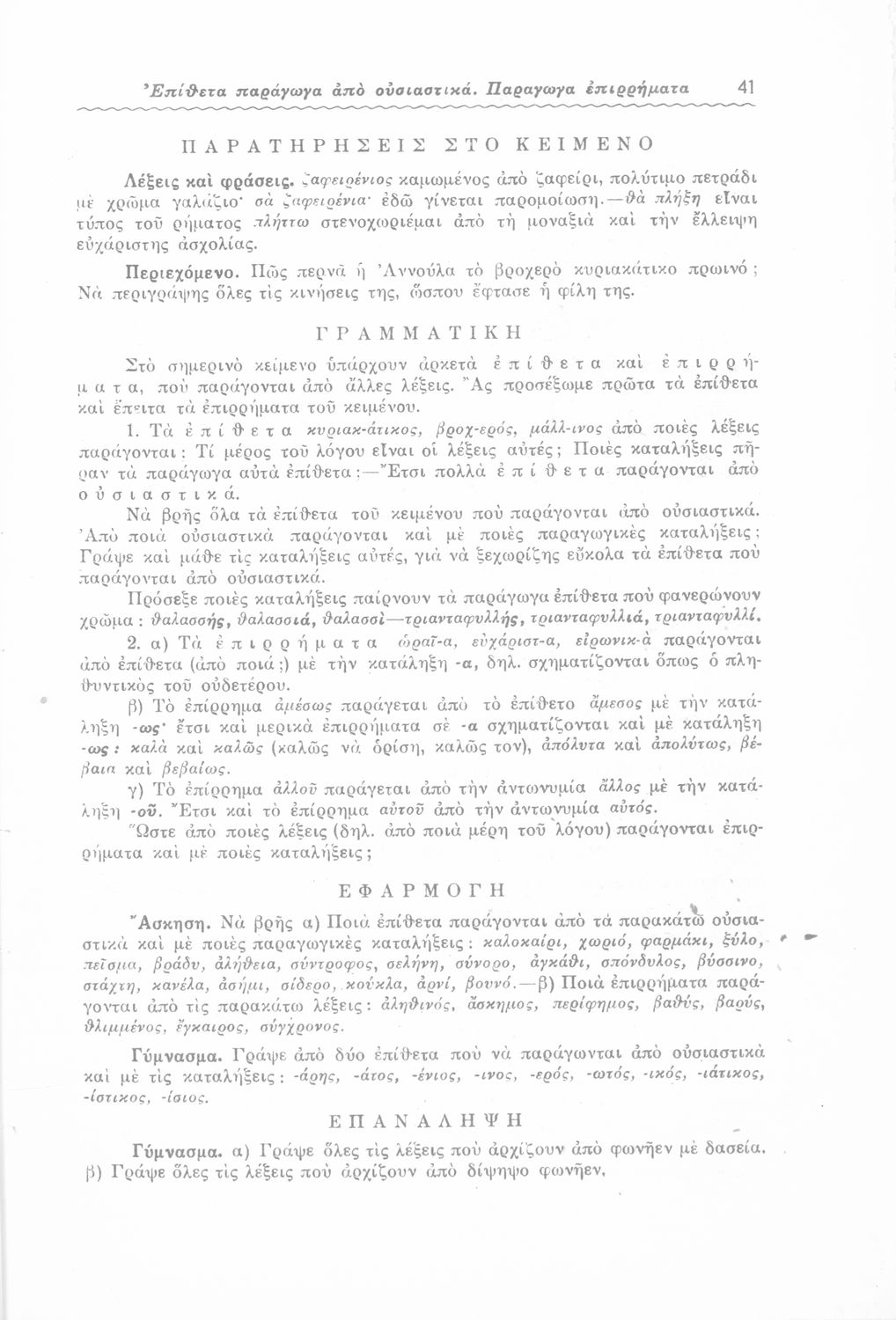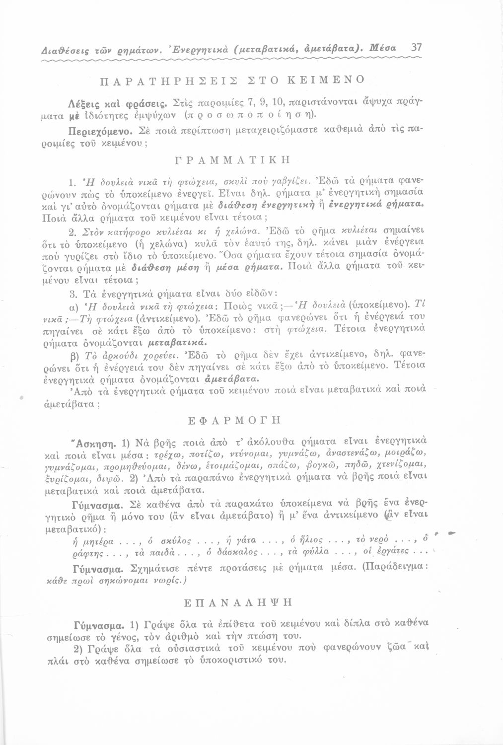 Μαθητικό βοήθημα Γλώσσας και Νέων Ελληνικών για μαθητές των Ε΄ και ΣΤ΄ Δημοτικού και Γυμνασίου που περιλαμβάνει πεζά και ποιήματα, προφορικές και γραπτές ασκήσεις, και βοηθητικούς γραμματικούς πίνακες για τη διδασκαλία των γραμματικών φαινομένων.