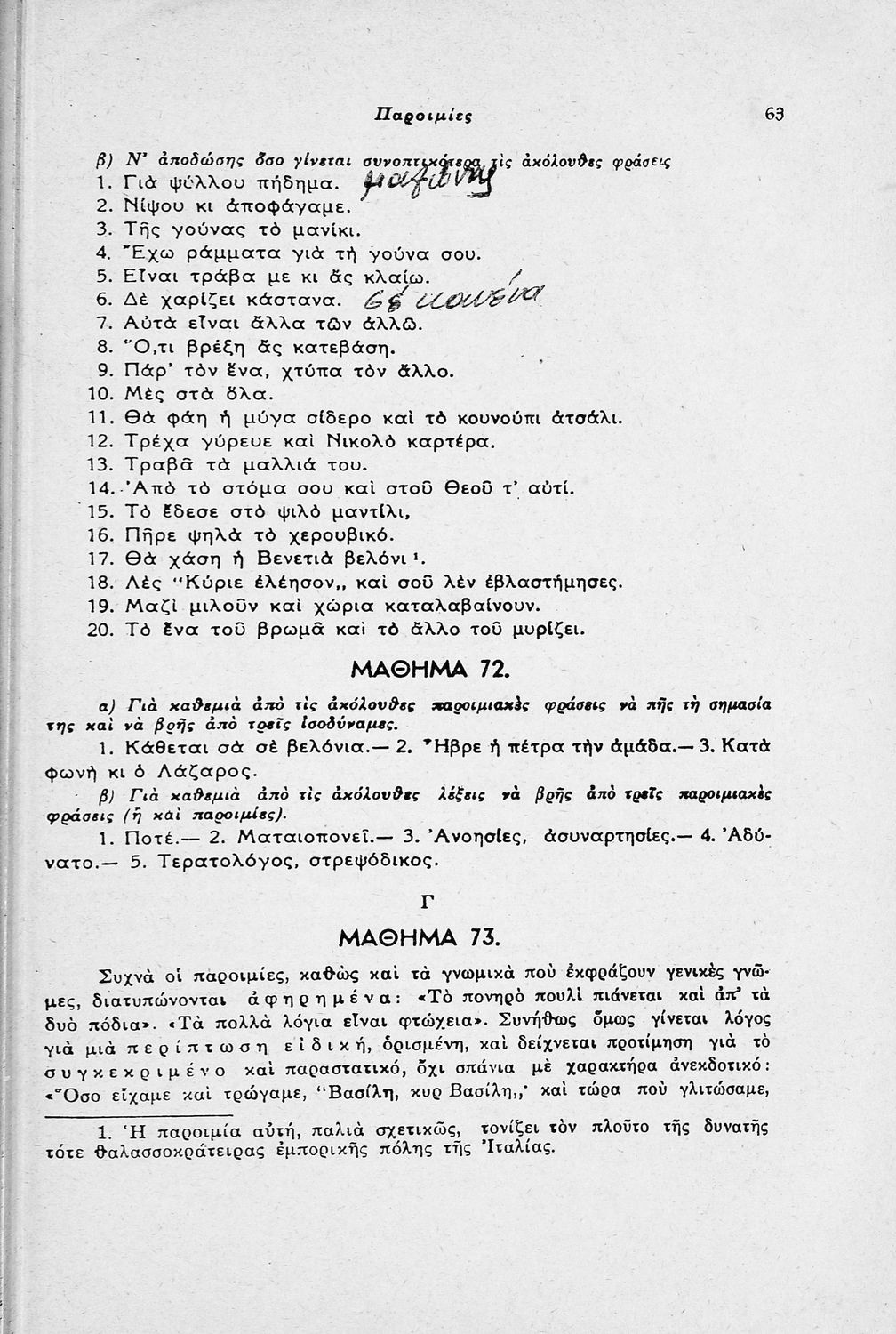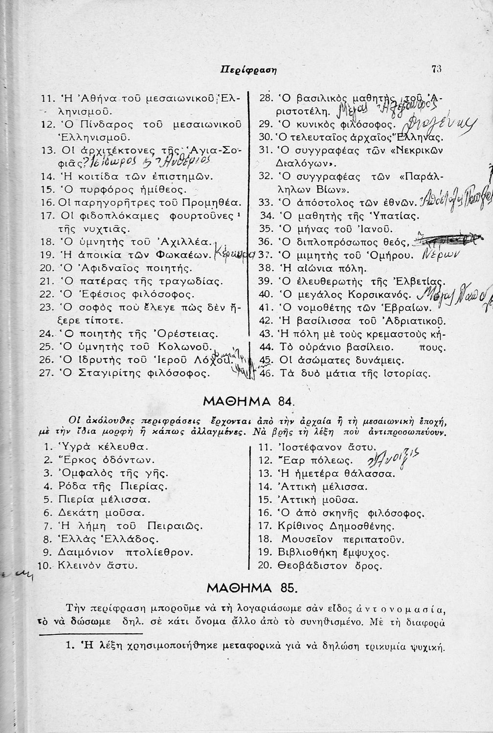 Μαθητικό βοήθημα που περιέχει ατομικές και ομαδικές ασκήσεις και αποσκοπεί στη γλωσσική καλλιέργεια και την παροχή πραγματολογικών γνώσεων.