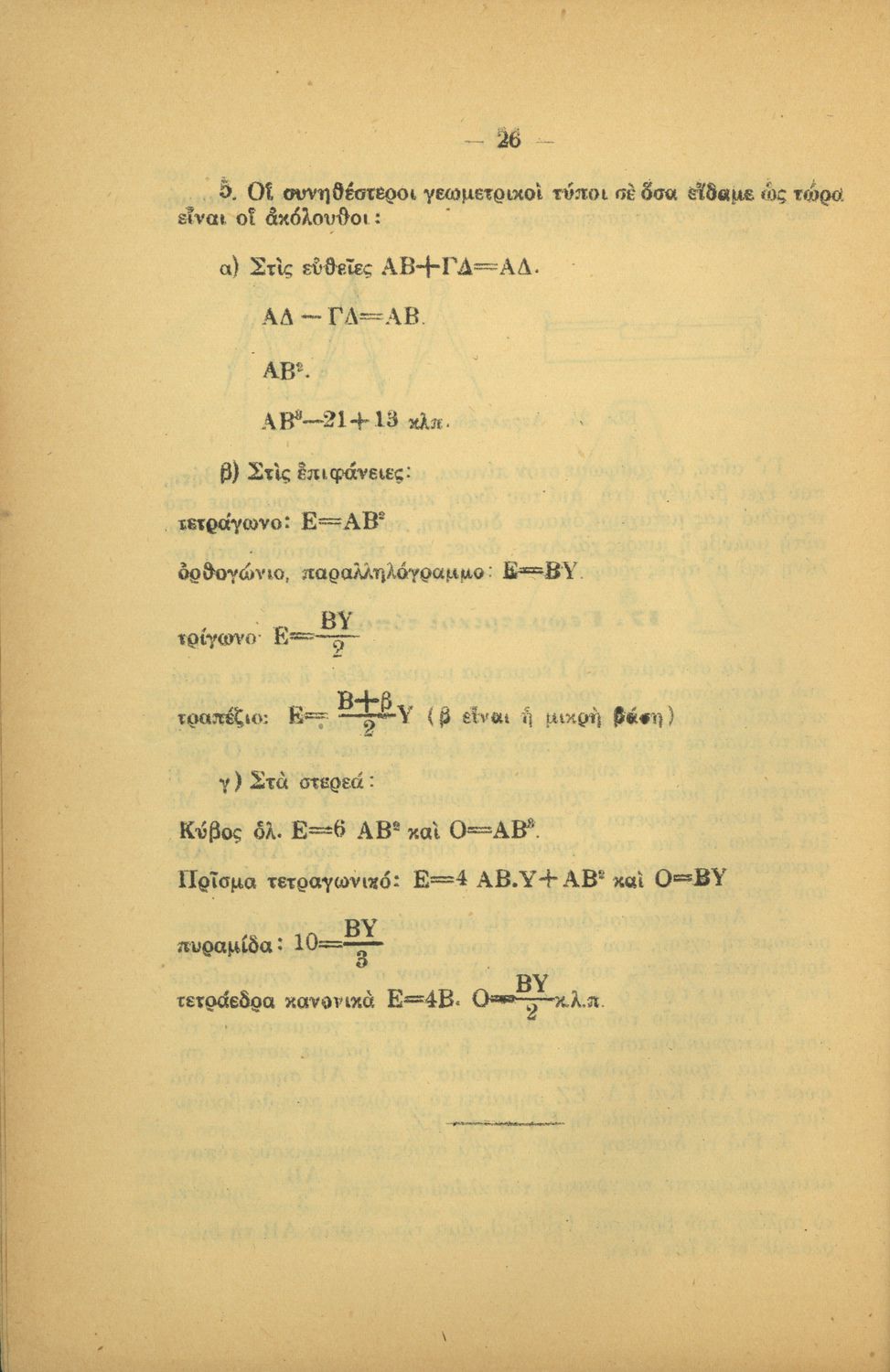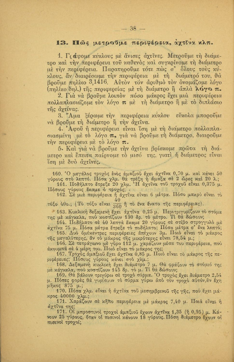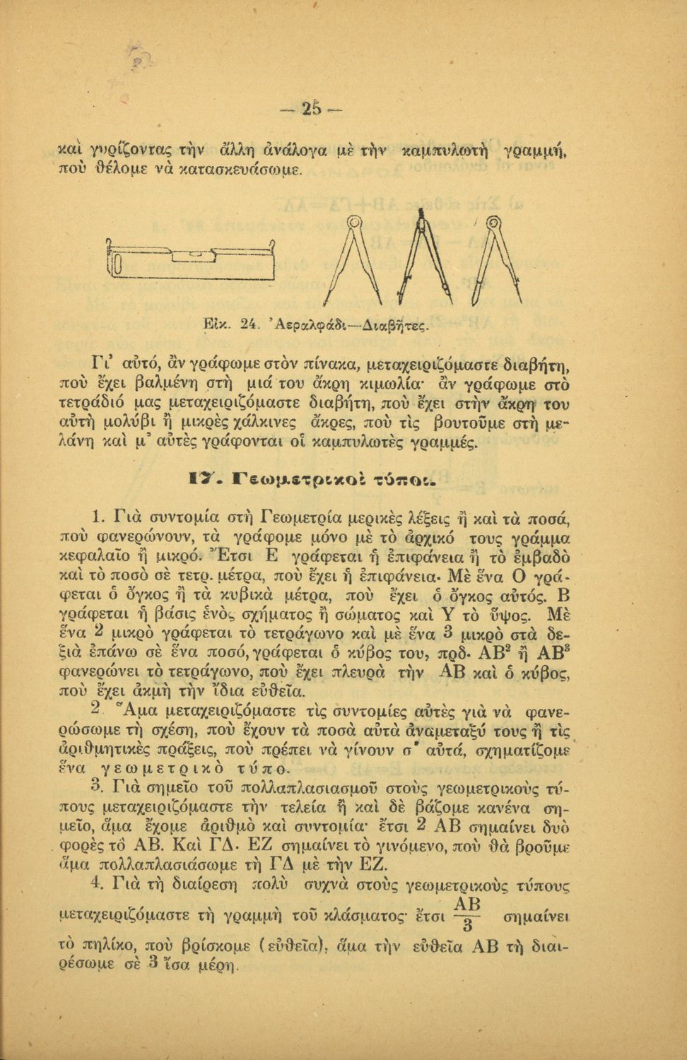 Σχολικό εγχειρίδιο Γεωμετρίας για την Α΄, Β΄ και Γ΄ τάξη των Ελληνικών και Αστικών Σχολείων και Παρθεναγωγείων που είναι χωρισμένο σε Επιπεδομετρία και Στερεομετρία και περιλαμβάνει θεωρία και ασκήσεις.