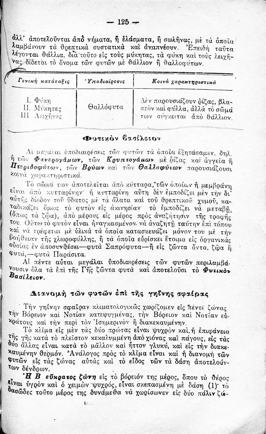 Σχολικό εγχειρίδιο Φυτολογίας Β΄ Εξαταξίου Γυμνασίου και Δ΄ Οκτατάξιου Γυμνασίου που παρουσιάζει τα φυτά ανάλογα με την συνομοταξία στην οποία ανήκουν.