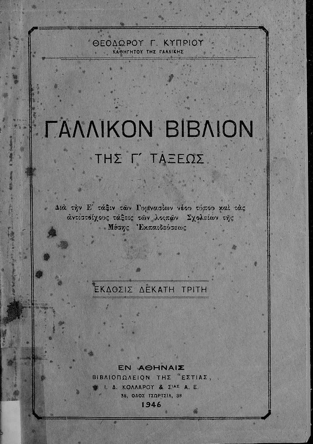 Τίτλος: Γαλλικόν βιβλίον της Γ’ τάξεως