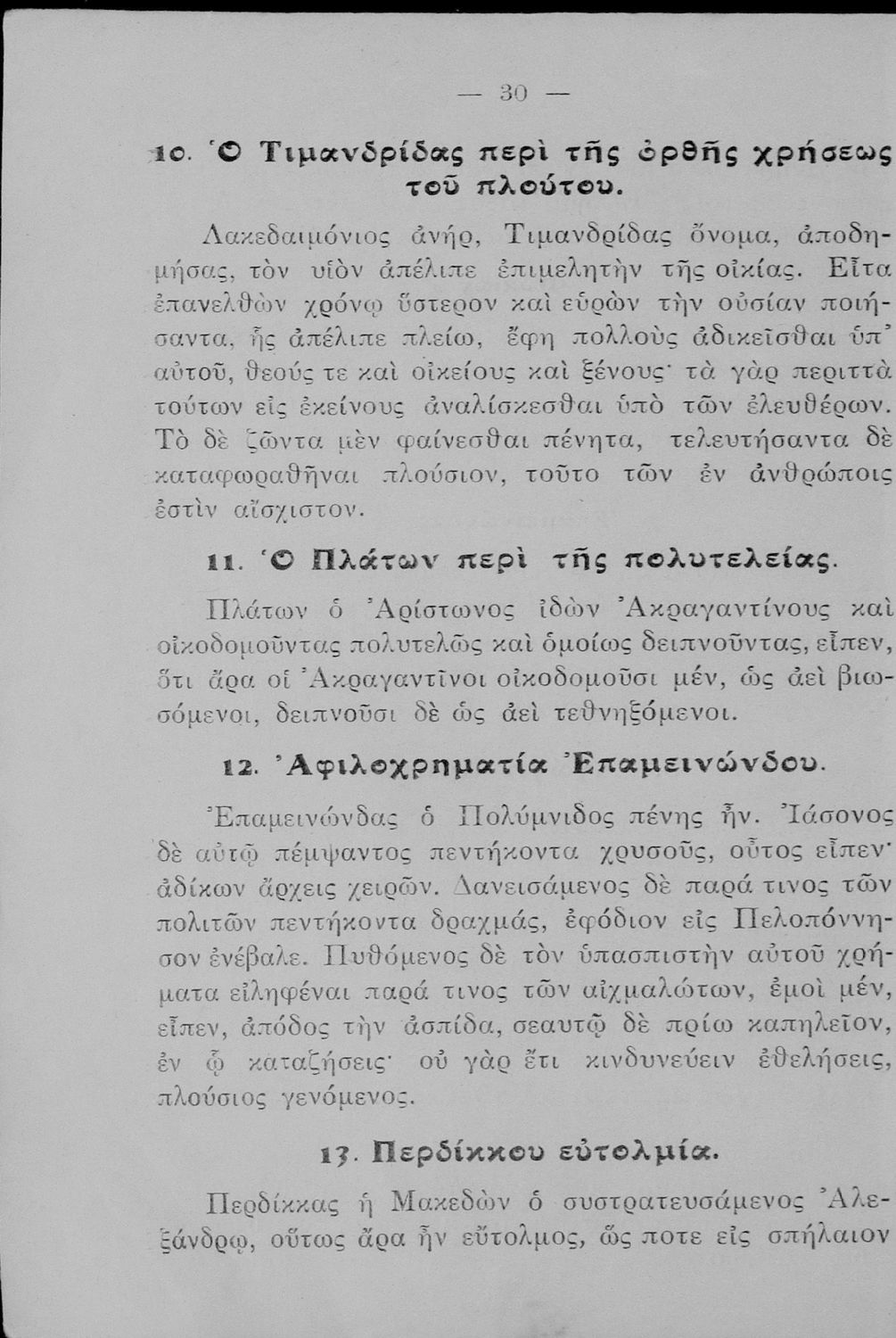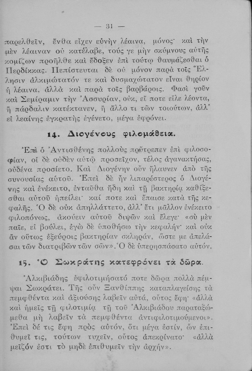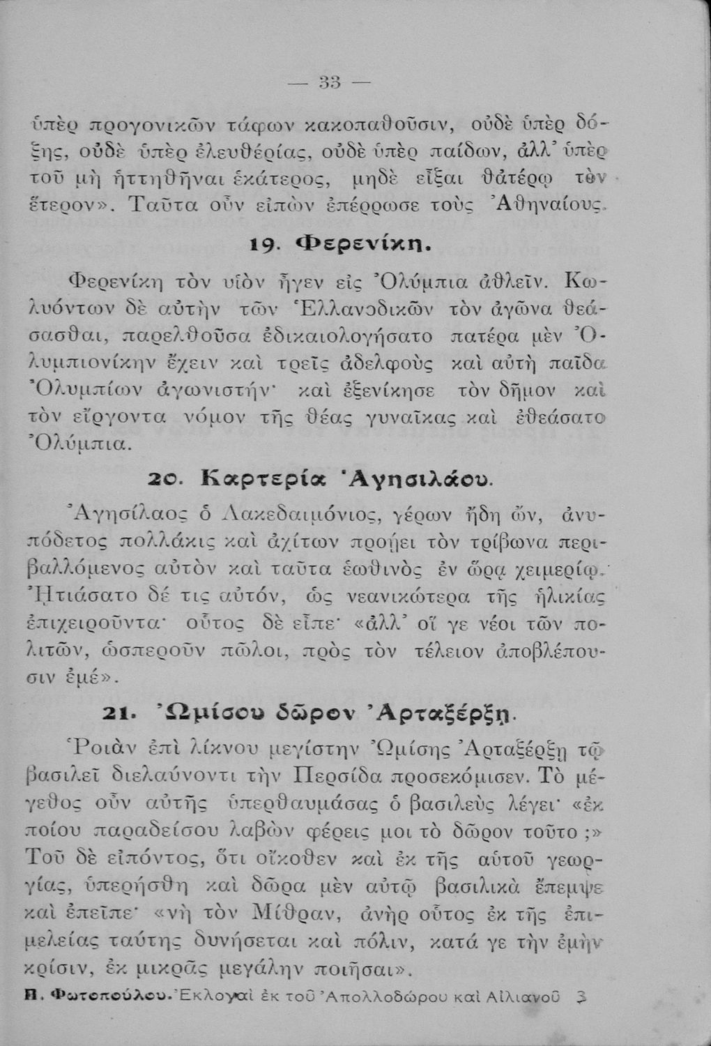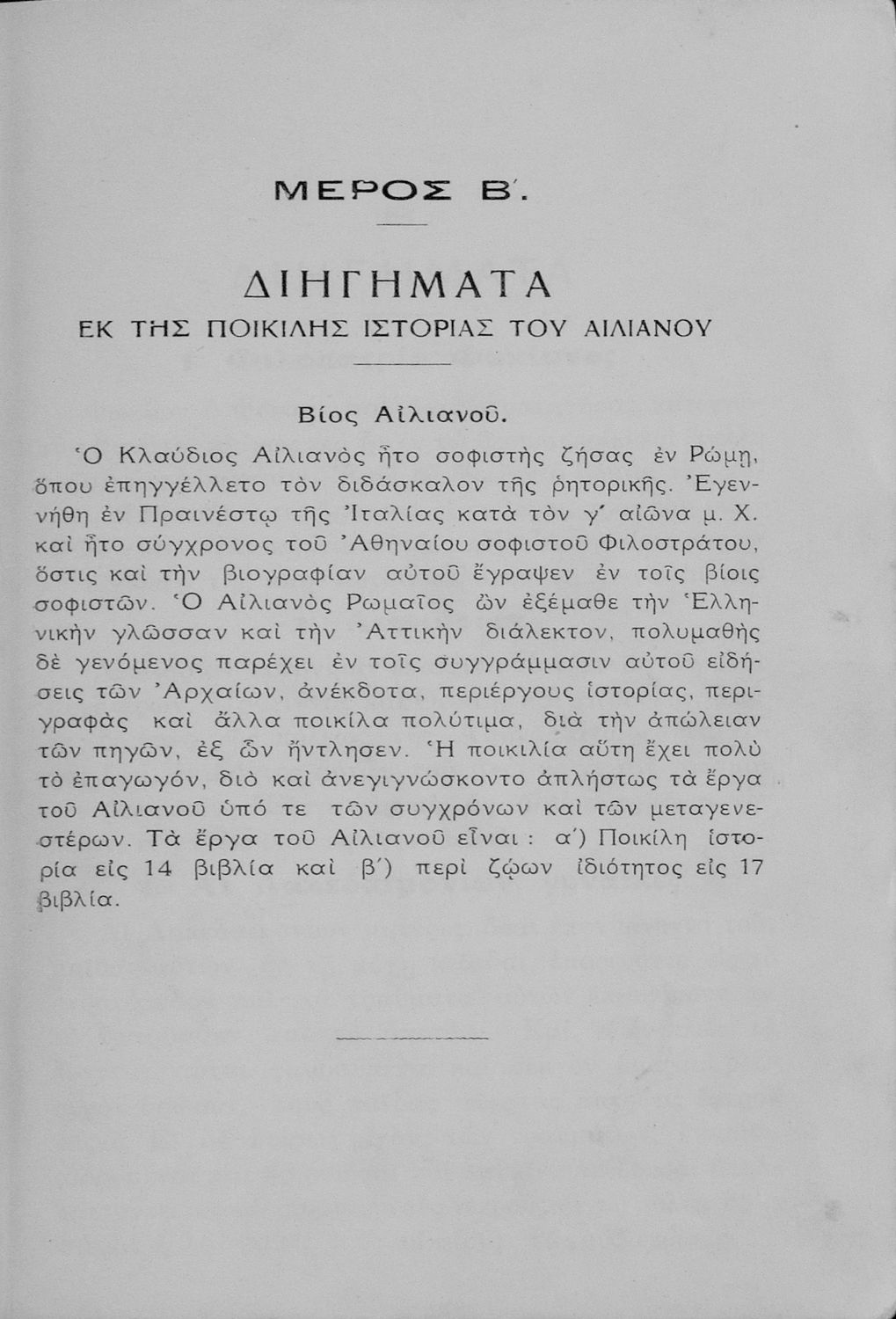 Βαθμίδα εκπαίδευσης: Δευτεροβάθμια Τάξη: Α' Γυμνασίου Μάθημα: Αρχαία Ελληνικά Γλώσσα: Καθαρεύουσα Παρουσίαση περιεχομένου: Σχολικό εγχειρίδιο Αρχαίων Ελληνικών Α΄ Γυμνασίου που περιλαμβάνει εισαγωγή στη ζωή και το έργο των Απολλόδωρου και Αιλιανού, αποσπάσματα από τη Βιβλιοθήκη του Απολλόδωρου και την Ποικίλη Ιστορία του Αιλιανού και ερμηνευτικές παρατηρήσεις και σχόλια. |