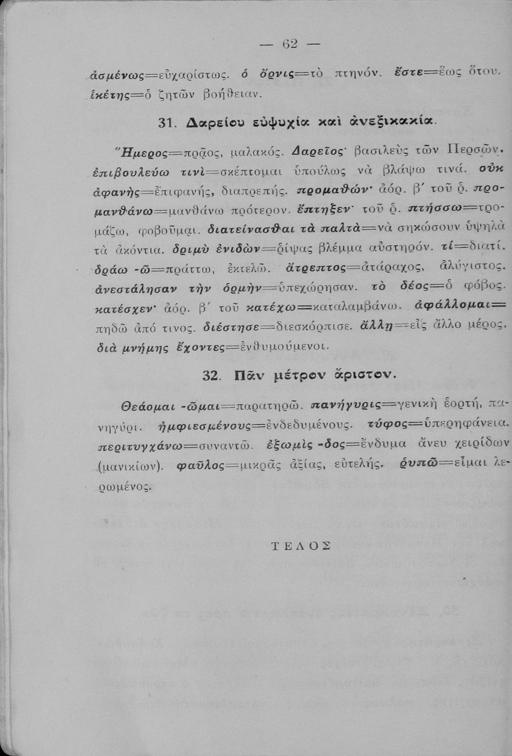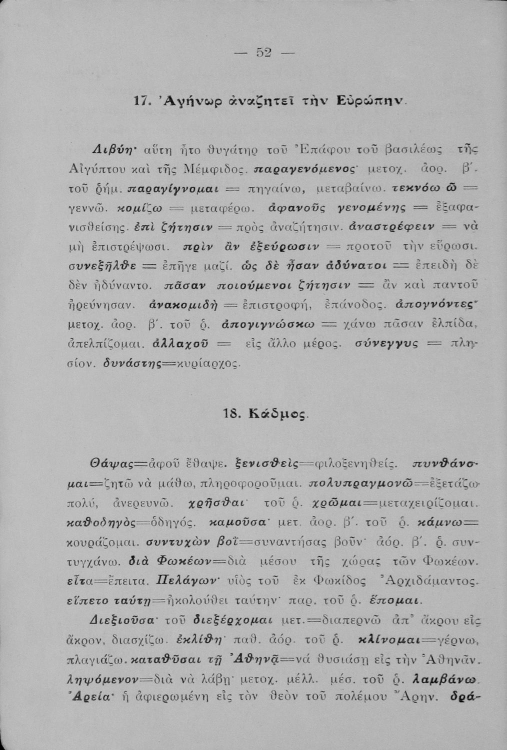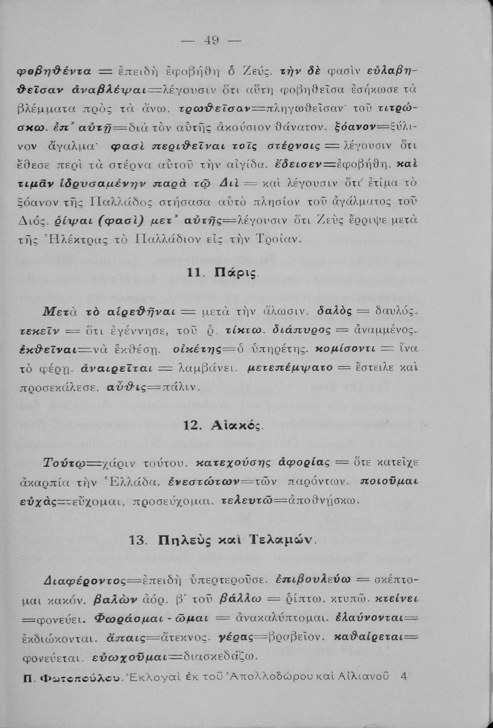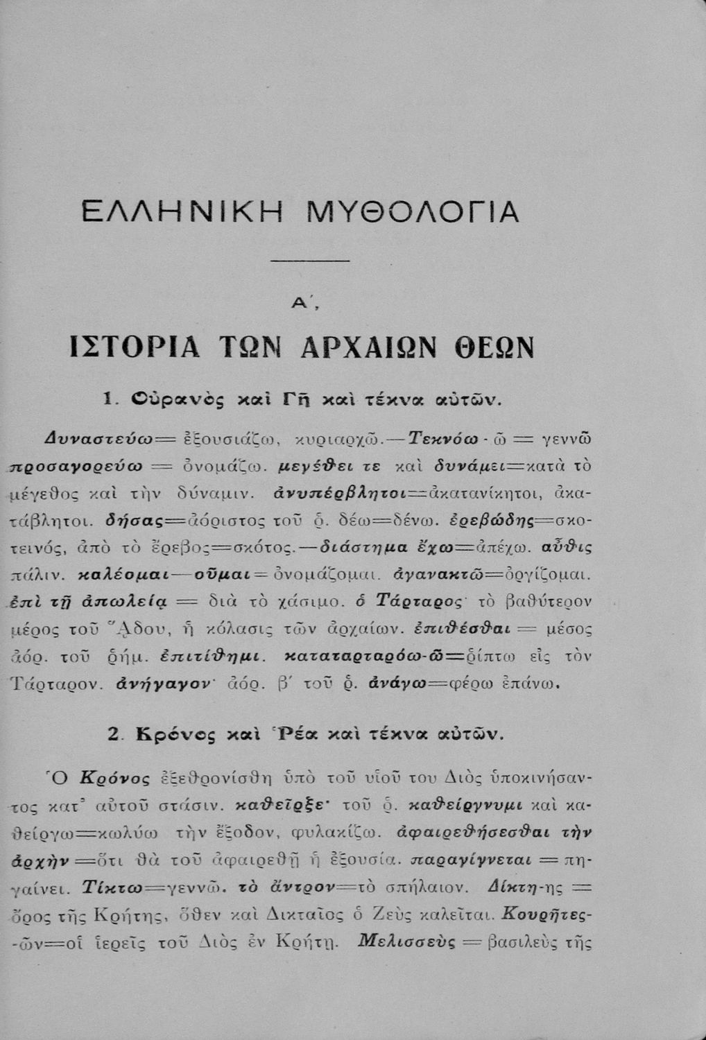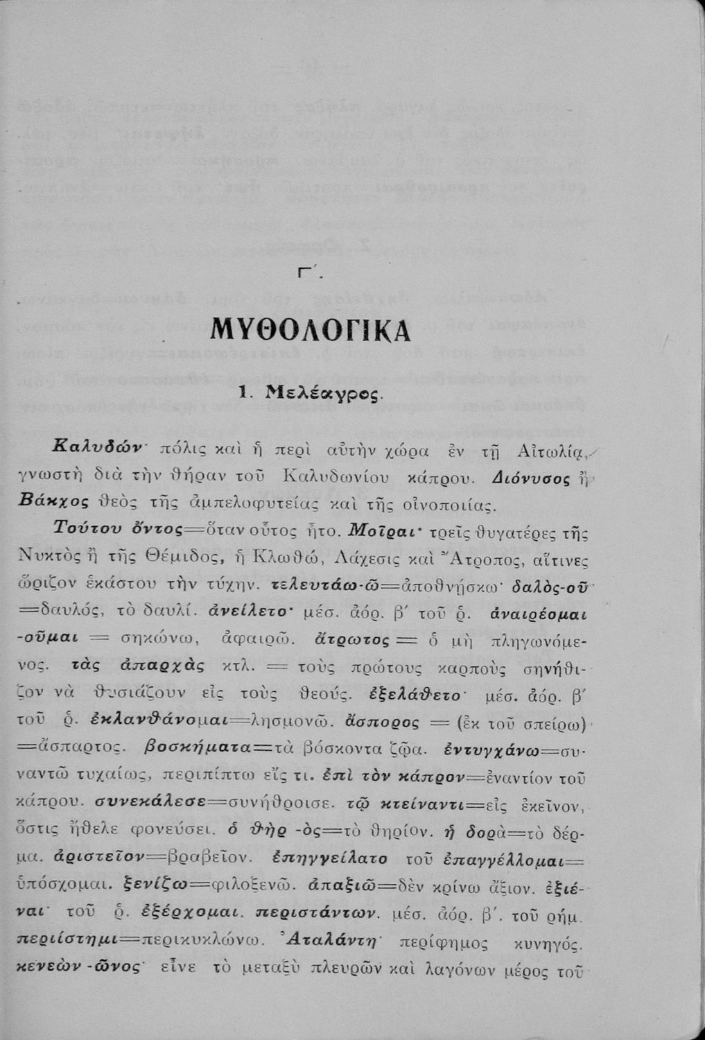 Βαθμίδα εκπαίδευσης: Δευτεροβάθμια Τάξη: Α' Γυμνασίου Μάθημα: Αρχαία Ελληνικά Γλώσσα: Καθαρεύουσα Παρουσίαση περιεχομένου: Σχολικό εγχειρίδιο Αρχαίων Ελληνικών Α΄ Γυμνασίου που περιλαμβάνει εισαγωγή στη ζωή και το έργο των Απολλόδωρου και Αιλιανού, αποσπάσματα από τη Βιβλιοθήκη του Απολλόδωρου και την Ποικίλη Ιστορία του Αιλιανού και ερμηνευτικές παρατηρήσεις και σχόλια. |