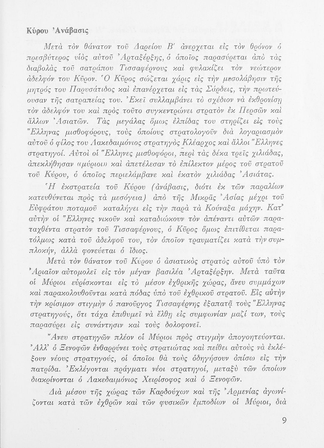 Σχολικό Εγχειρίδιο Αρχαίων Ελληνικών της Β' Γυμνασίου. Το βιβλίο αναφέρεται στο σύγγραμμα του Ξενοφώντα για την εκστρατεία του Κύρου κατά του Αρταξέρξη και κυρίως την κάθοδο ( επιστροφή) των Μυρίων. Στο ...