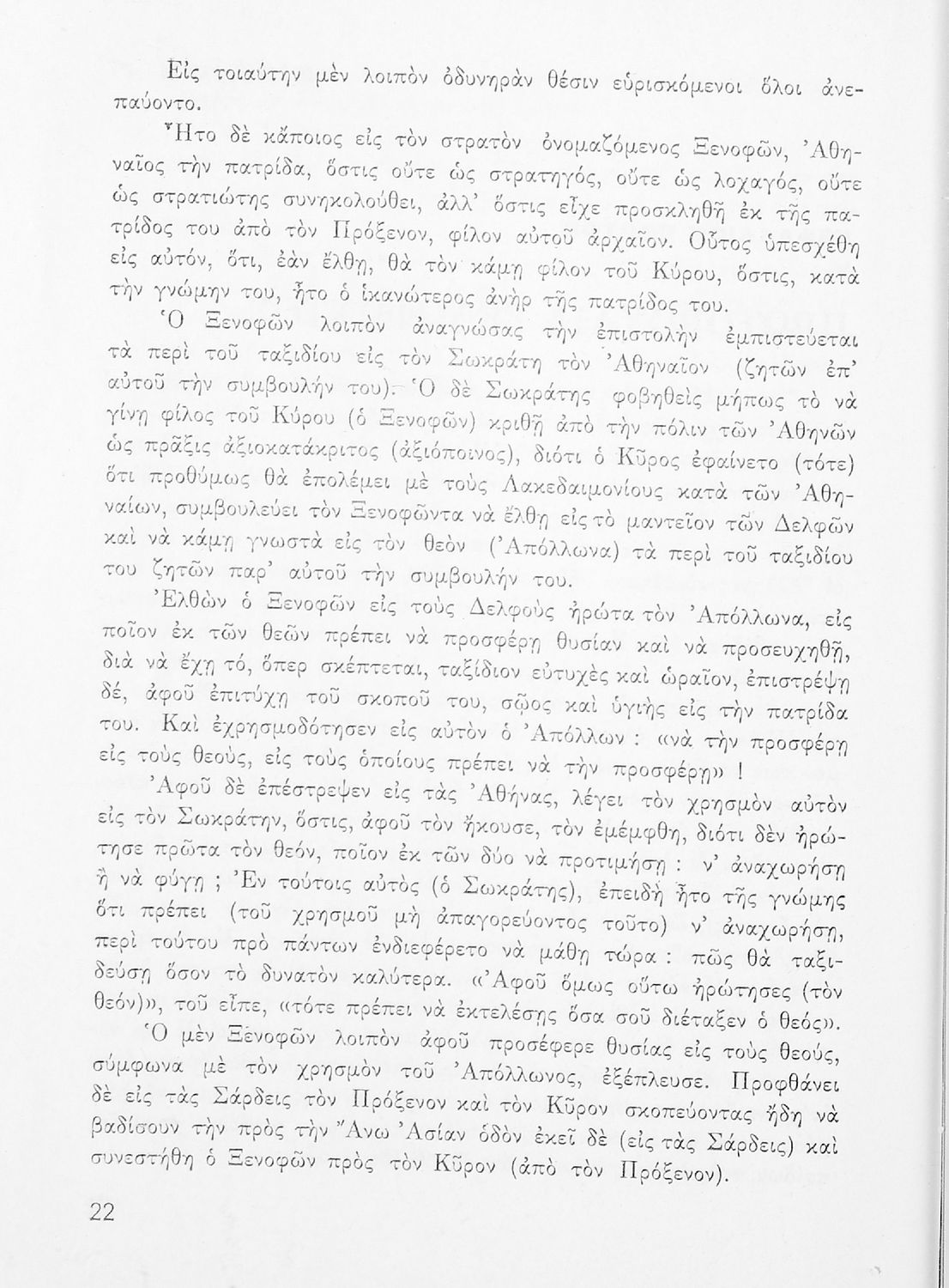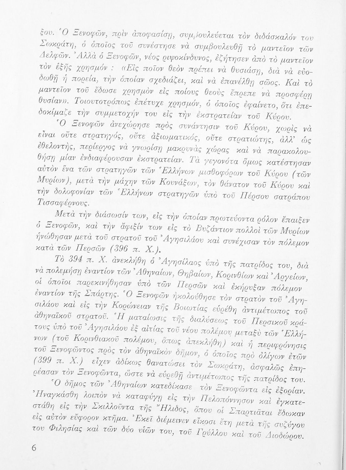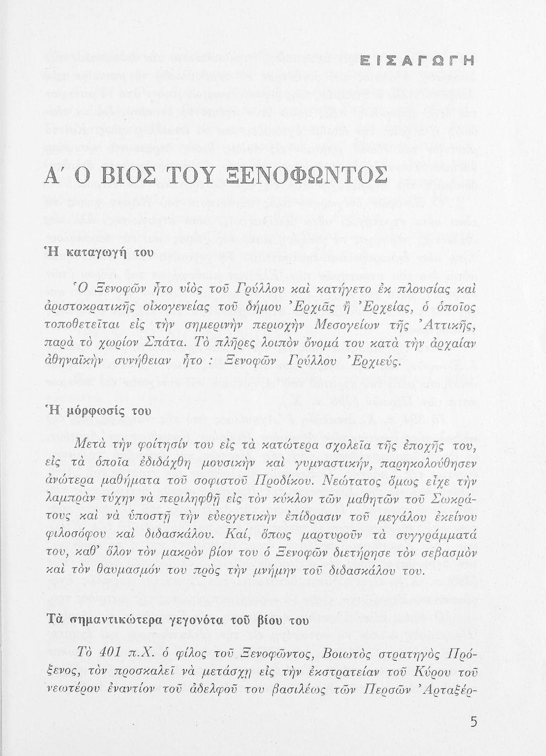Σχολικό εγχειρίδιο Αρχαίων Ελληνικών για τη Β΄ Γυμνασίου με αποσπάσματα από το έργο του Ξενοφώντα. Το βιβλίο περιέχει ερμηνευτικές σημειώσεις και σχόλια.