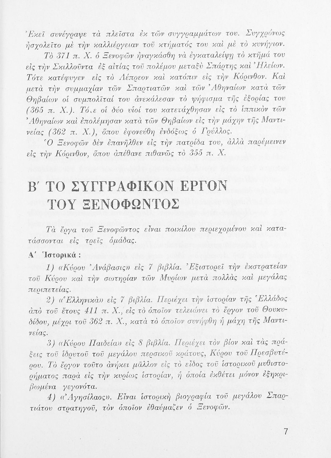 Σχολικό εγχειρίδιο Αρχαίων Ελληνικών Β΄ Γυμνασίου που περιέχει αποσπάσματα από τα έργα του Ξενοφώντα Ελληνικά και Κύρου Ανάβασις, λεξιλογικές παρατηρήσεις, ερμηνευτικά, πραγματολογικά σχόλια και γραμματικές ...