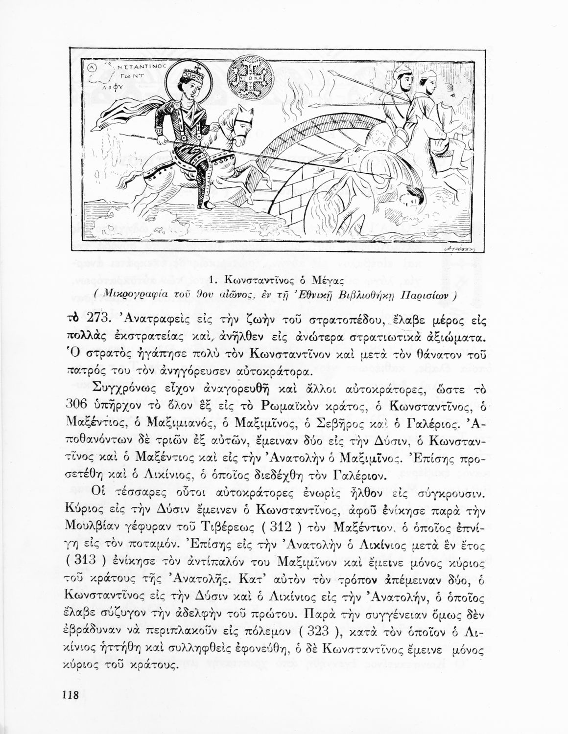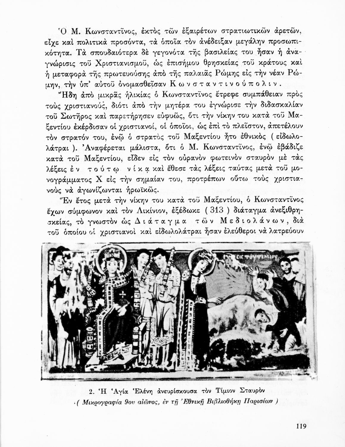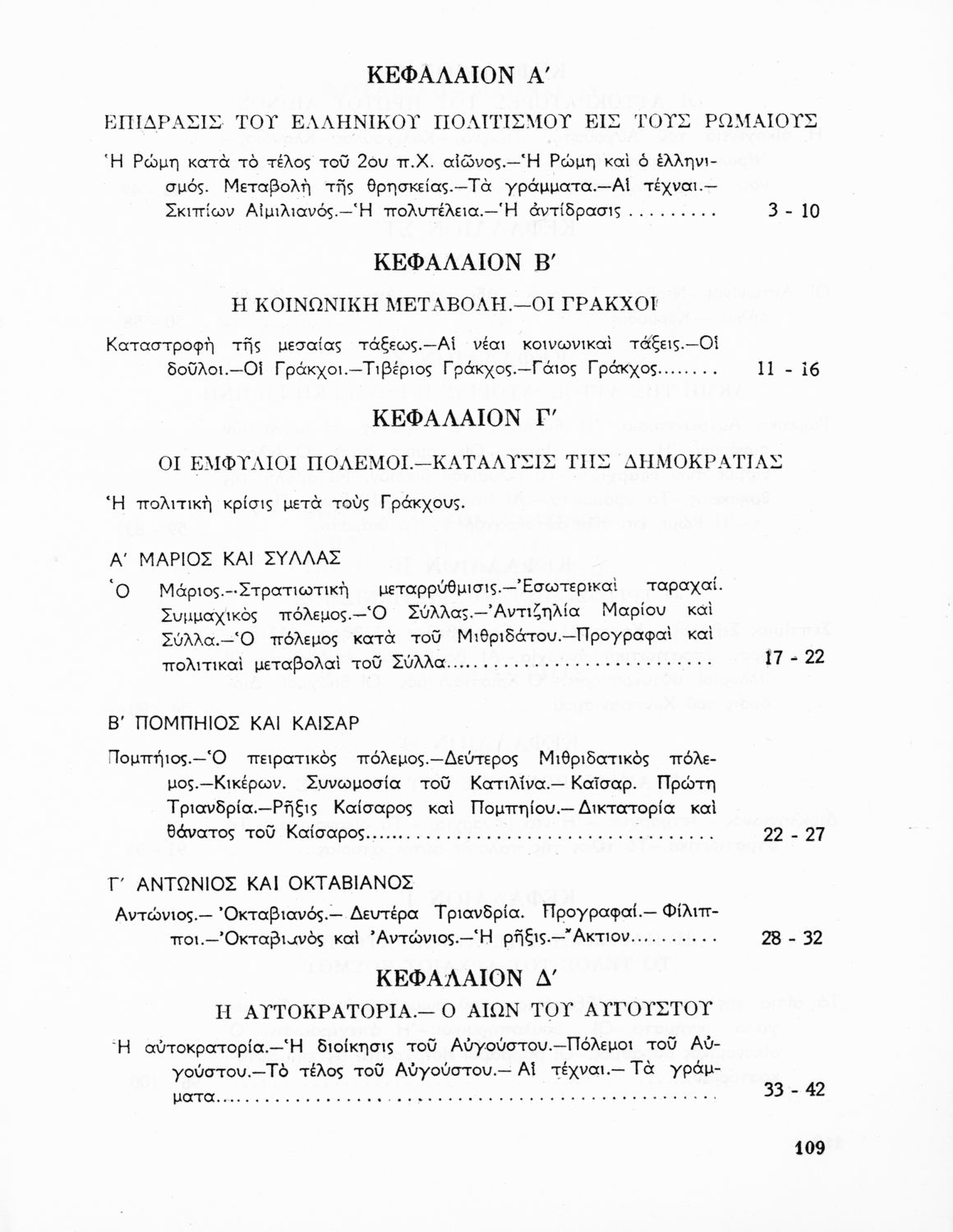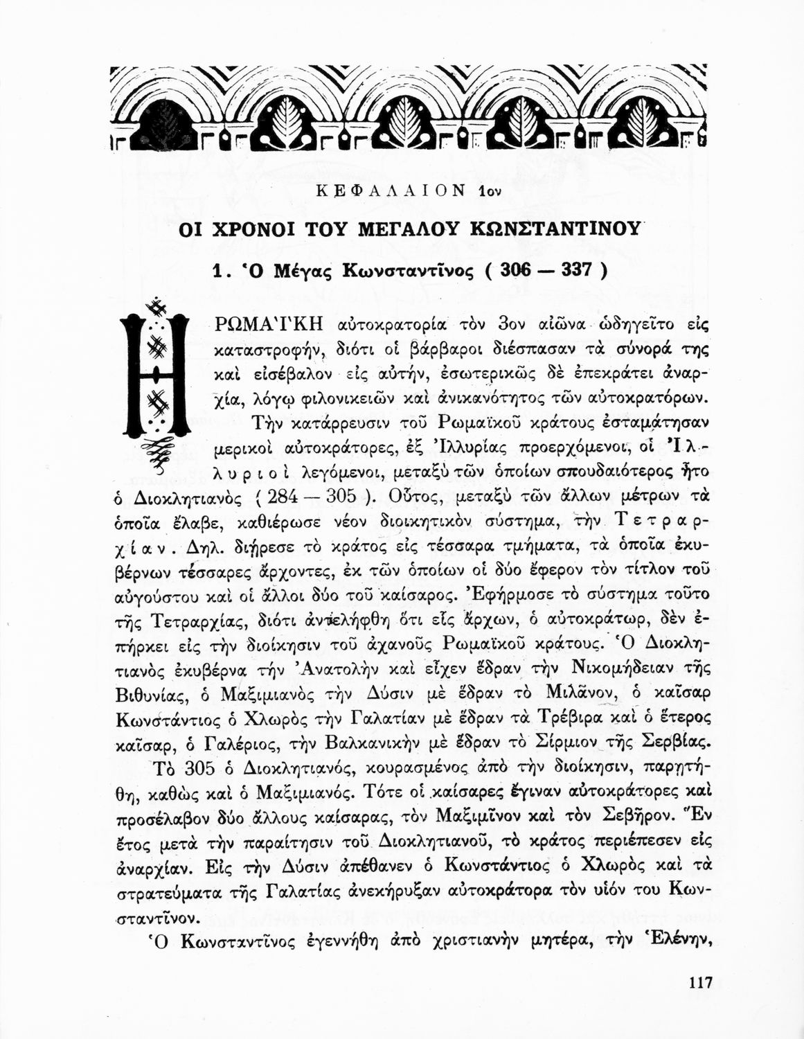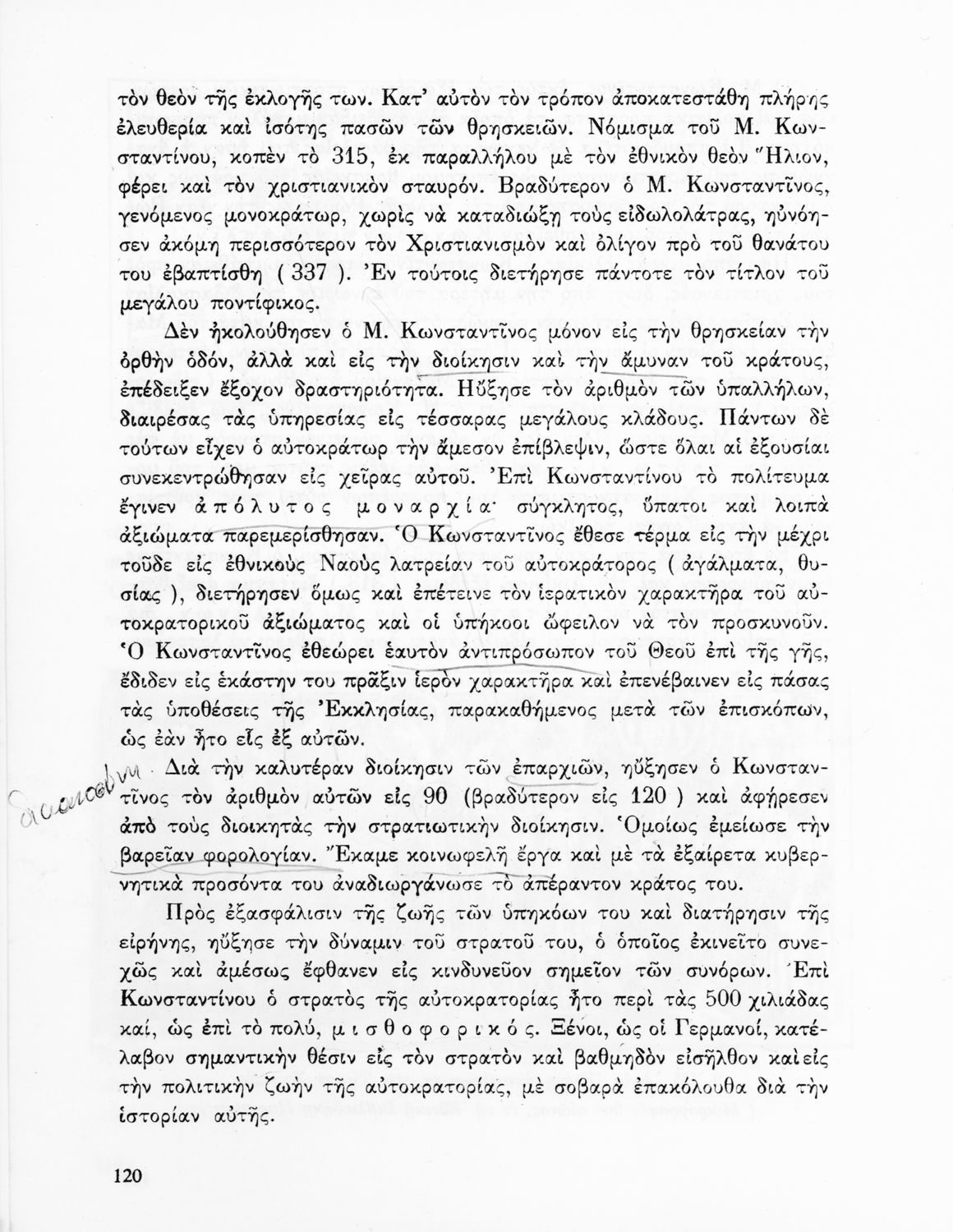Σχολικό εγχειρίδιο Ιστορίας Β΄ και Ε΄ Γυμνασίου που καλύπτει την περίοδο από την άνοδο του Μ. Κωνσταντίνου στο θρόνο μέχρι και την άλωση της Κωνσταντινούπολης. Παρουσιάζει και τα πνευματικά και καλλιτεχνικά ρεύματα της περιόδου. Φέρει το σύμβολο της δικτατορίας.
