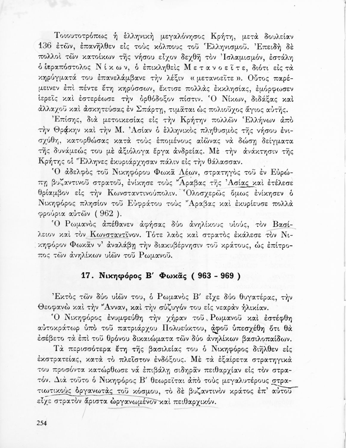 Σχολικό εγχειρίδιο Ιστορίας Β΄ και Ε΄ Γυμνασίου που καλύπτει την περίοδο από την άνοδο του Μ. Κωνσταντίνου στο θρόνο μέχρι και την άλωση της Κωνσταντινούπολης. Παρουσιάζει και τα πνευματικά και καλλιτεχνικά ρεύματα της περιόδου. Φέρει το σύμβολο της δικτατορίας.