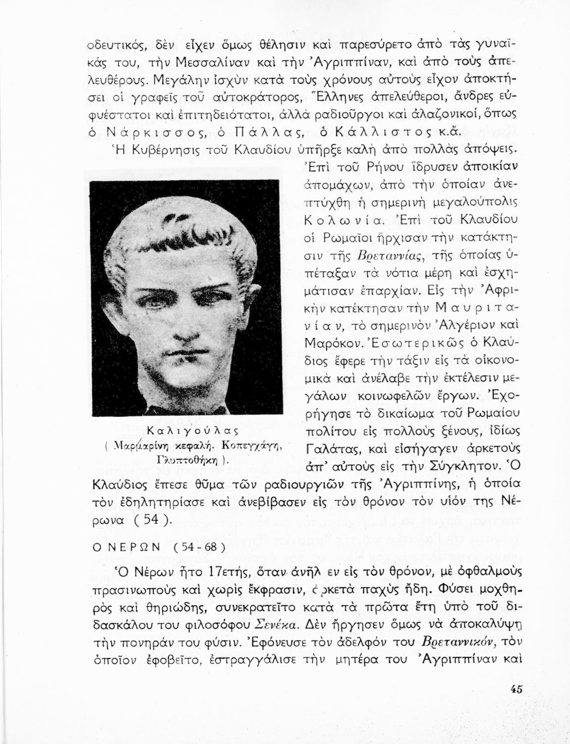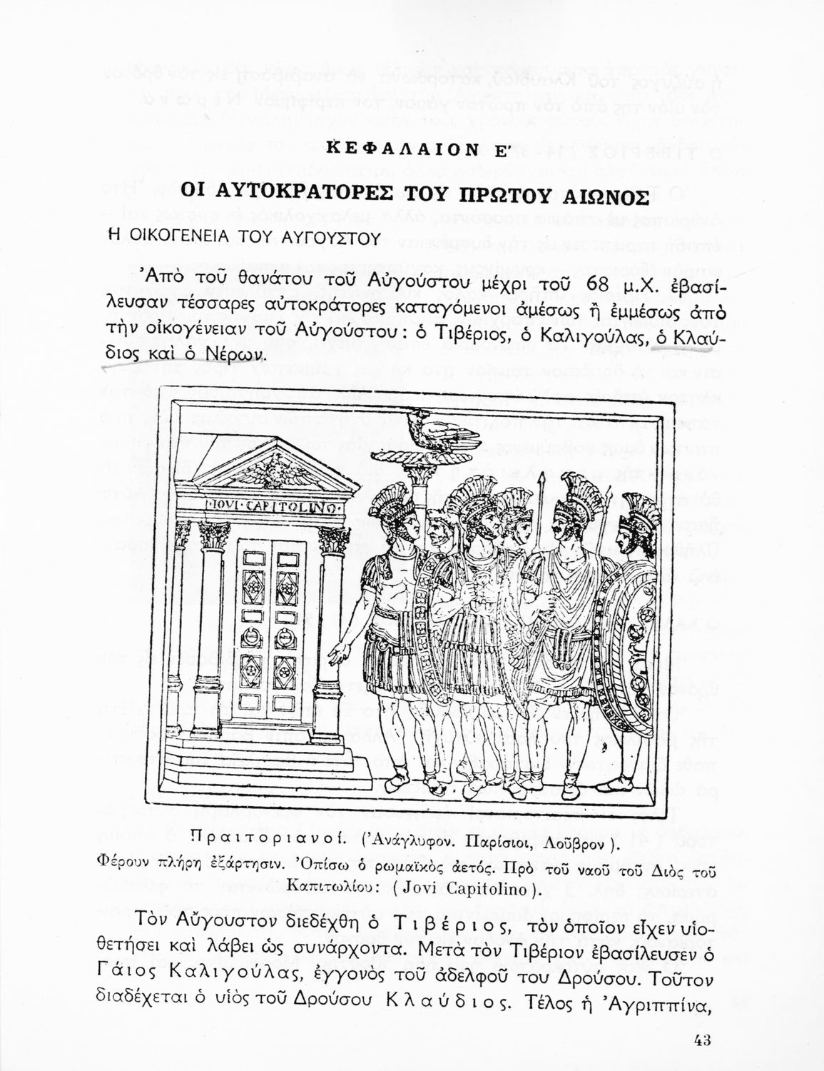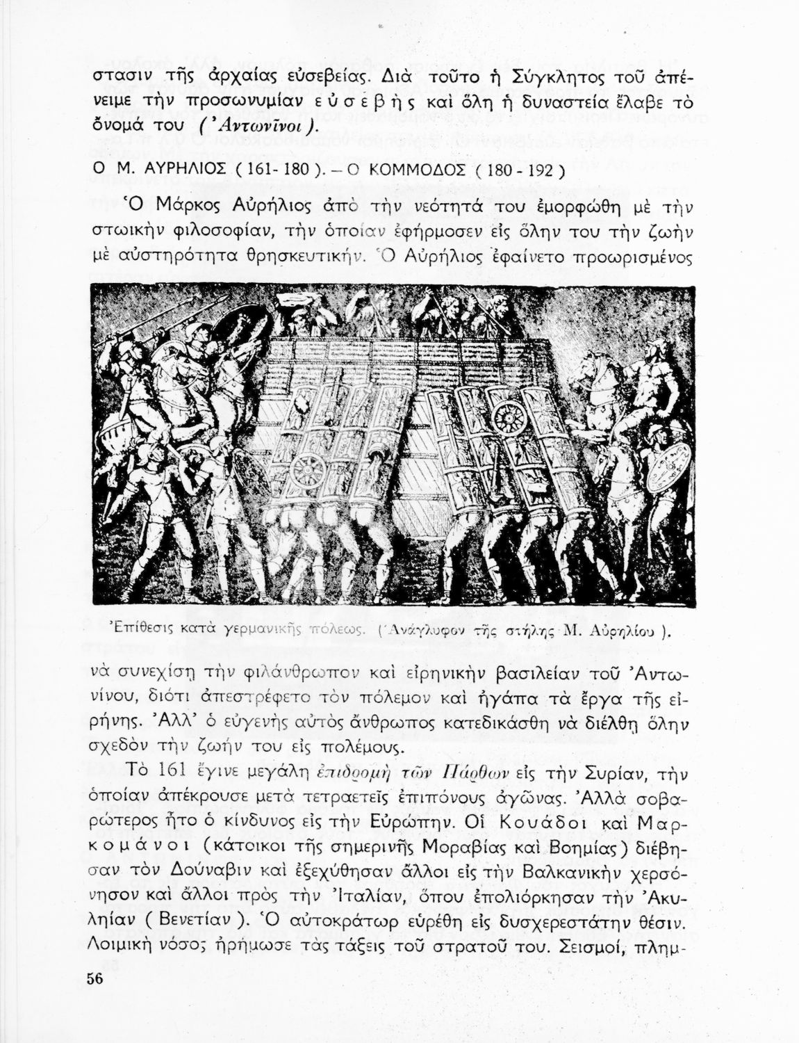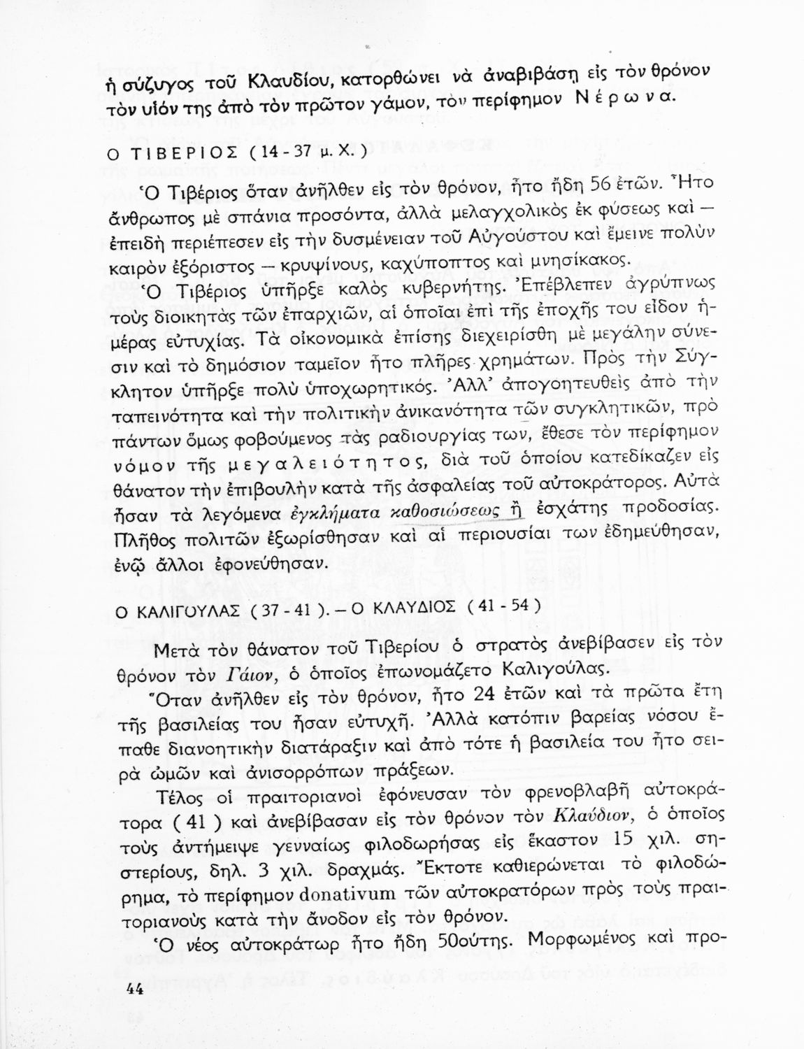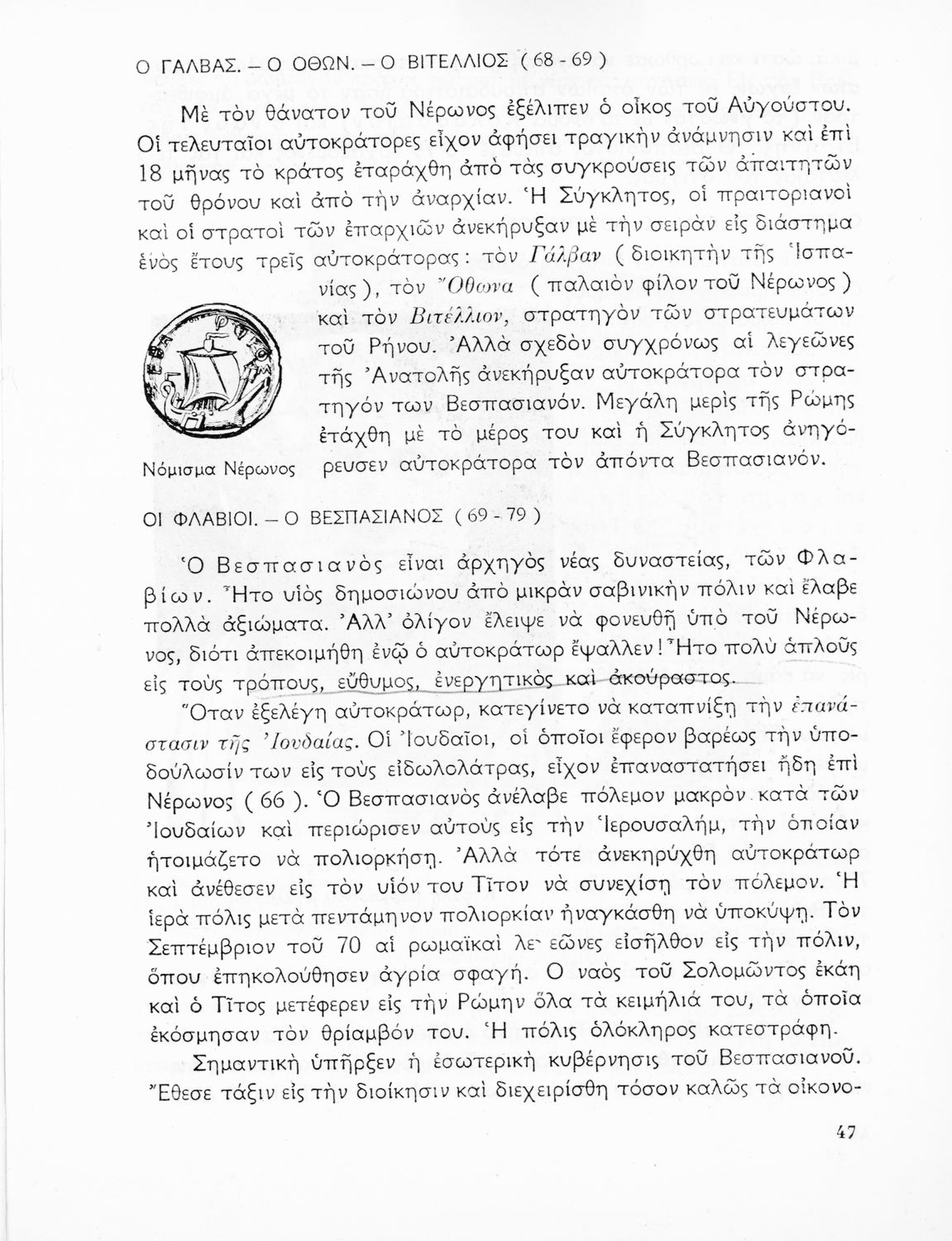 520 ## _aΣχολικό εγχειρίδιο Ιστορίας Β΄ και Ε΄ Γυμνασίου που καλύπτει την περίοδο από την άνοδο του Μ. Κωνσταντίνου στο θρόνο μέχρι και την άλωση της Κωνσταντινούπολης. Παρουσιάζει και τα πνευματικά και καλλιτεχνικά ρεύματα της περιόδου. Φέρει το σύμβολο της δικτατορίας.