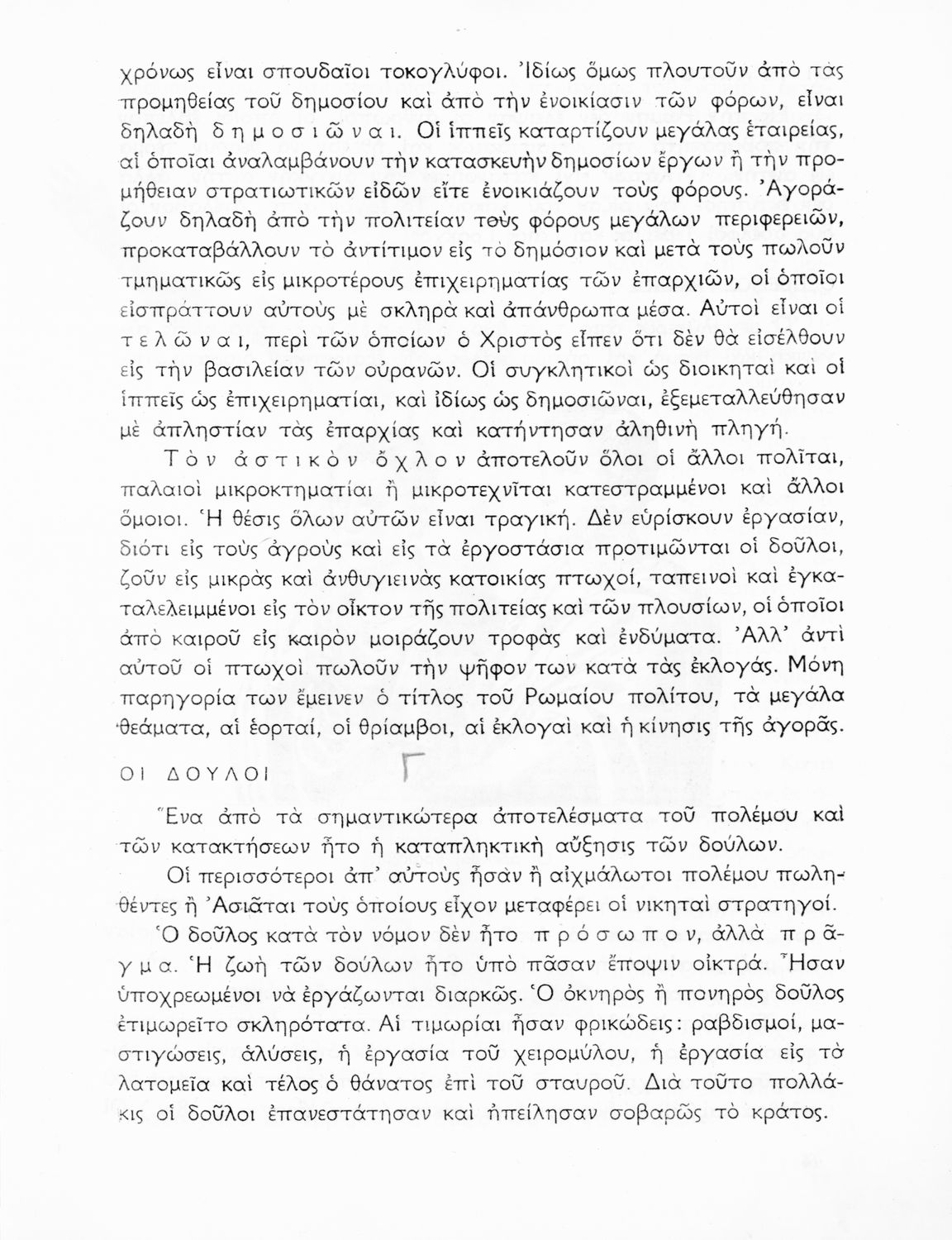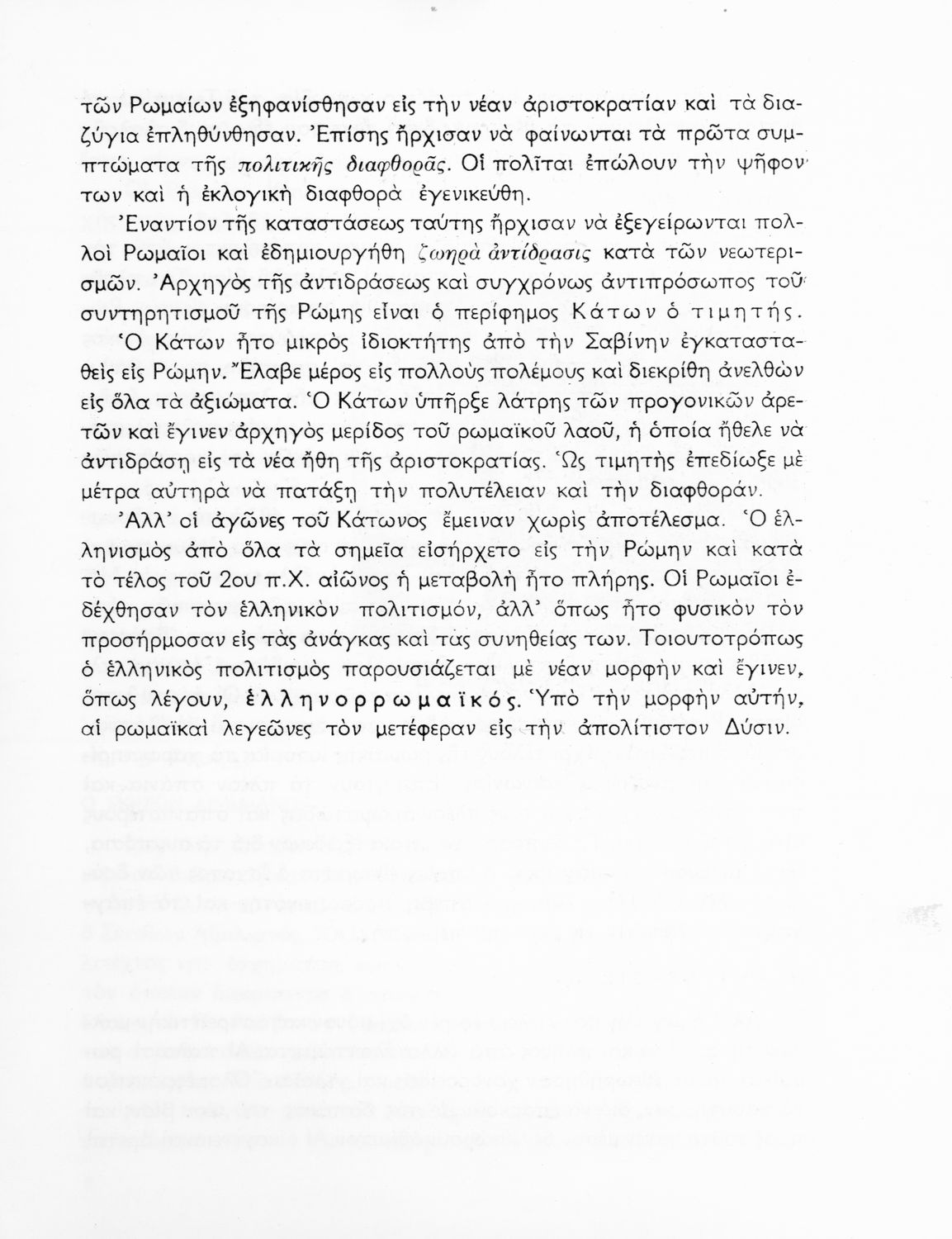 Σχολικό εγχειρίδιο Ιστορίας Β΄ και Ε΄ Γυμνασίου που καλύπτει την περίοδο από την άνοδο του Μ. Κωνσταντίνου στο θρόνο μέχρι και την άλωση της Κωνσταντινούπολης. Παρουσιάζει και τα πνευματικά και καλλιτεχνικά ρεύματα της περιόδου. Φέρει το σύμβολο της δικτατορίας.