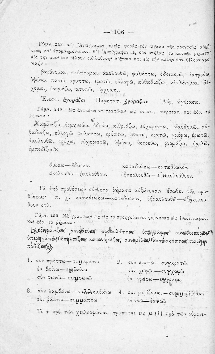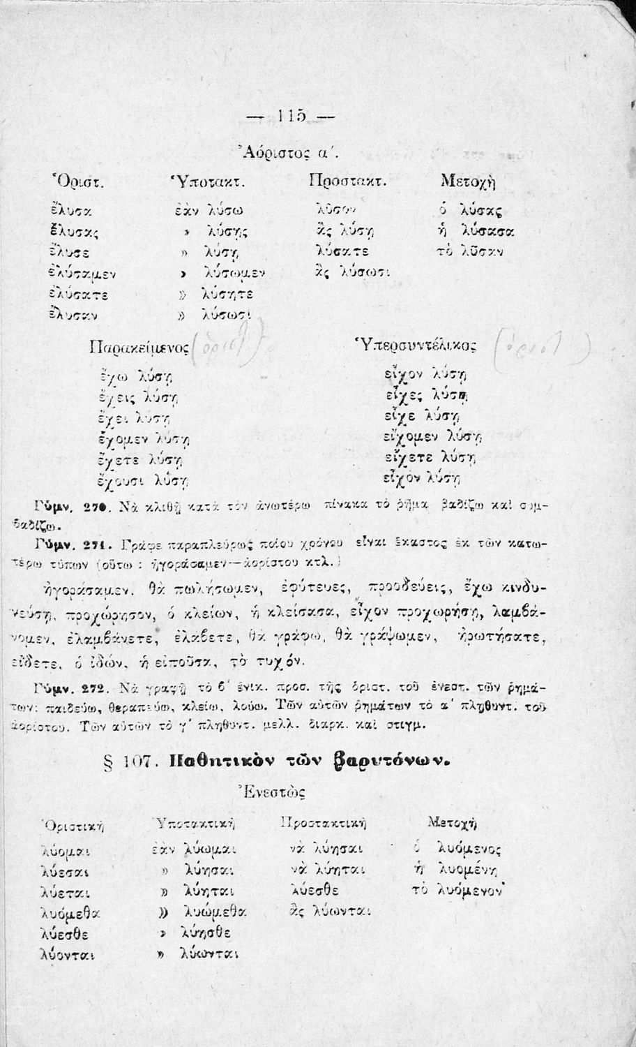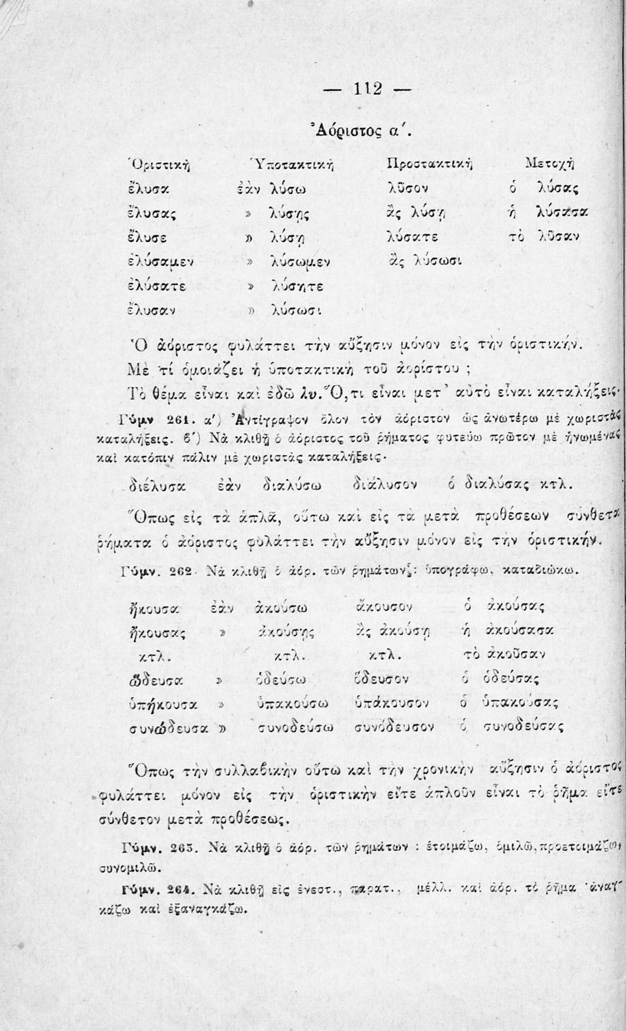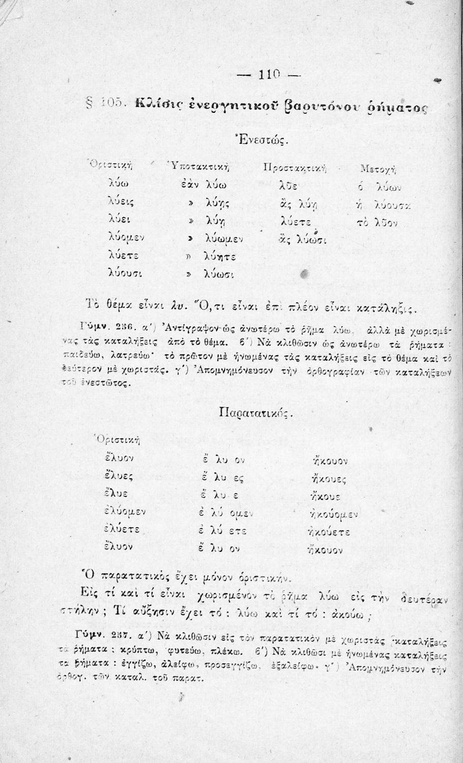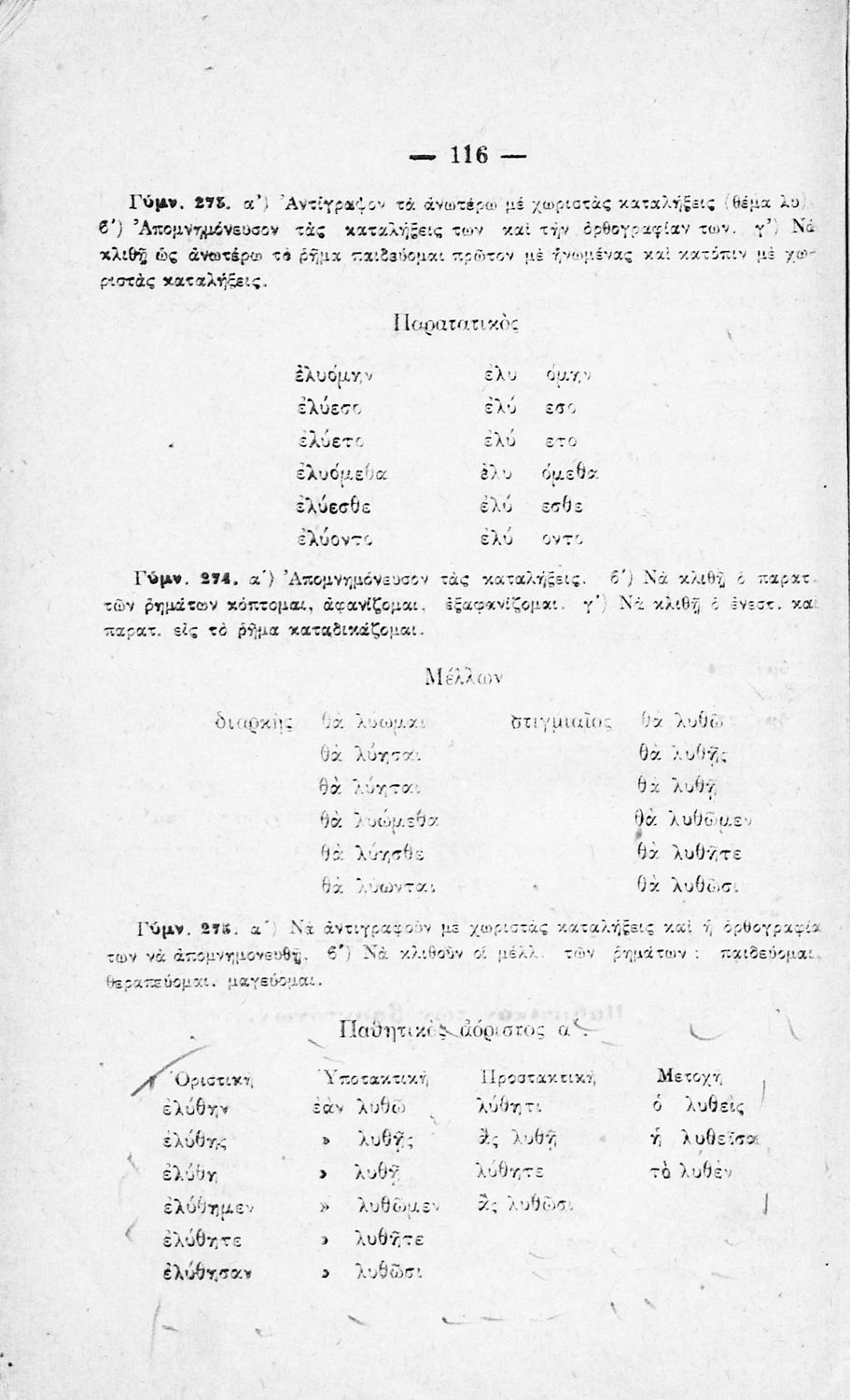 Μαθητικό βοήθημα Γλώσσας Ε΄ και ΣΤ΄ Δημοτικού που περιλαμβάνει τους γραμματικούς και συντακτικούς κανόνες της καθαρεύουσας και ασκήσεις.