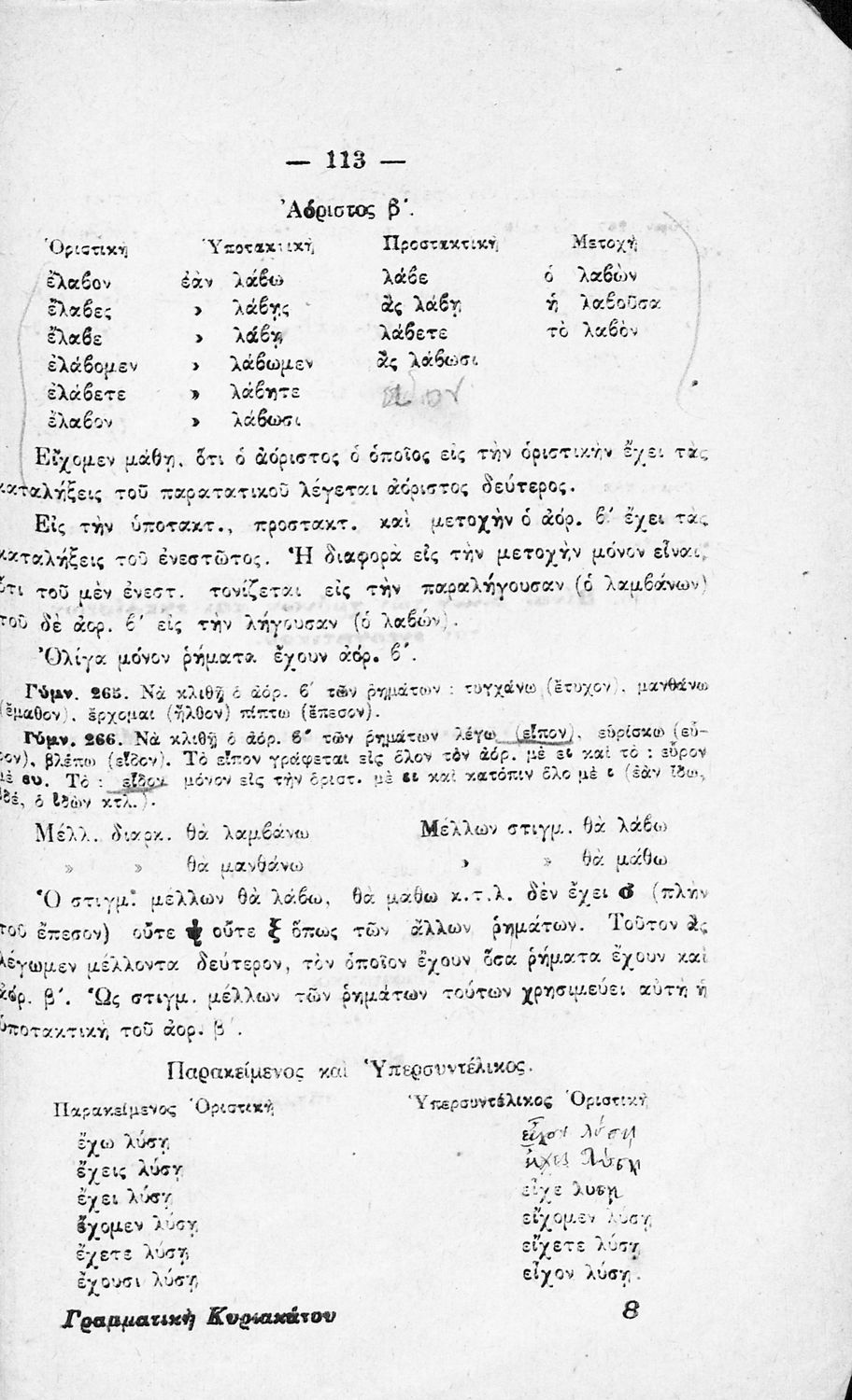 Τίτλος: Γραμματική της Πέμπτης και Έκτης τάξεως του πλήρους Δημοτικού Σχολείου αμφοτέρων των φύλων