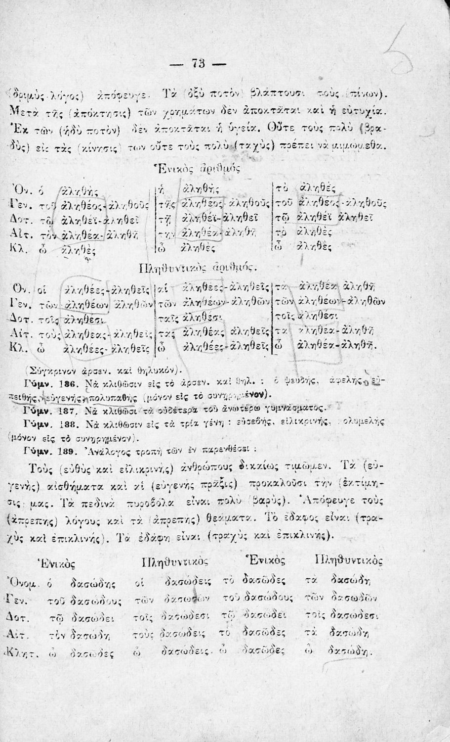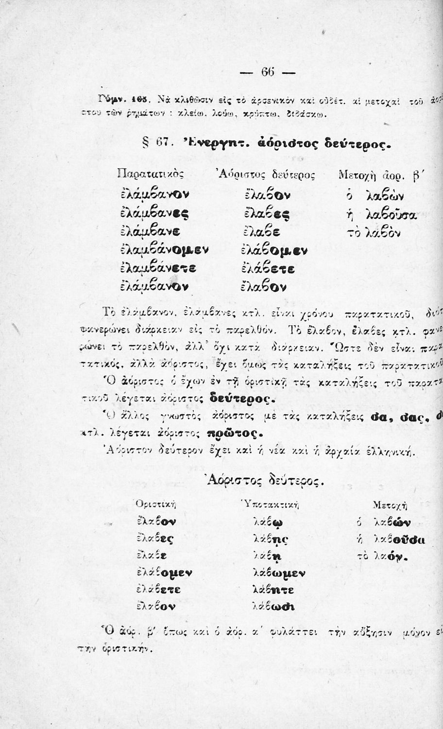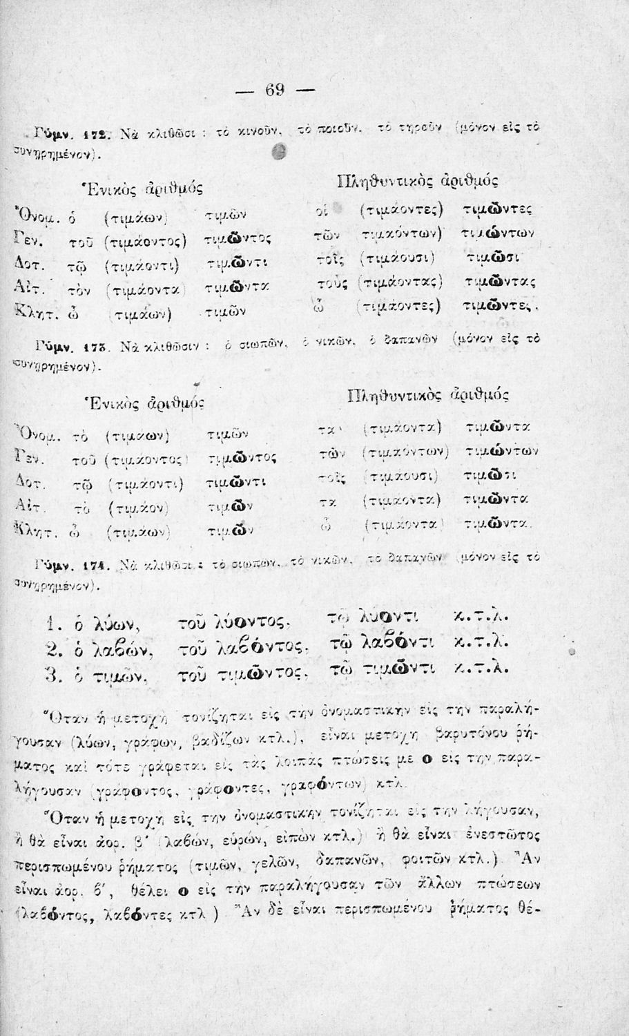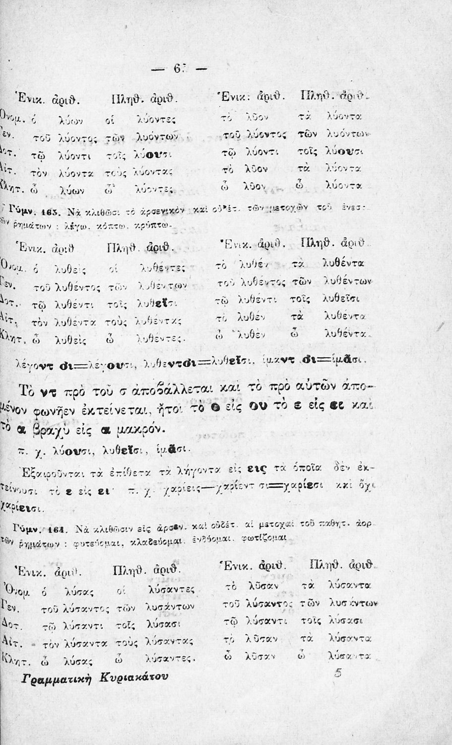 Μαθητικό βοήθημα Γλώσσας Ε΄ και ΣΤ΄ Δημοτικού που περιλαμβάνει τους γραμματικούς και συντακτικούς κανόνες της καθαρεύουσας και ασκήσεις.