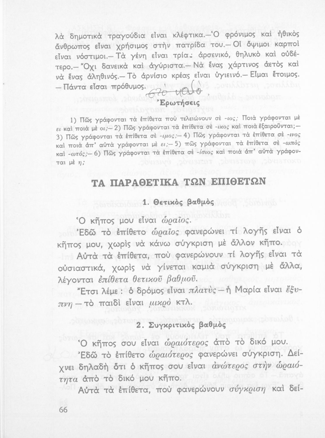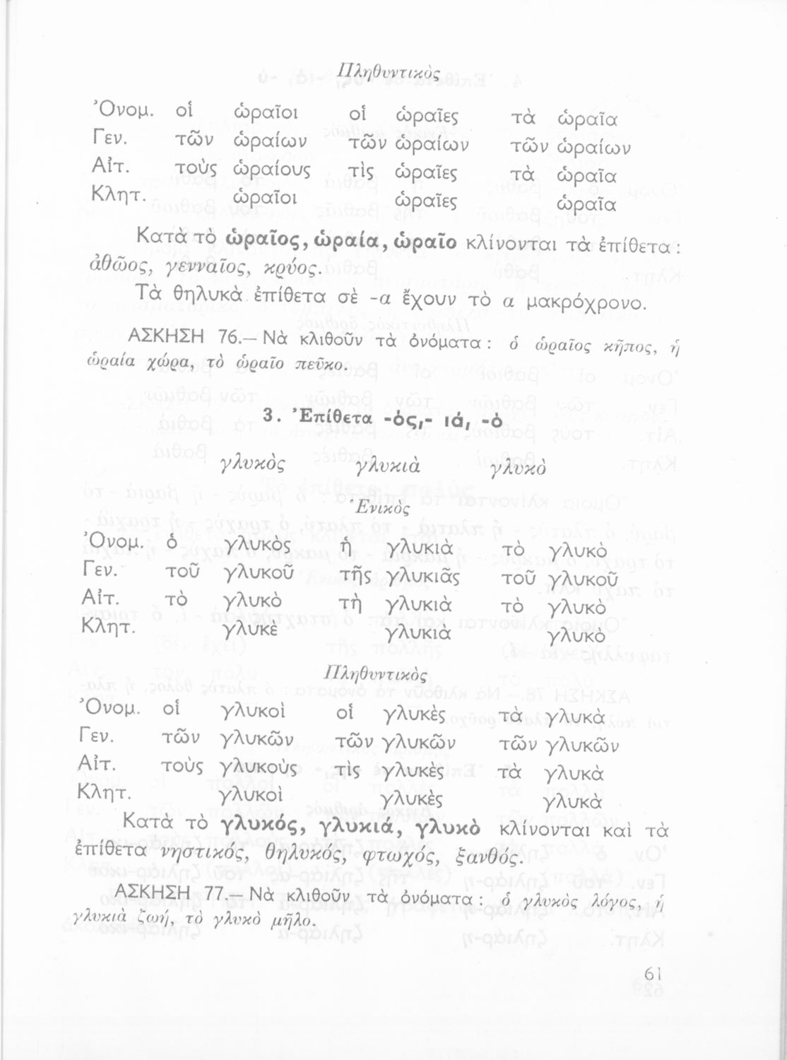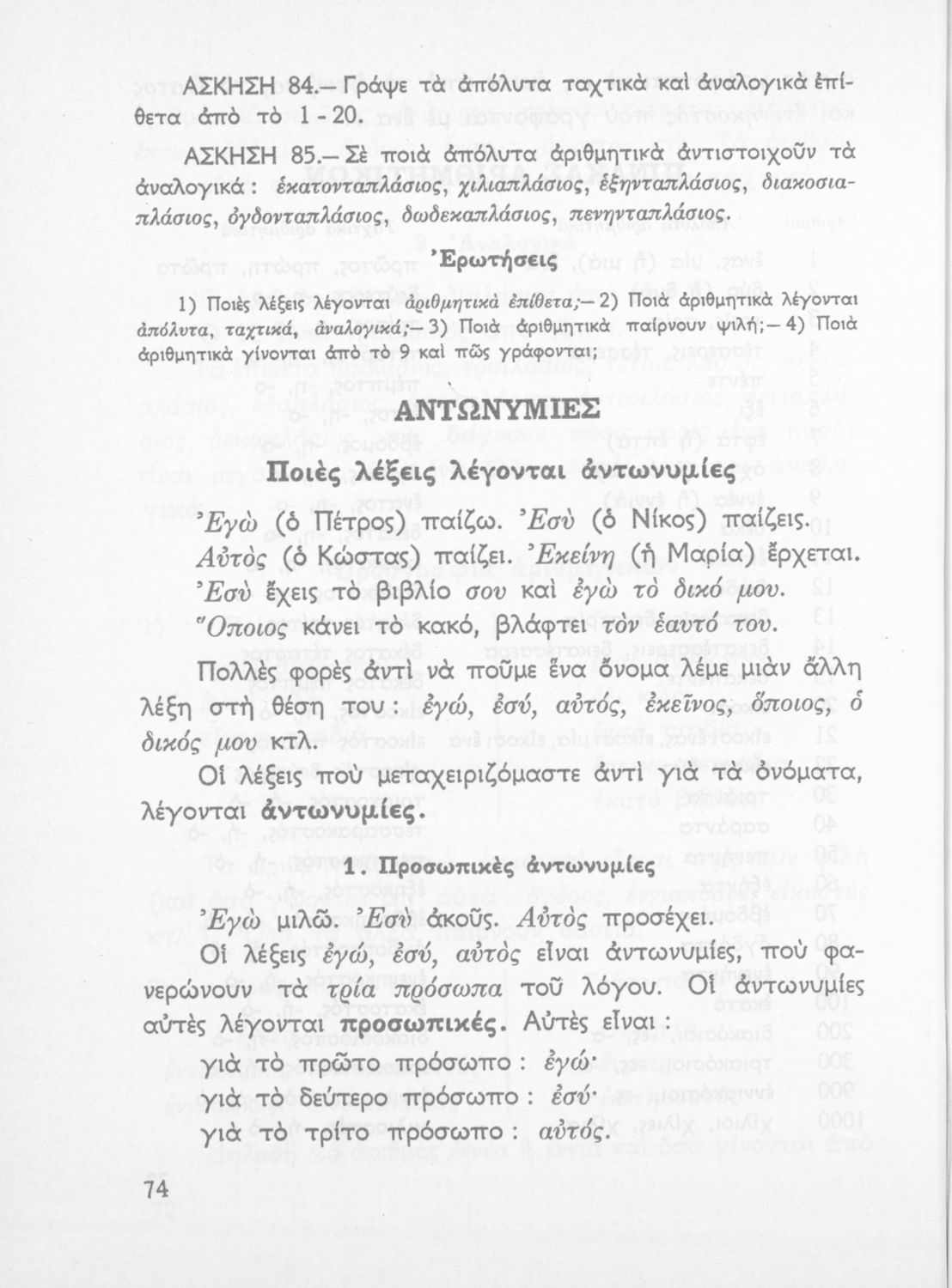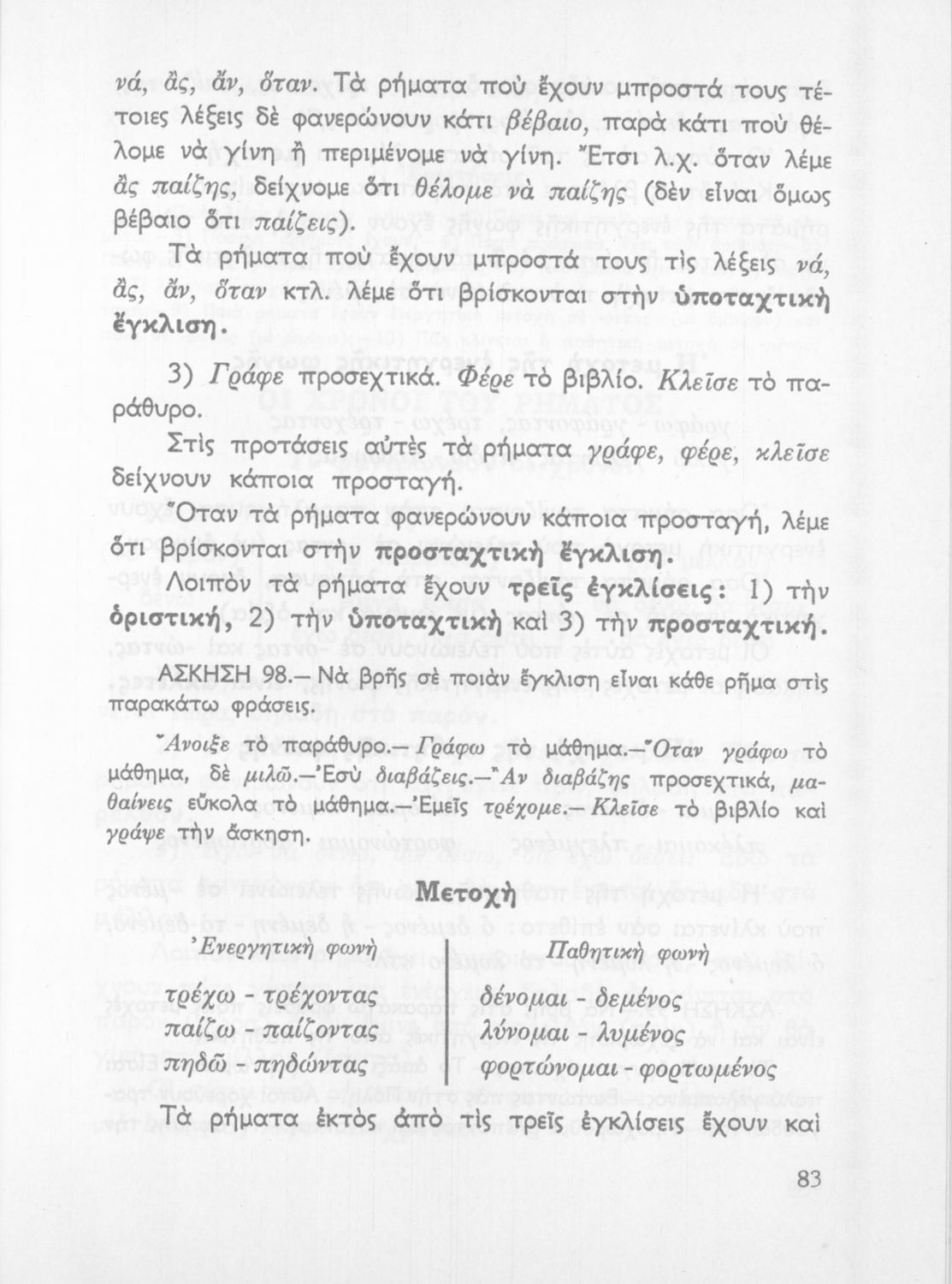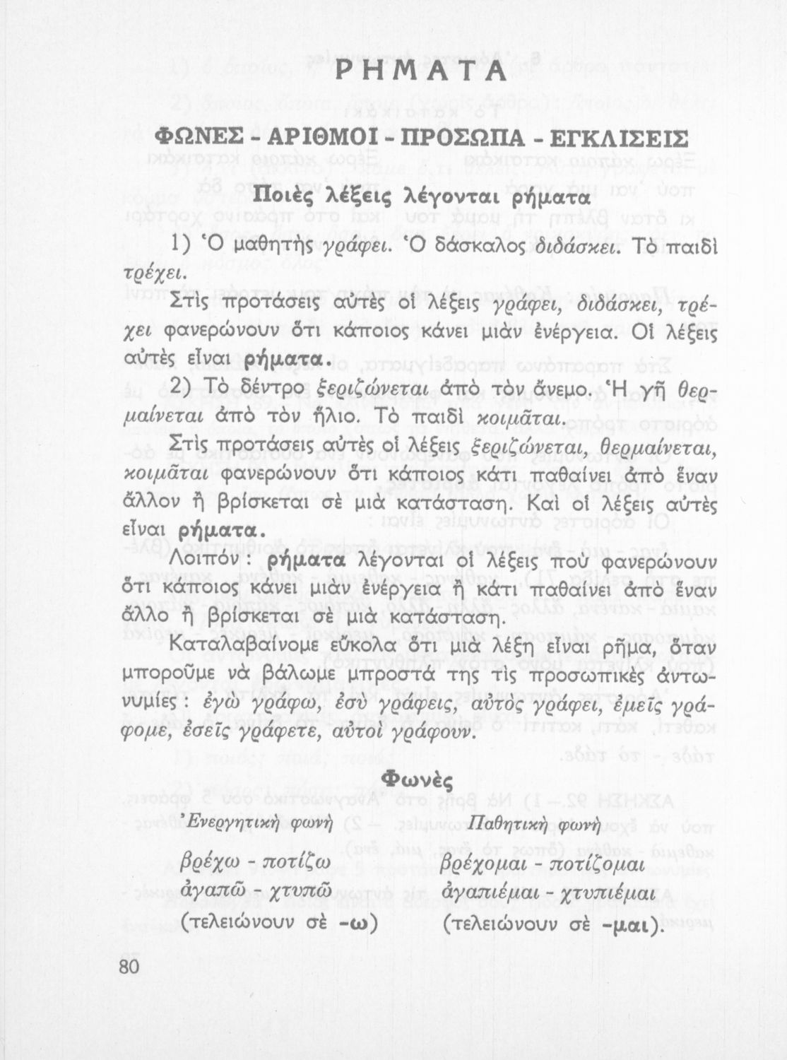 Σχολικό εγχειρίδιο Γλώσσας Γ΄ και Δ΄ Δημοτικού που περιλαμβάνει τους κανόνες γραμματικής και τη δομή της νέας ελληνικής και είναι χωρισμένο στο φωνητικό, τυπικό και παραγωγικό μέρος.