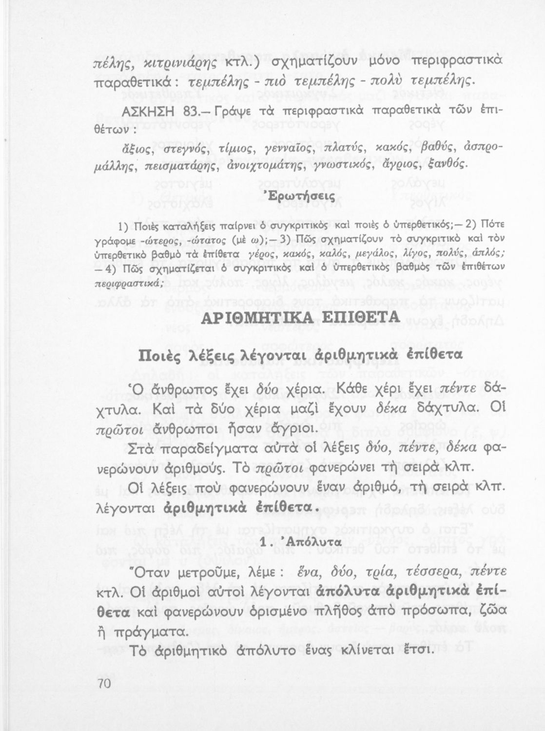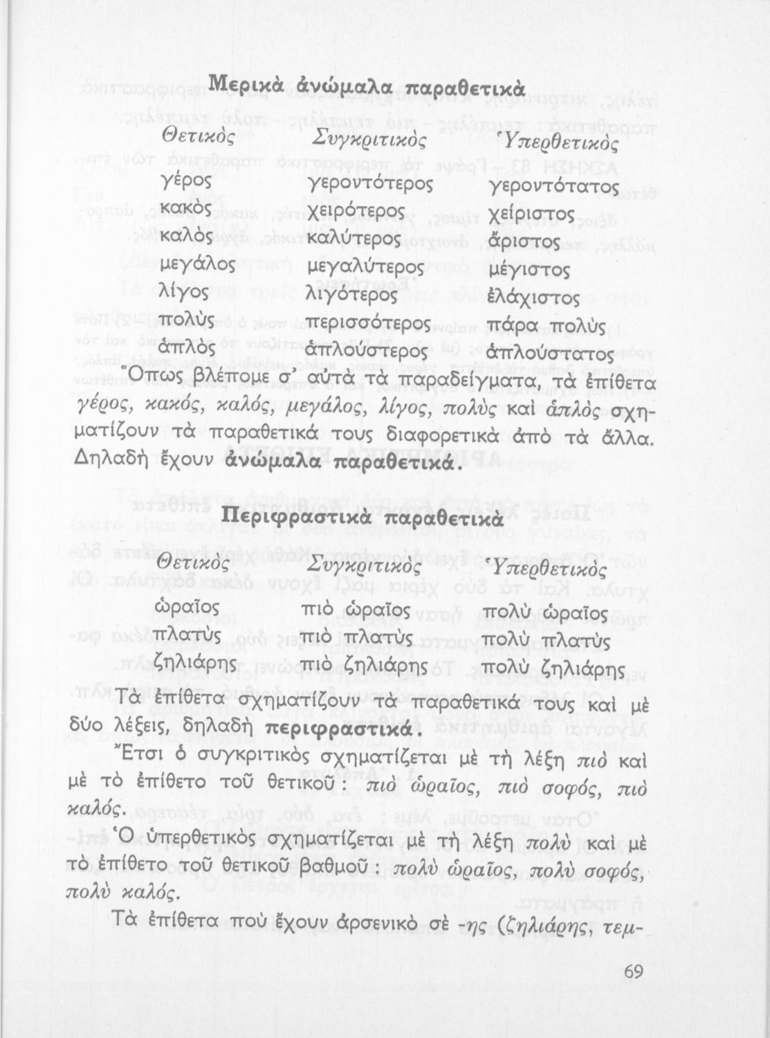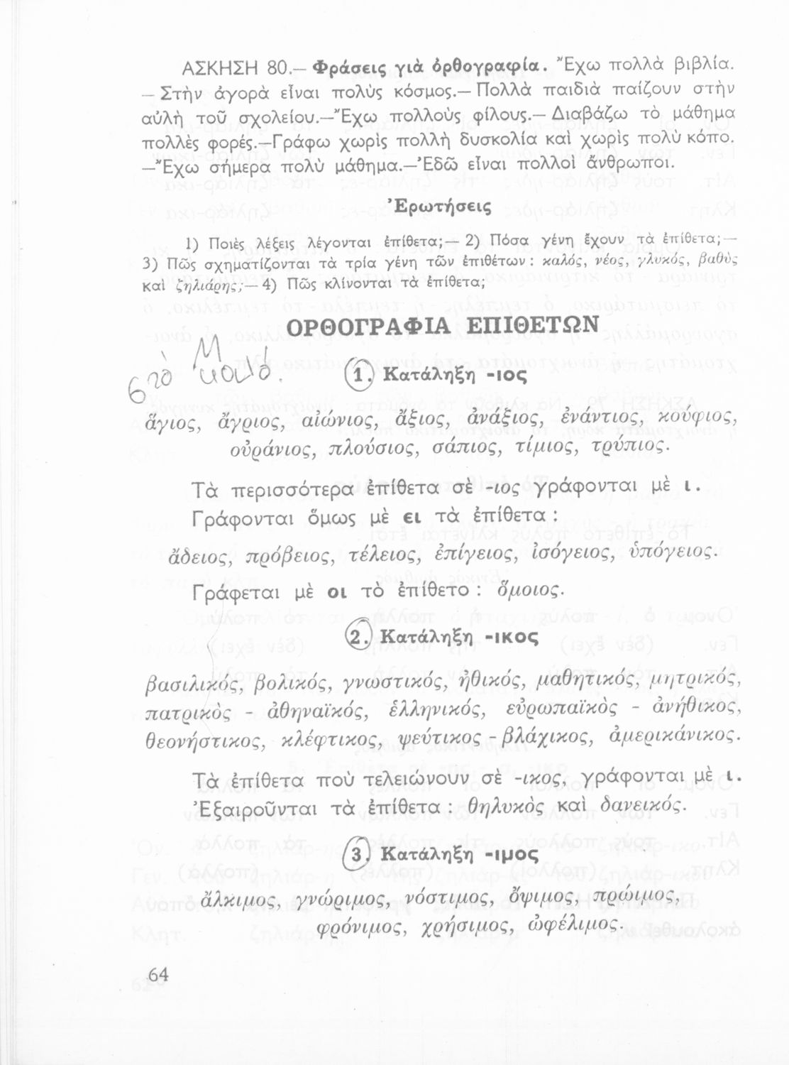 Σχολικό εγχειρίδιο Γ΄ και Δ΄ Δημοτικού που περιλαμβάνει τους κανόνες γραμματικής και τη δομή της νέας ελληνικής και είναι χωρισμένο στο φωνητικό, τυπικό και παραγωγικό μέρος.