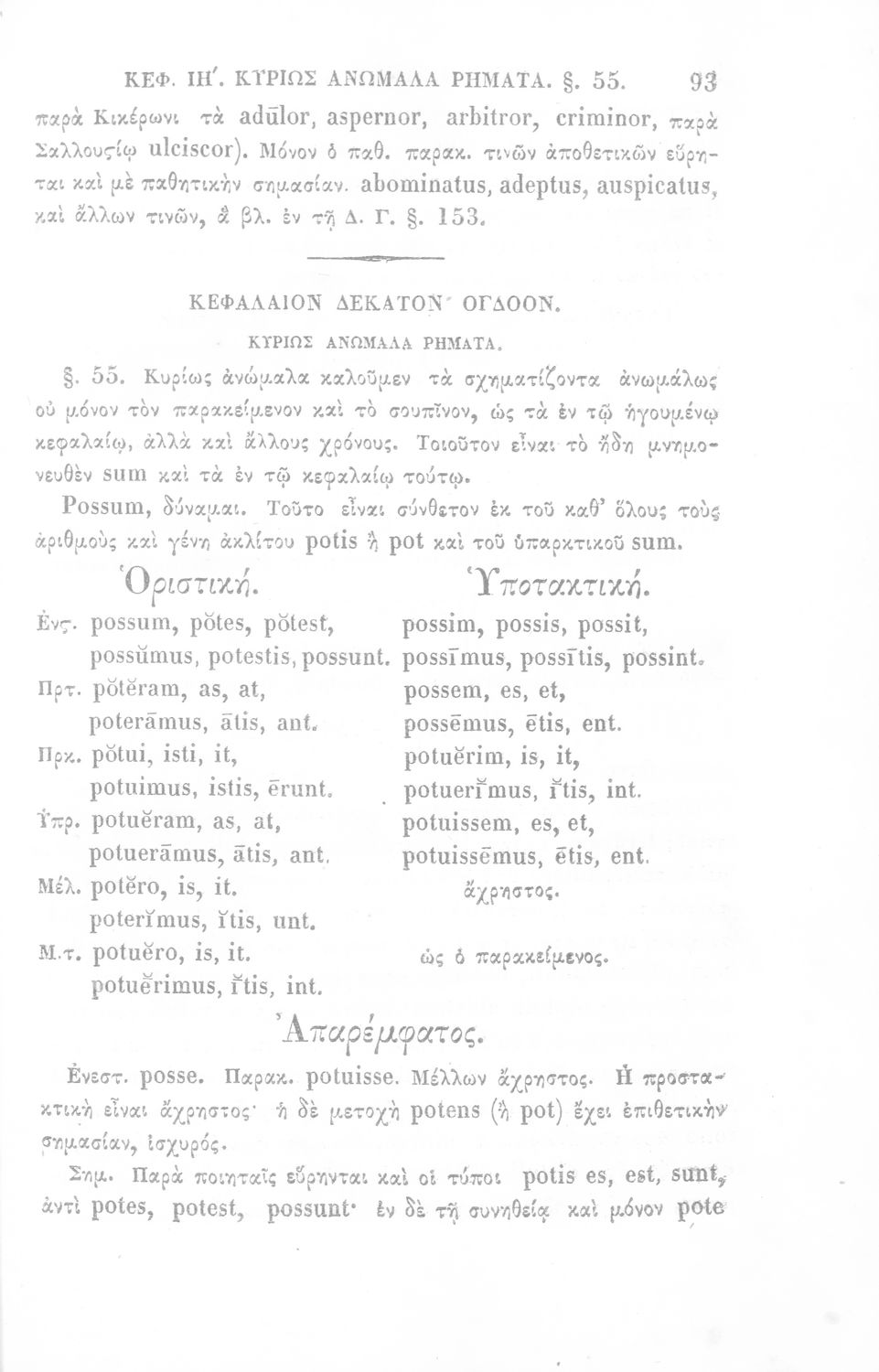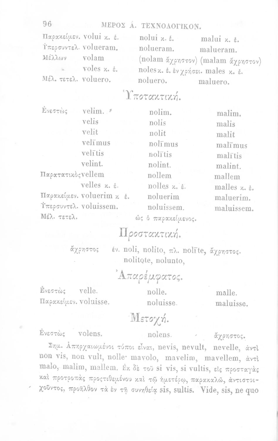 Μαθητικό βοήθημα Αρχαίων Ελληνικών για τα Ελληνικά Σχολεία, Παρθεναγωγεία και Γυμνάσια που περιλαμβάνει γραμματική της αρχαίας ελληνικής και κατάλογο ανωμάλων ρημάτων.