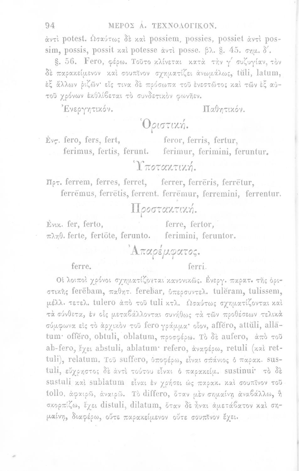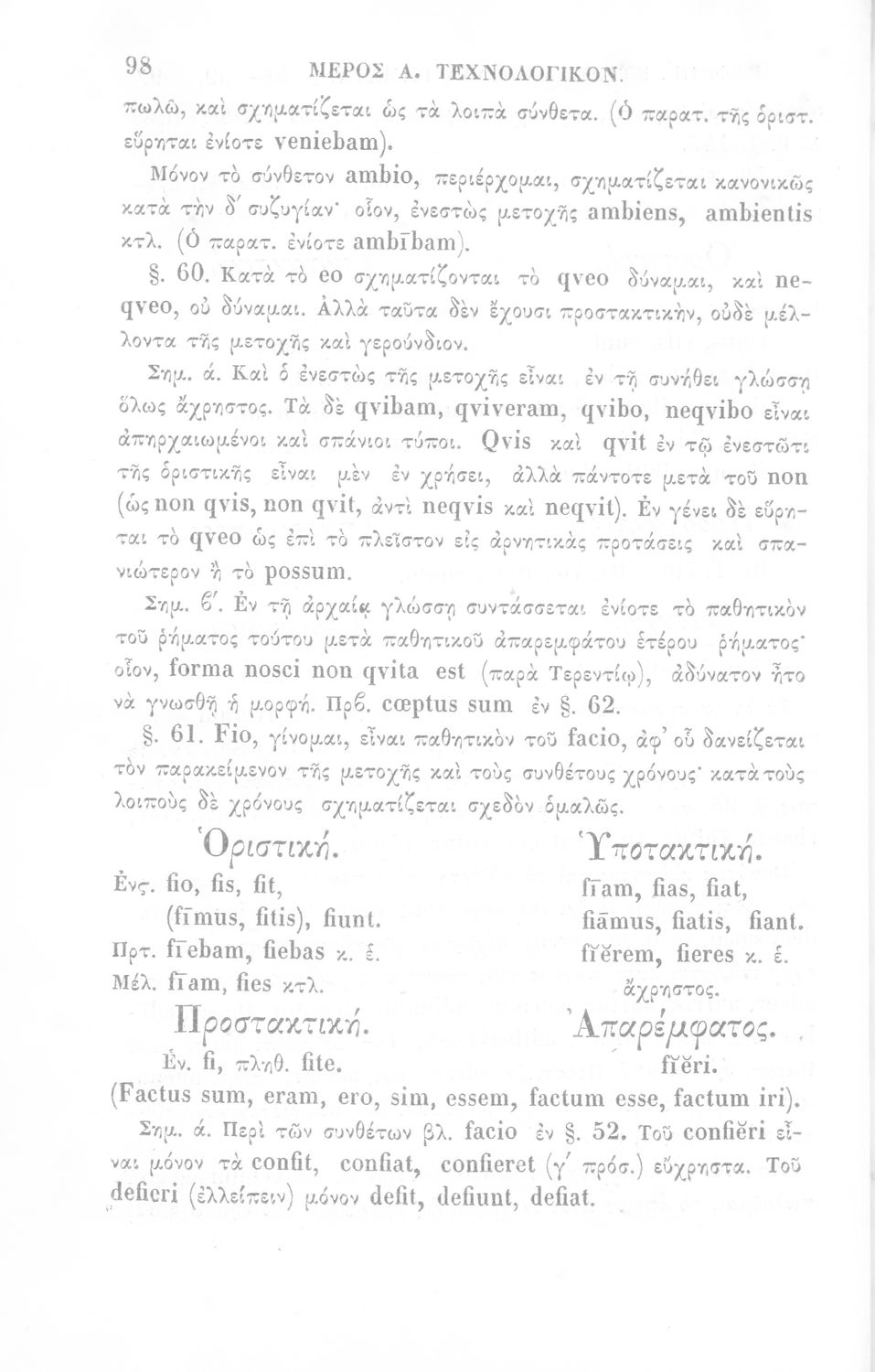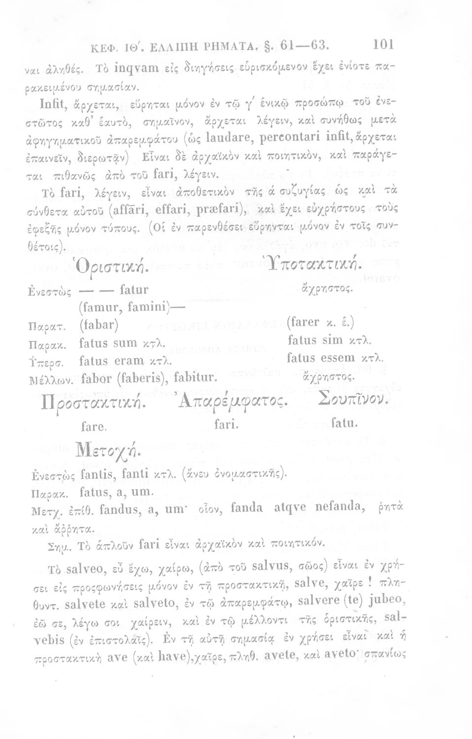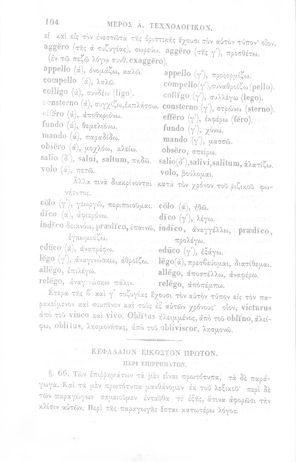 Σχολικό εγχειρίδιο Αρχαίων Ελληνικών για τα Ελληνικά Σχολεία, Παρθεναγωγεία και Γυμνάσια που περιέχει τους κανόνες γραμματικής και είναι χωρισμένο σε φθογγολογικό, τυπολογικό και ετυμολογικό μέρος.