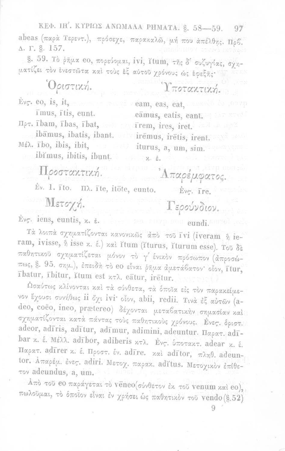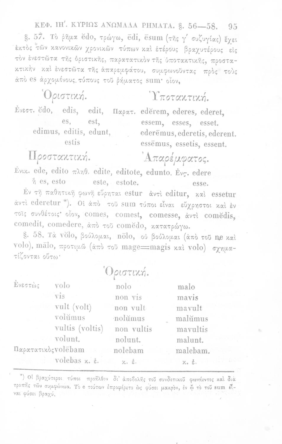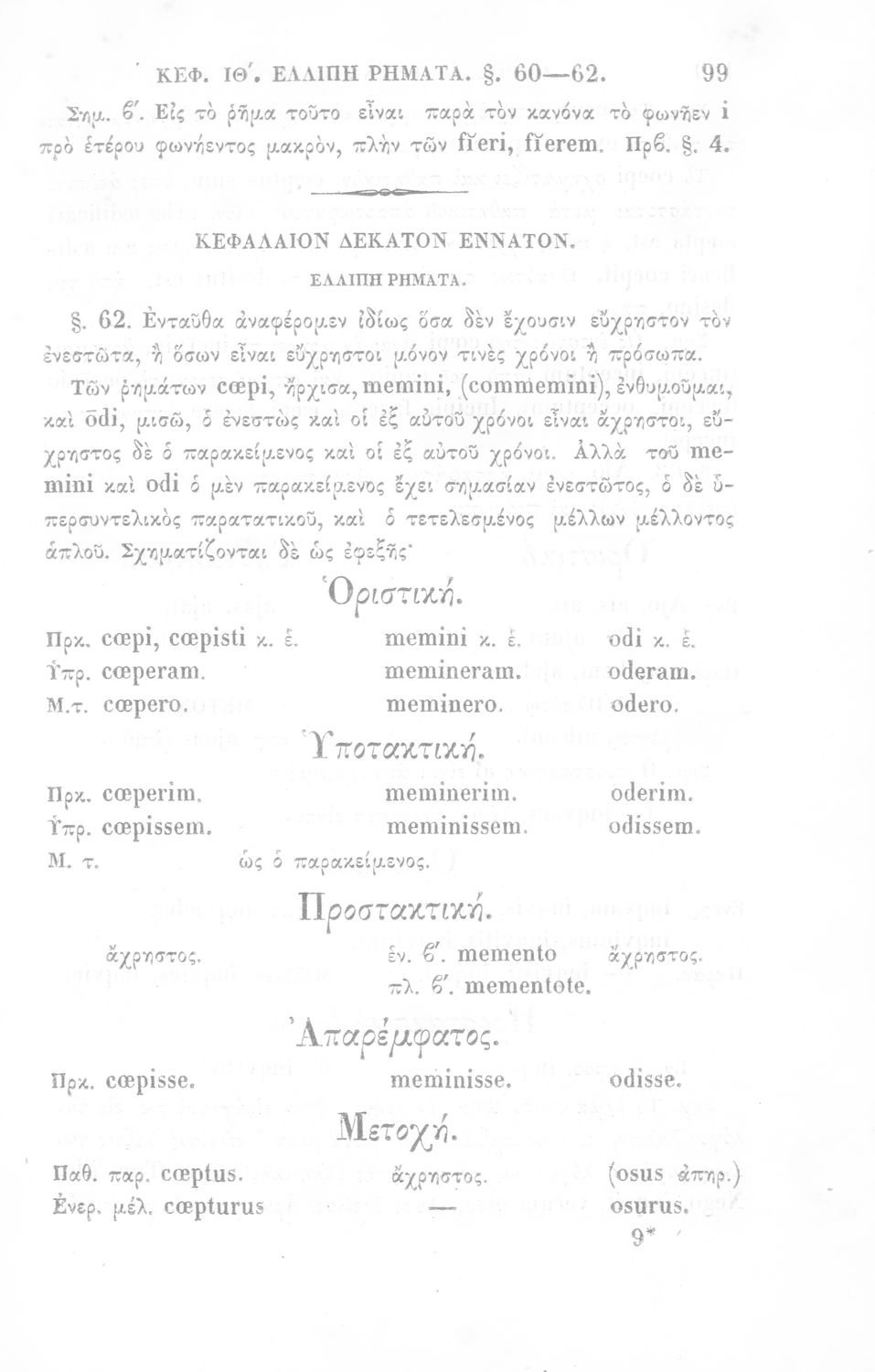 Σχολικό εγχειρίδιο Αρχαίων Ελληνικών για τα Ελληνικά Σχολεία, Γυμνάσια και Παρθεναγωγεία που περιλαμβάνει γραμματική και συντακτικό της αρχαίας ελληνικής και κατάλογο ανωμάλων ρημάτων.