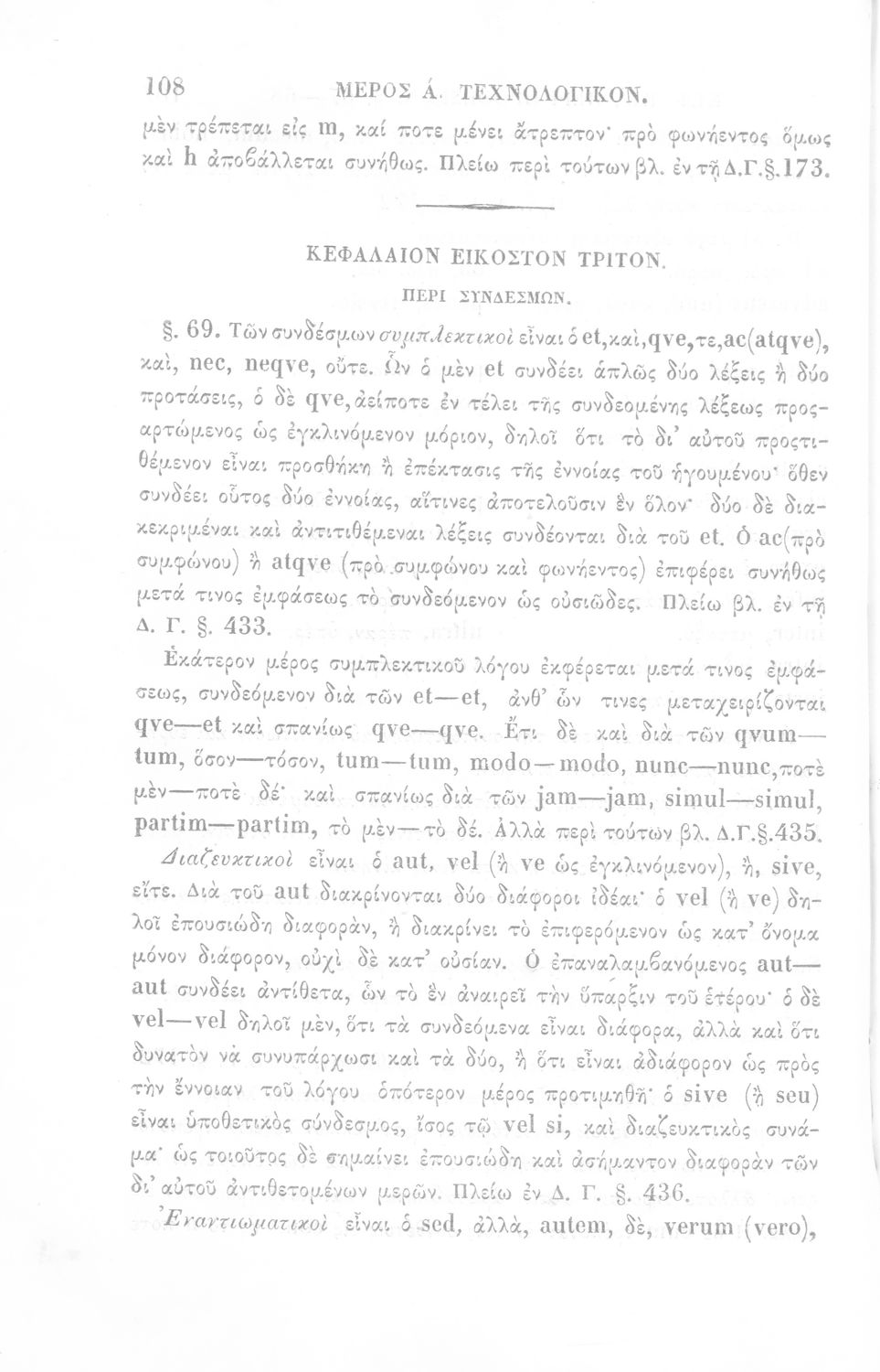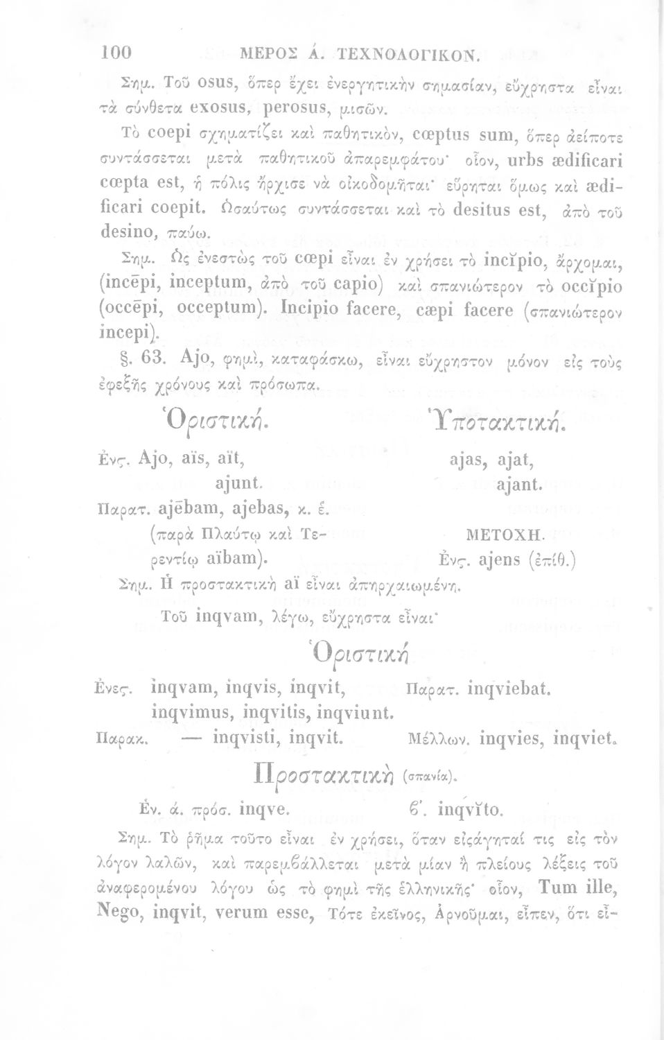 Γραμματικής της λατινικής γλώσσας για τα Ελληνικά Σχολεία και Γυμνάσια που περιέχει δύο τμήματα: το τεχνολογικό που εστιάζει στα μέρη του λόγου και το συντακτικό που ασχολείται με τις πτώσεις, τις εγκλίσεις, ...
