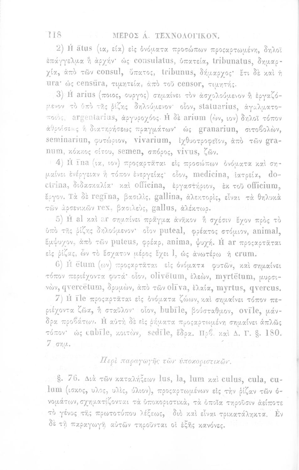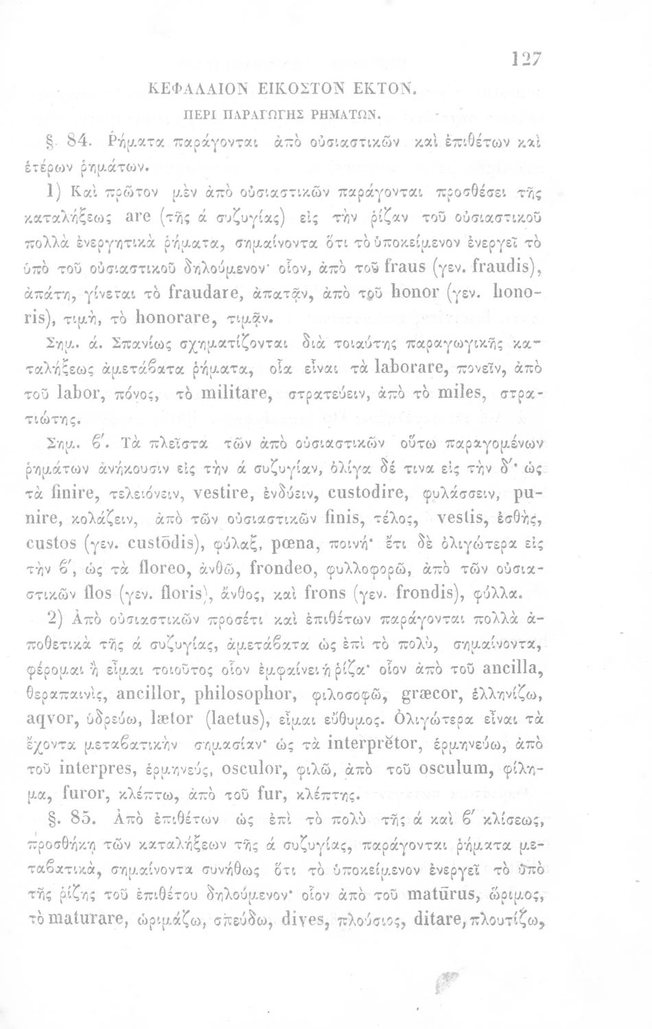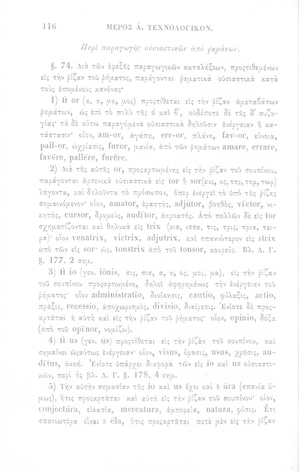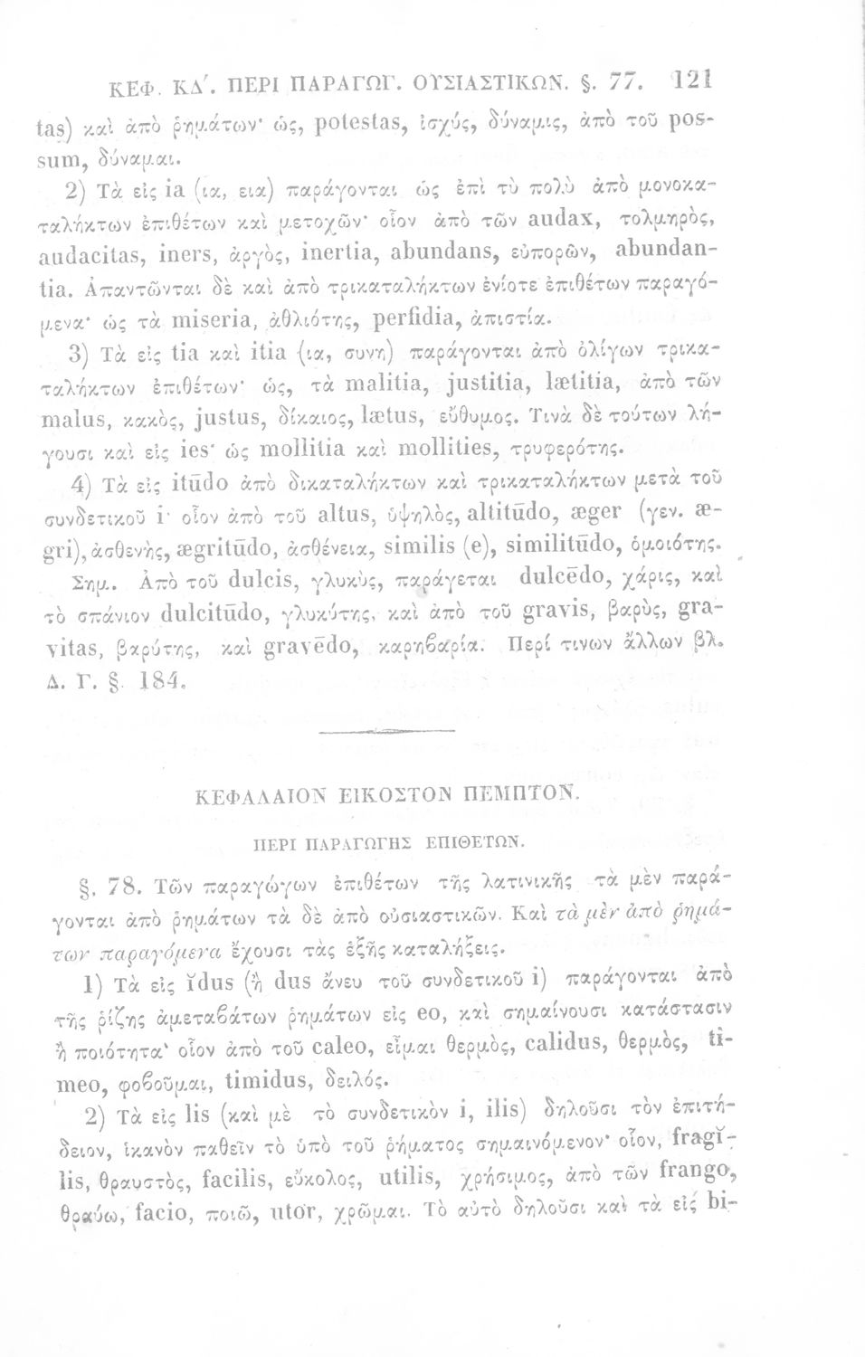 Γραμματικής της λατινικής γλώσσας για τα Ελληνικά Σχολεία και Γυμνάσια που περιέχει δύο τμήματα: το τεχνολογικό που εστιάζει στα μέρη του λόγου και το συντακτικό που ασχολείται με τις πτώσεις, τις εγκλίσεις, ...
