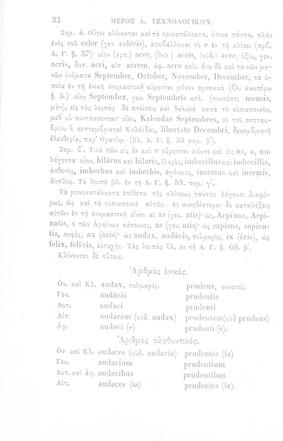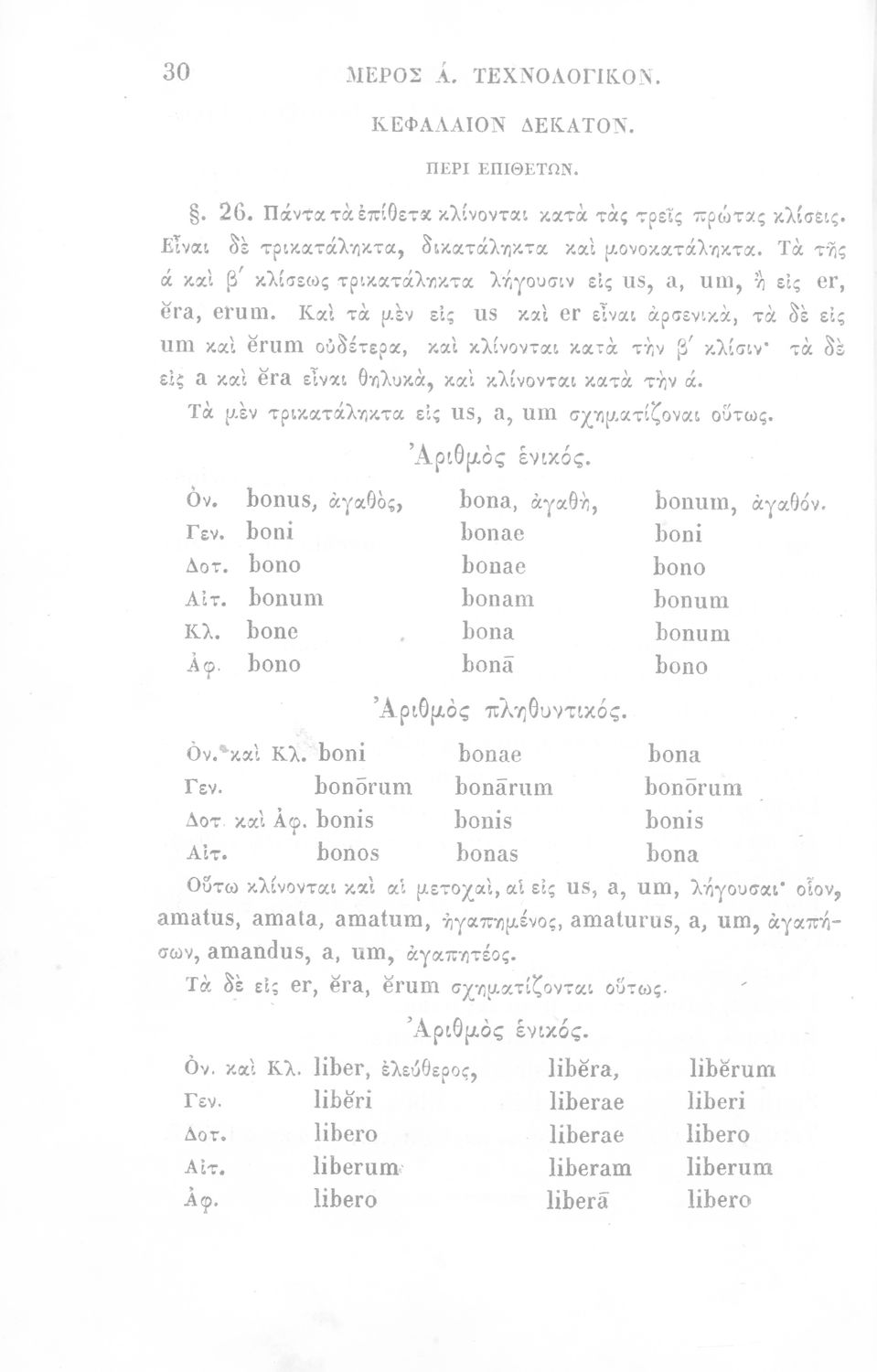 Σχολικό εγχειρίδιο Αρχαίων Ελληνικών για τα Ελληνικά Σχολεία, Παρθεναγωγεία και Γυμνάσια που περιέχει τους κανόνες γραμματικής και είναι χωρισμένο σε φθογγολογικό, τυπολογικό και ετυμολογικό μέρος.