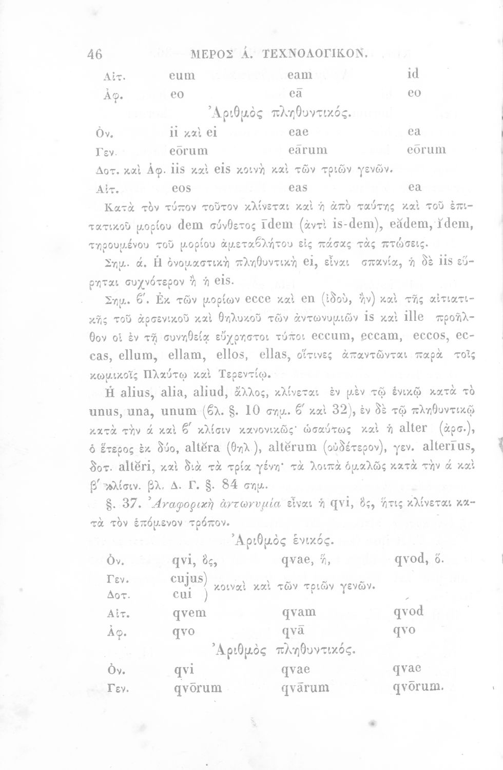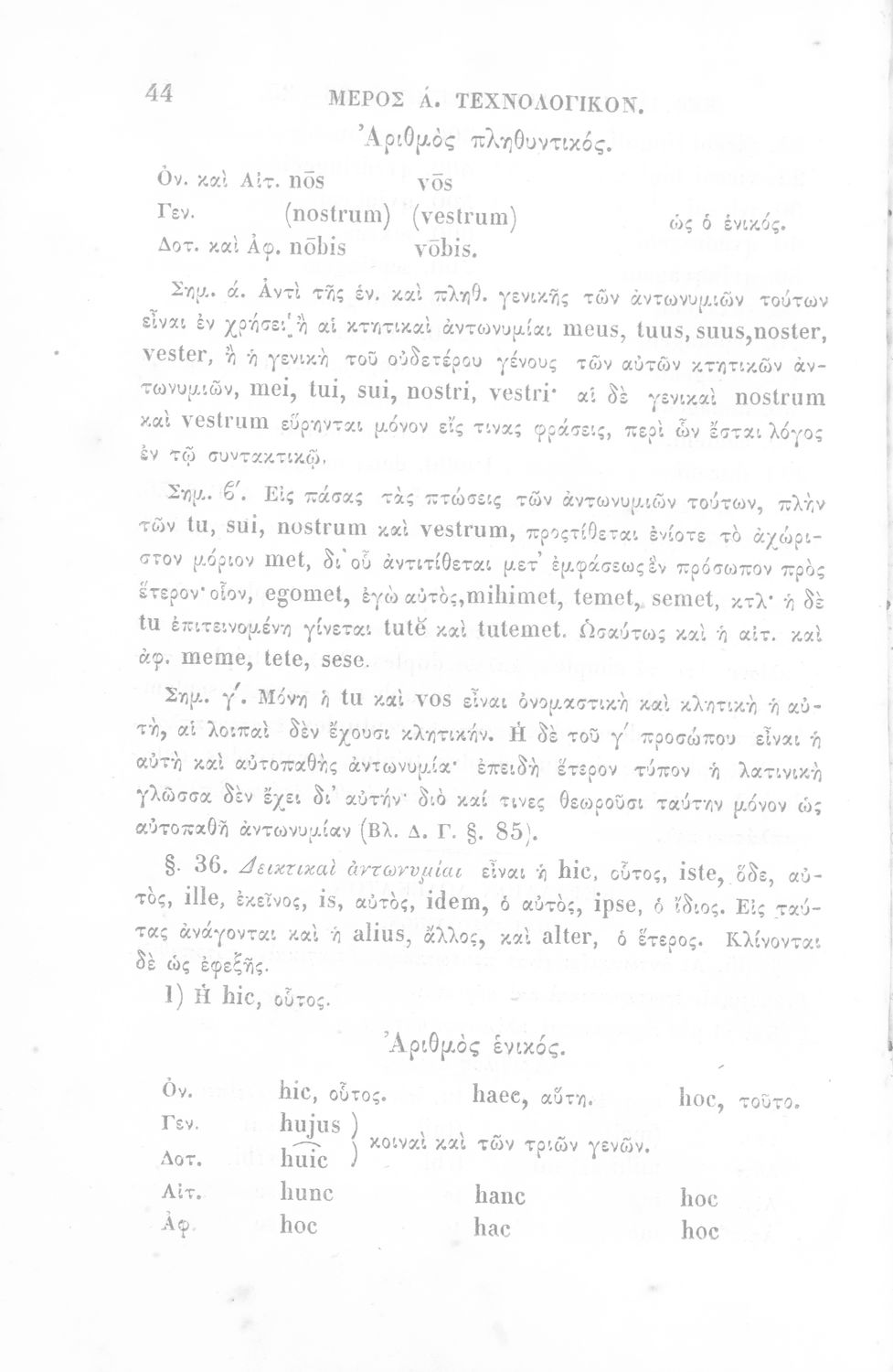 Γραμματικής της λατινικής γλώσσας για τα Ελληνικά Σχολεία και Γυμνάσια που περιέχει δύο τμήματα: το τεχνολογικό που εστιάζει στα μέρη του λόγου και το συντακτικό που ασχολείται με τις πτώσεις, τις εγκλίσεις, ...