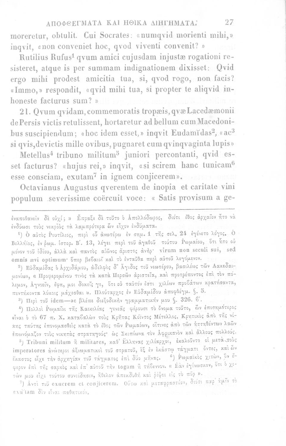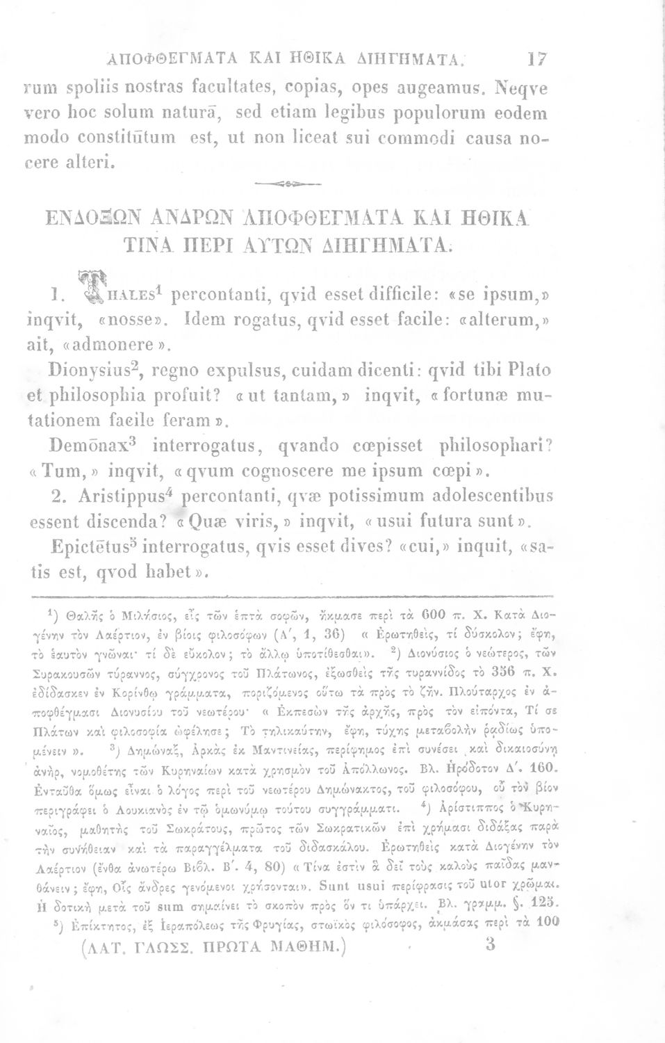 Σχολικό εγχειρίδιο Λατινικών που περιλαμβάνει κείμενα, ερμηνευτικές σημειώσεις και λεξιλόγιο.