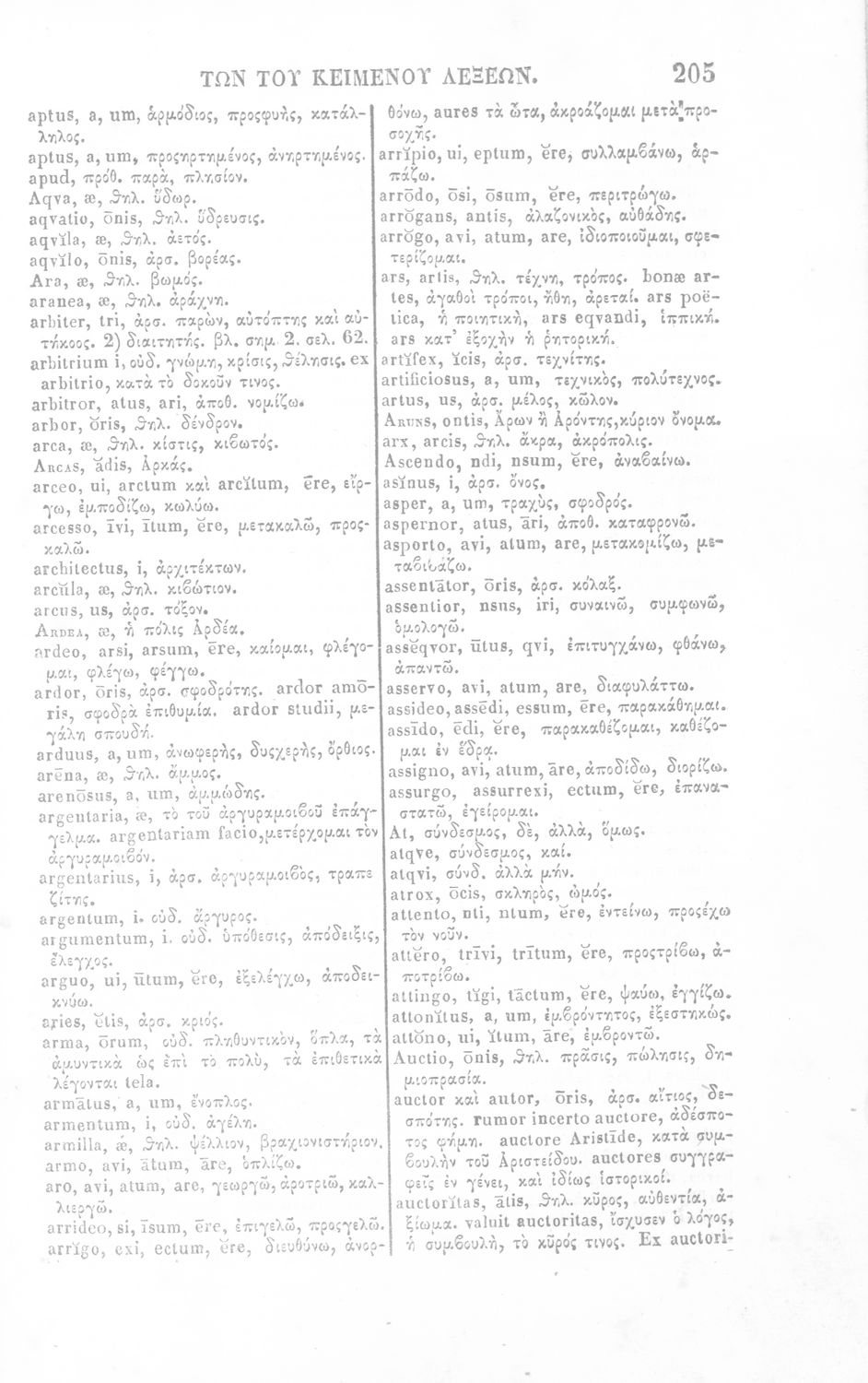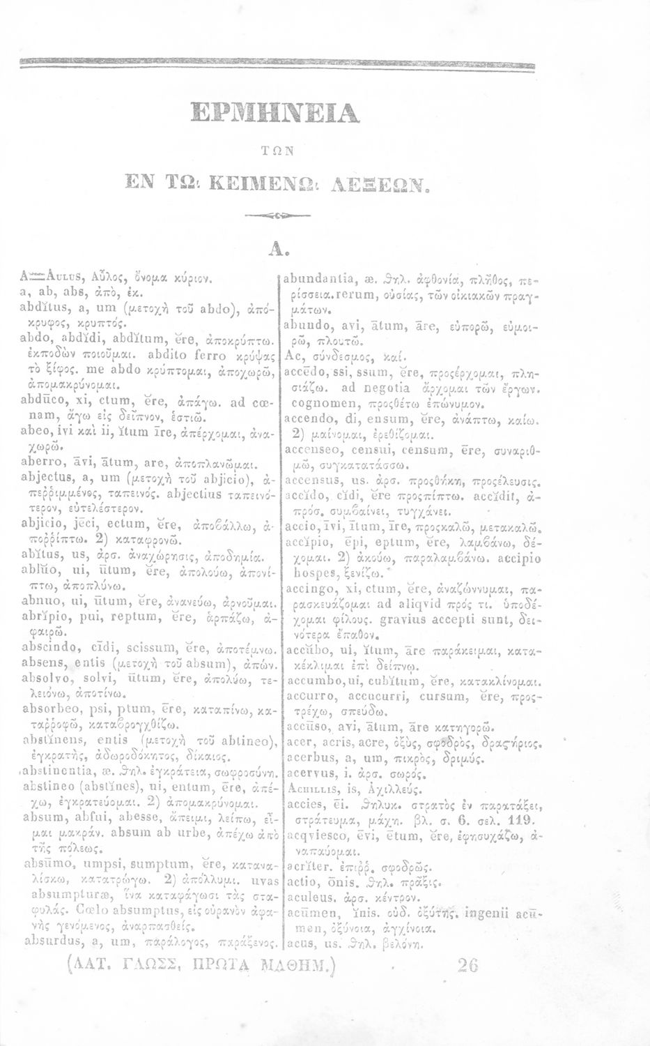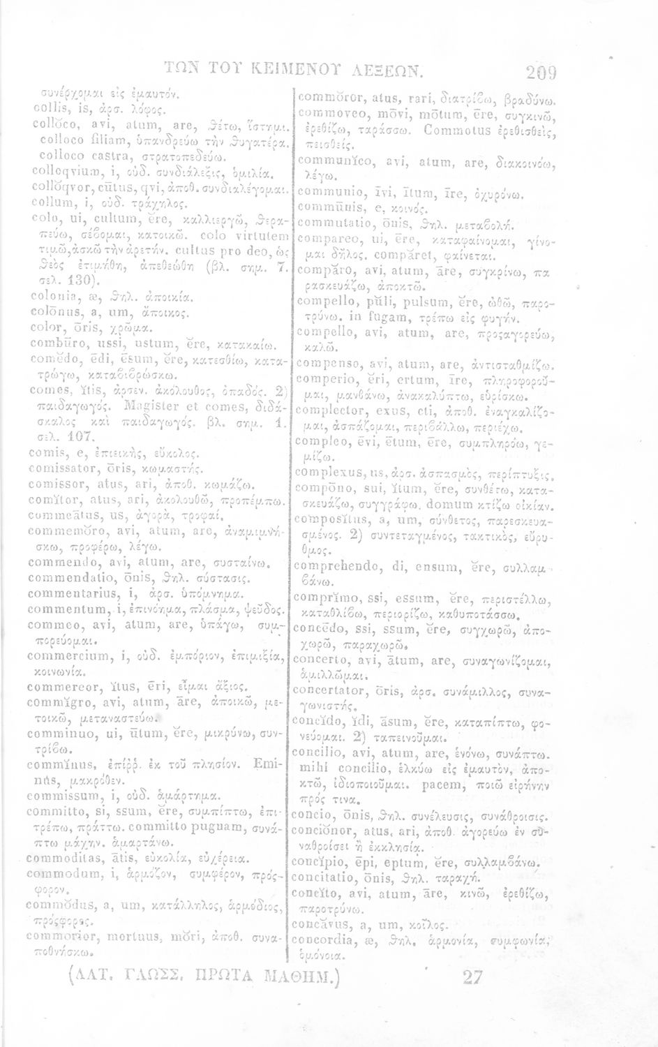 Σχολικό εγχειρίδιο Λατινικών Γυμνασίου που περιλαμβάνει γραμματική και συντακτικό και είναι χωρισμένο σε φθογγολογικό, τυπολογικό και ετυμολογικό μέρος.