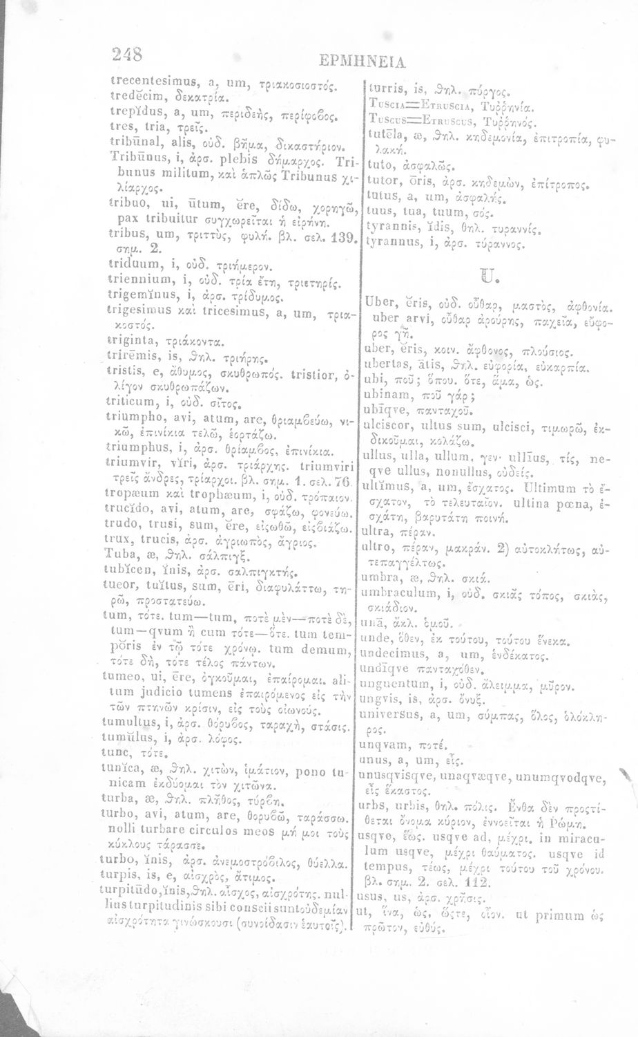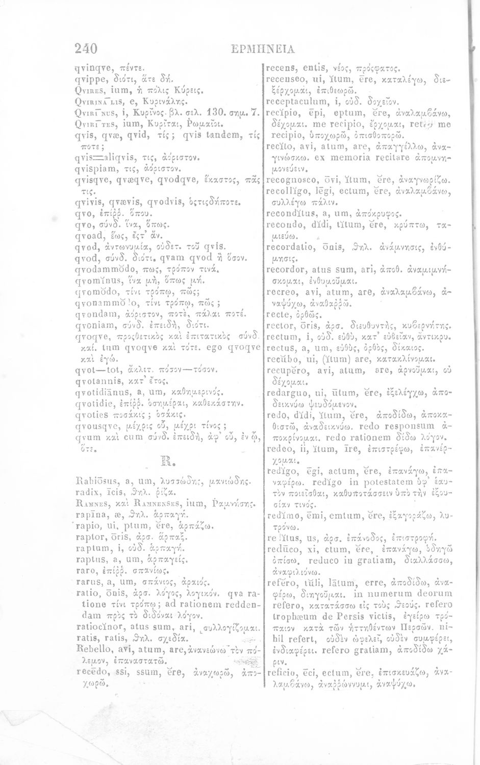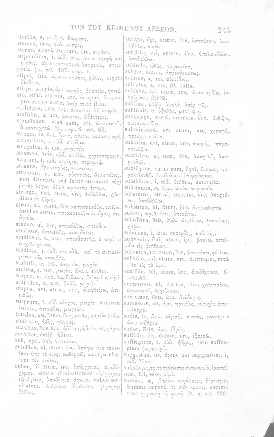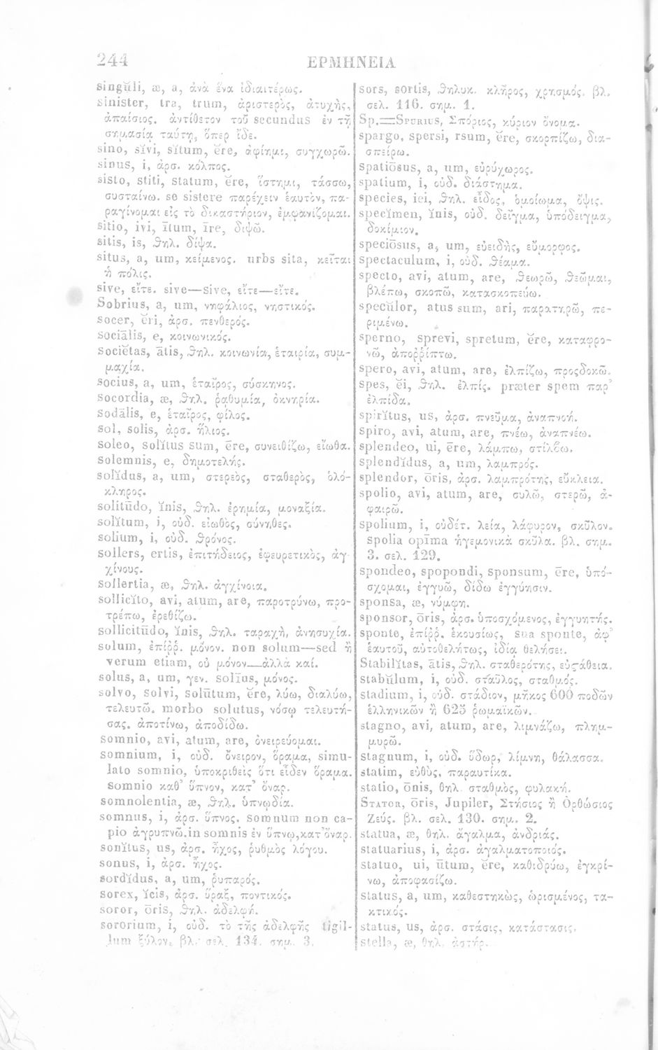 Σχολικό εγχειρίδιο Λατινικών Γυμνασίου που περιλαμβάνει γραμματική και συντακτικό και είναι χωρισμένο σε φθογγολογικό, τυπολογικό και ετυμολογικό μέρος.