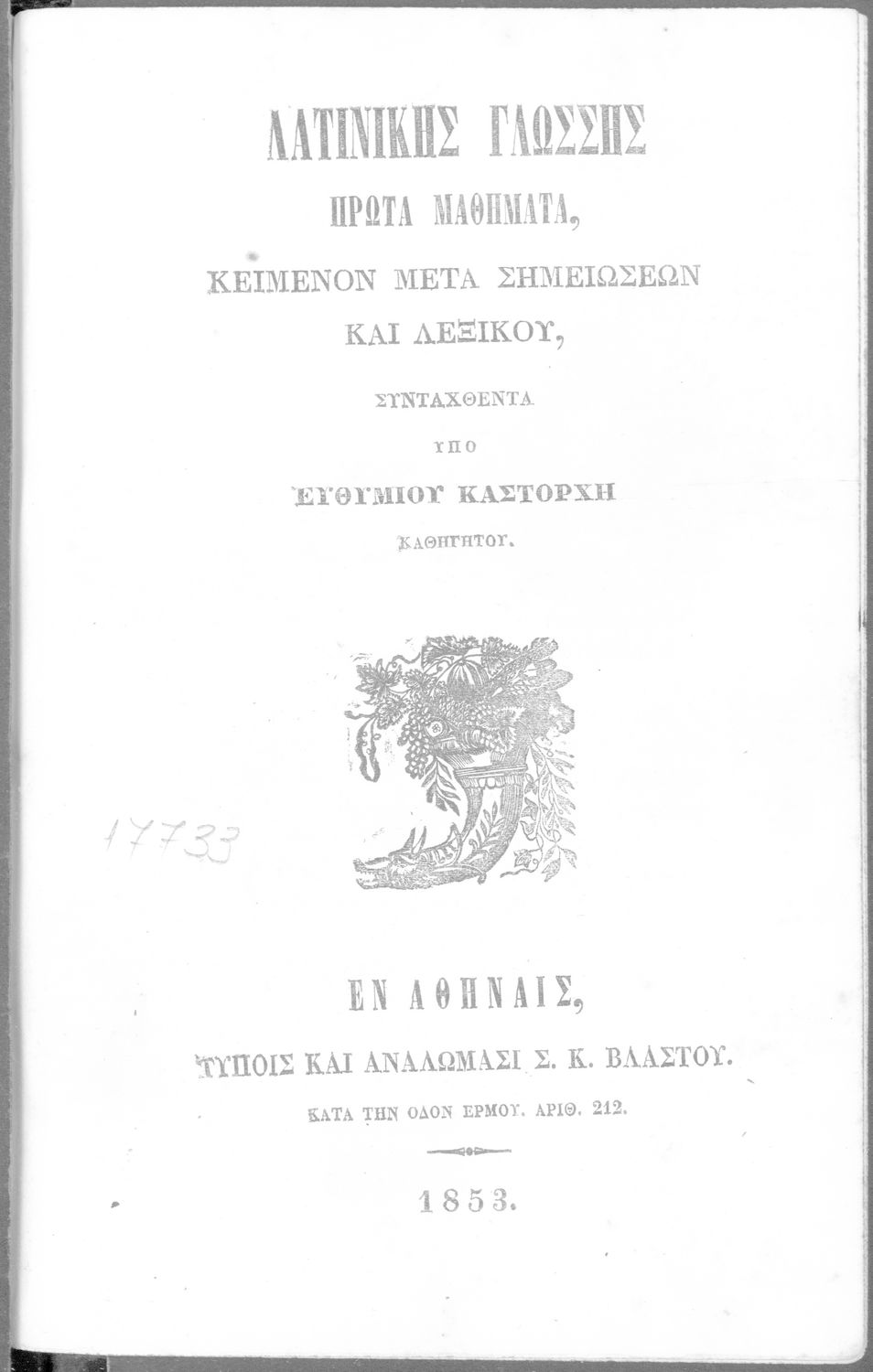 Τίτλος: Λατινικής γλώσσης πρώτα μαθήματα