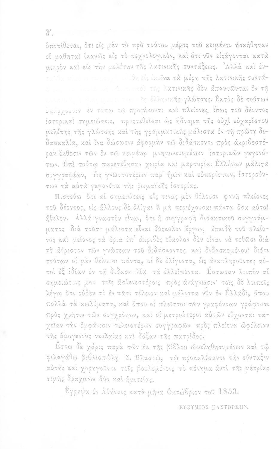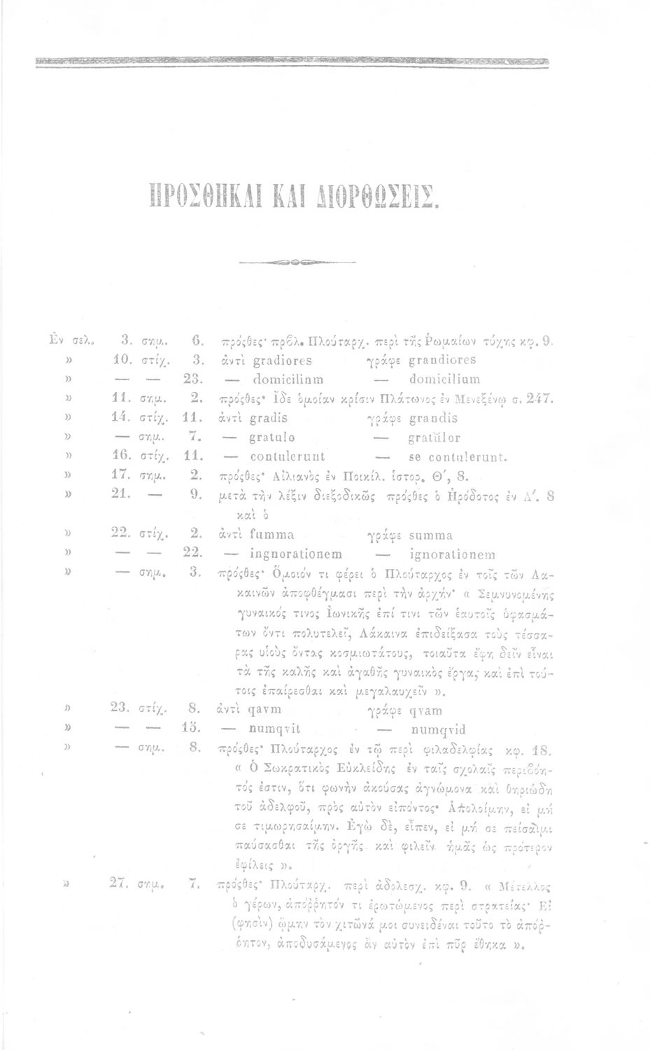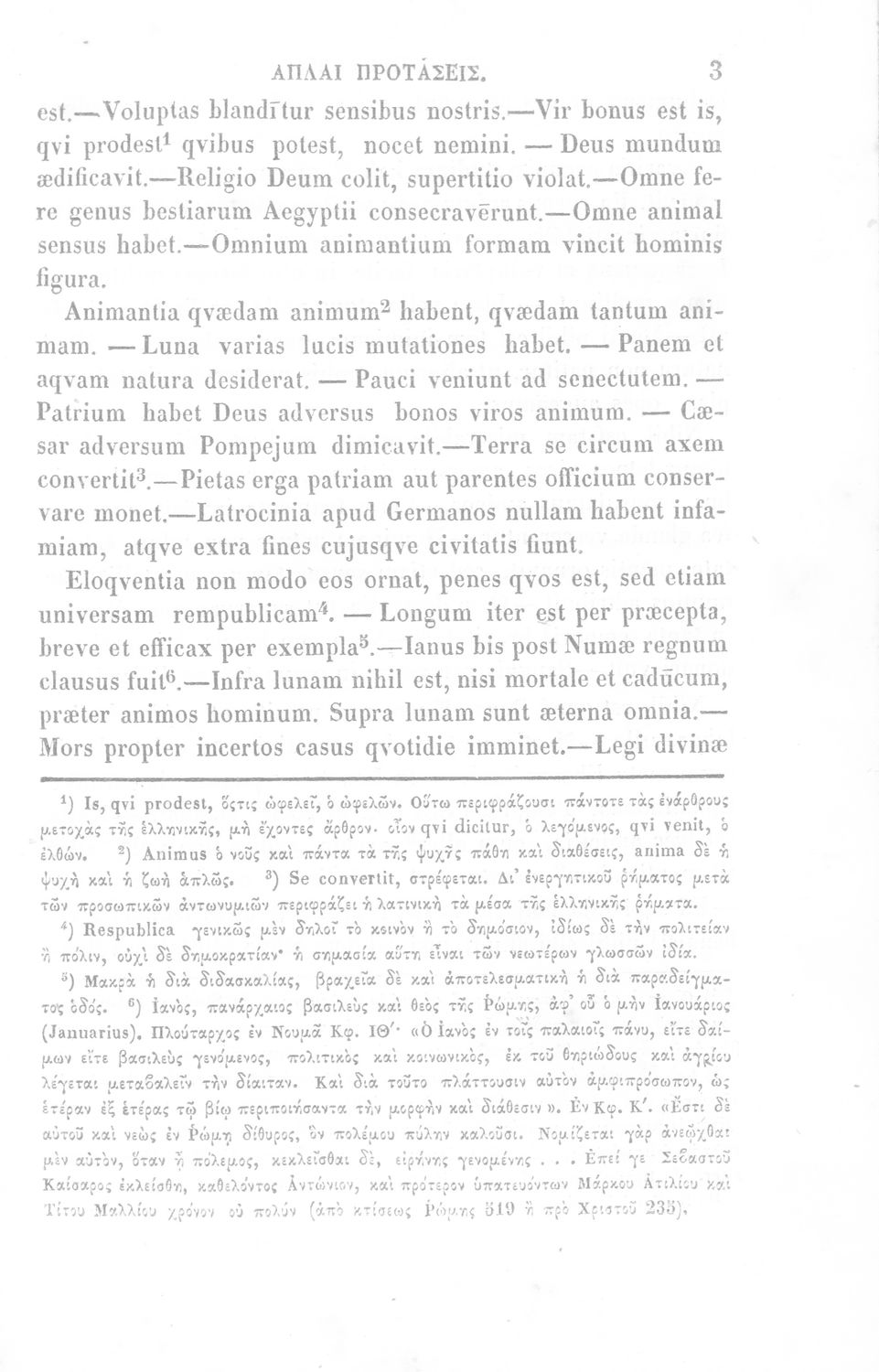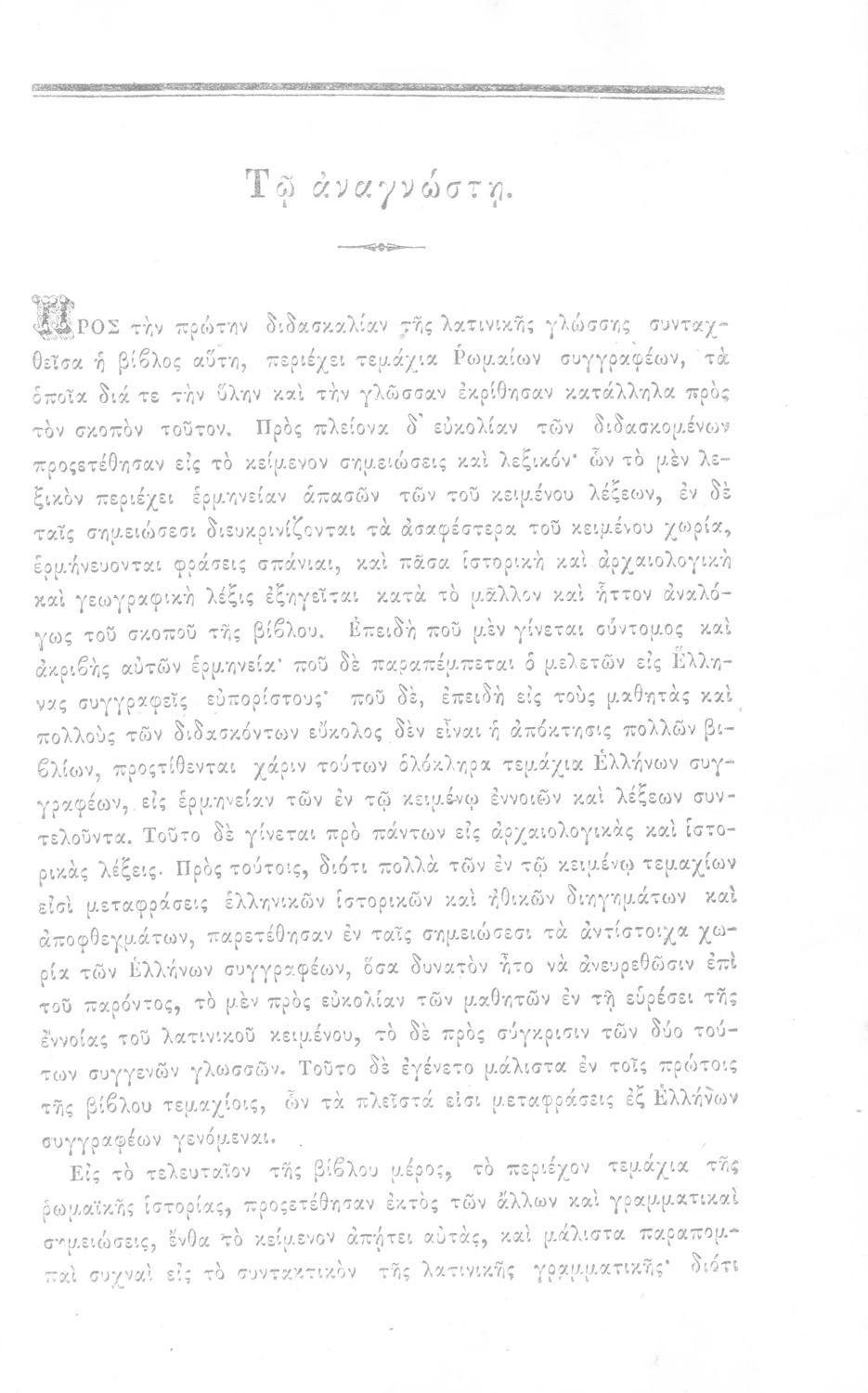Σχολικό εγχειρίδιο Λατινικών Γυμνασίου που περιλαμβάνει γραμματική και συντακτικό και είναι χωρισμένο σε φθογγολογικό, τυπολογικό και ετυμολογικό μέρος.