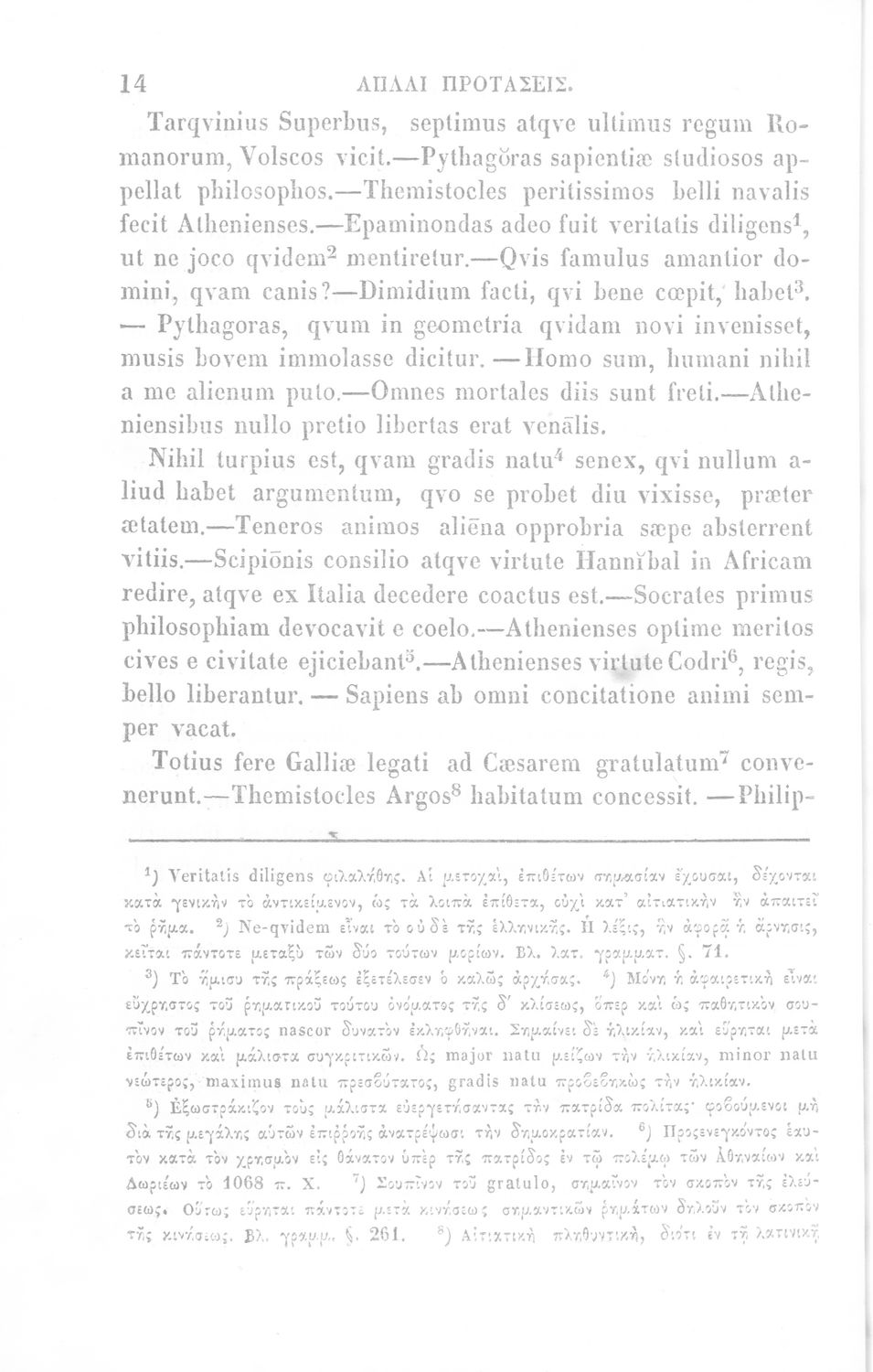 Σχολικό εγχειρίδιο Λατινικών που περιλαμβάνει κείμενα, ερμηνευτικές σημειώσεις και λεξιλόγιο.