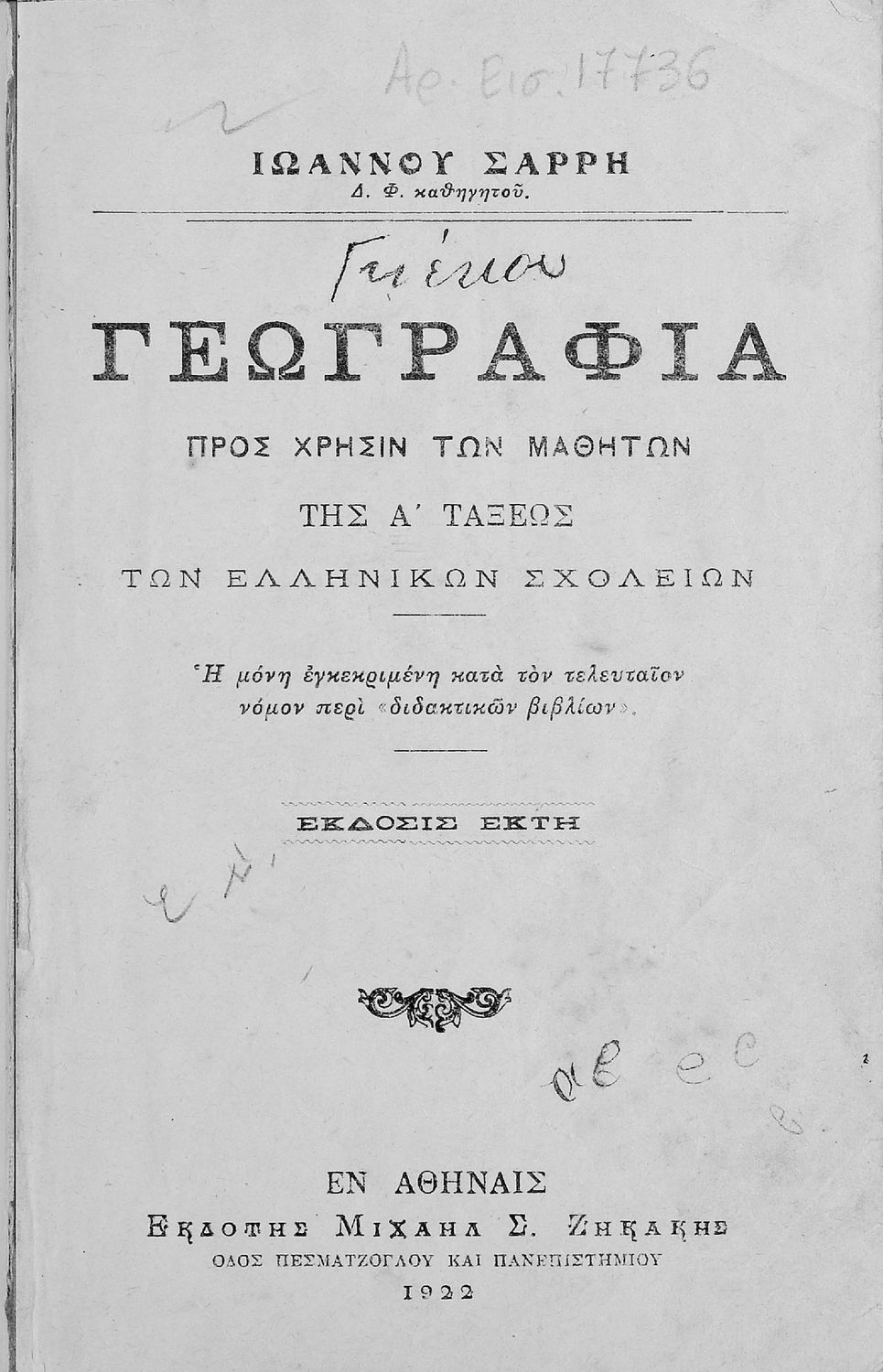 [1922, 6η Έκδοση]