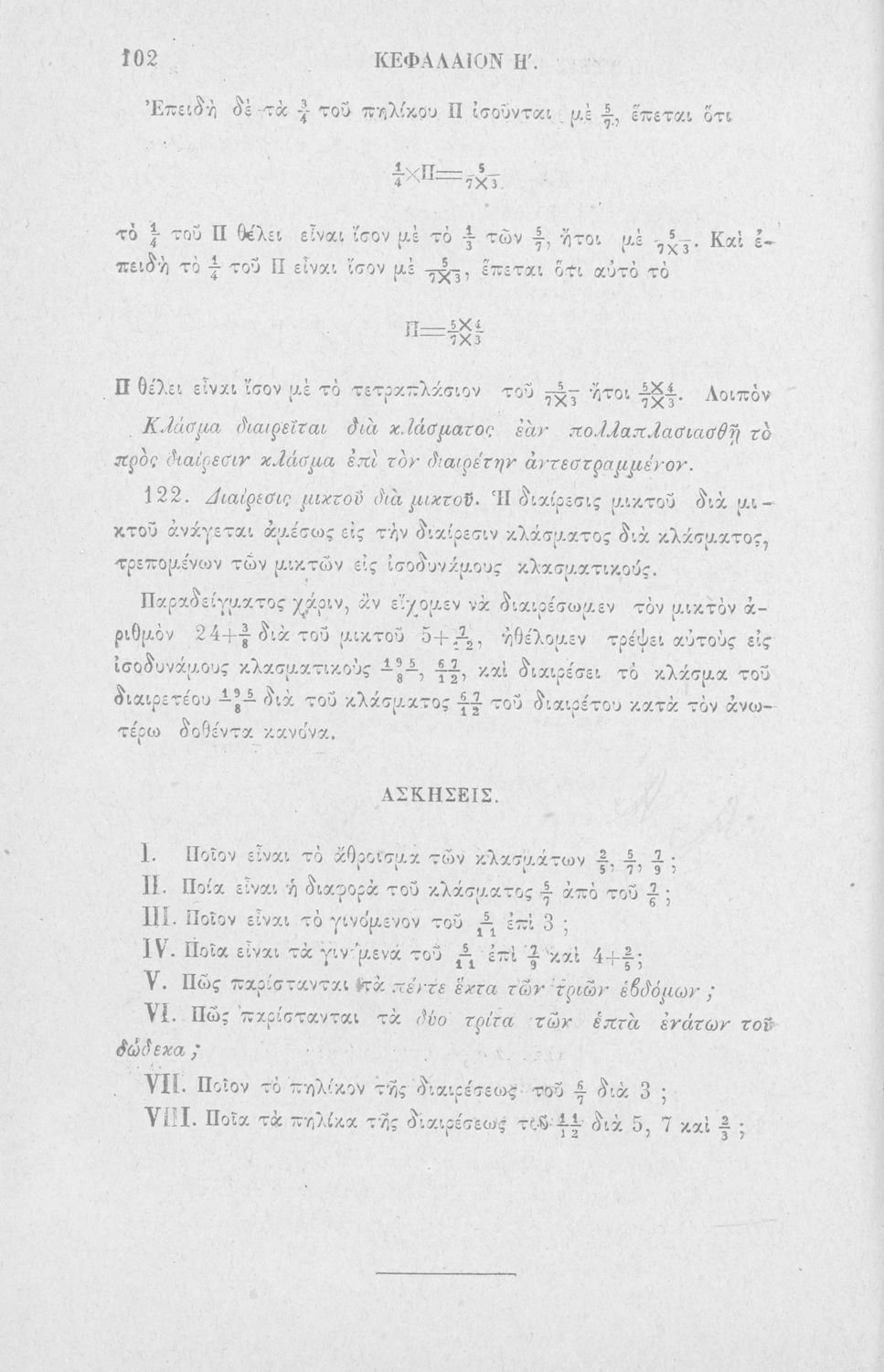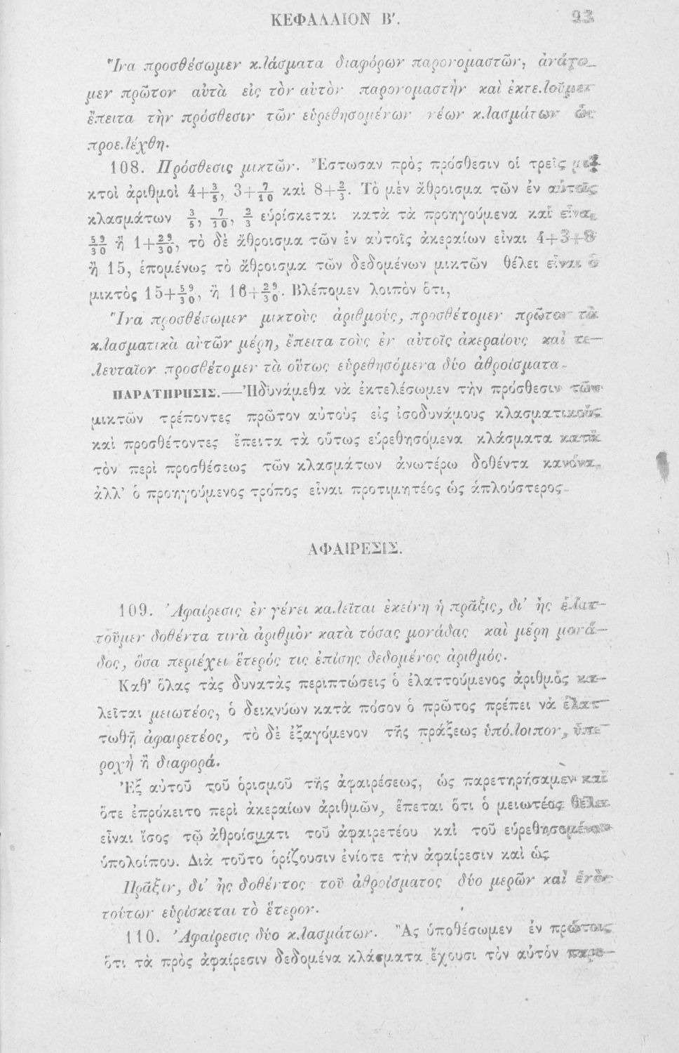 Σχολικό εγχειρίδιο Αριθμητικής χωρισμένο σε θεωρήματα και ασκήσεις.
